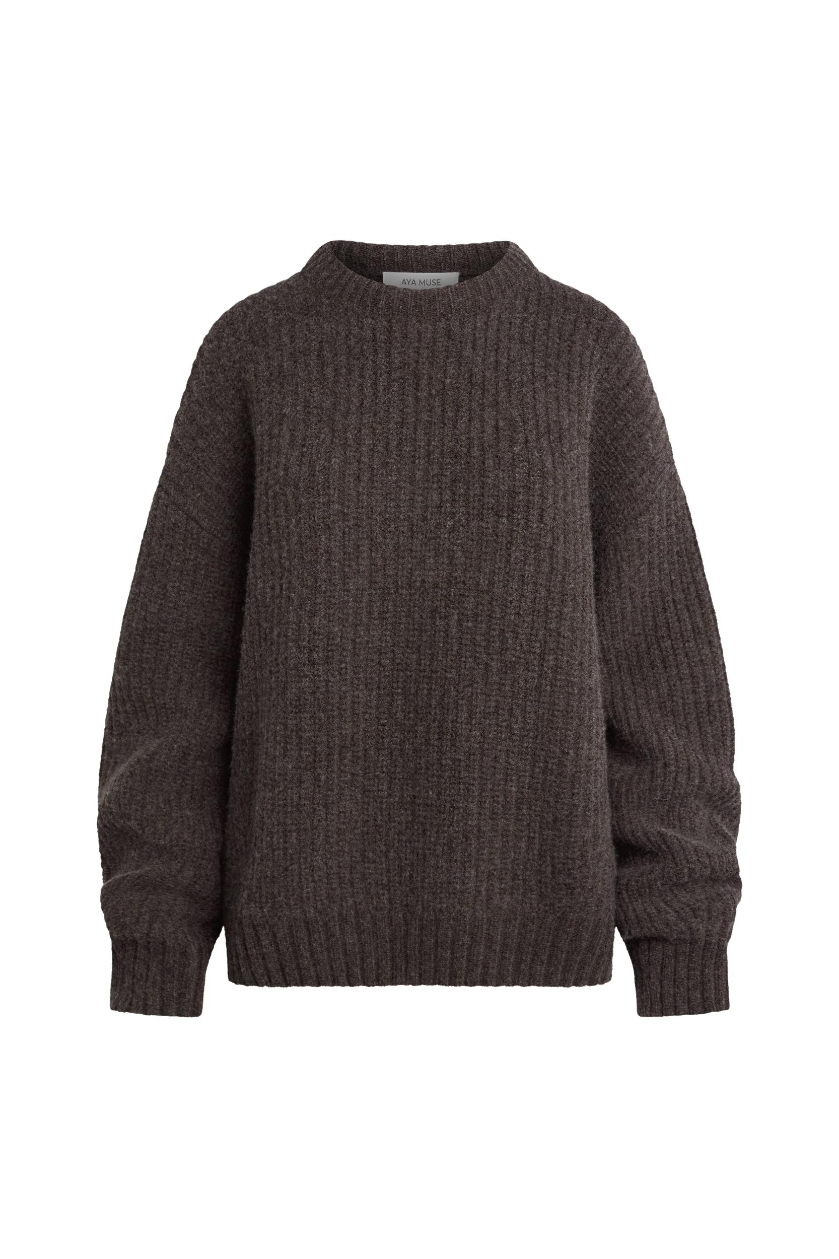 Wool blend knit sweater with crew neck