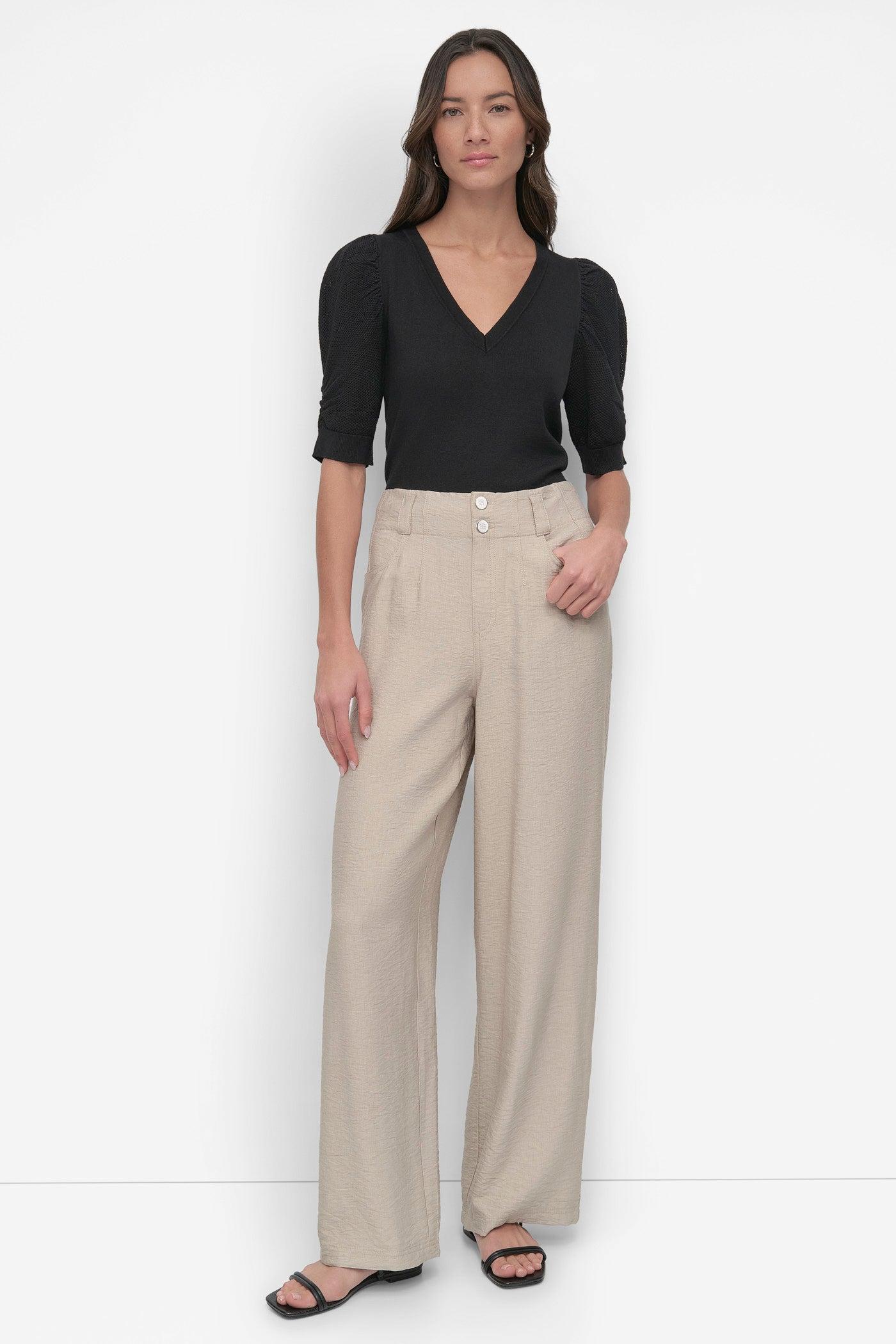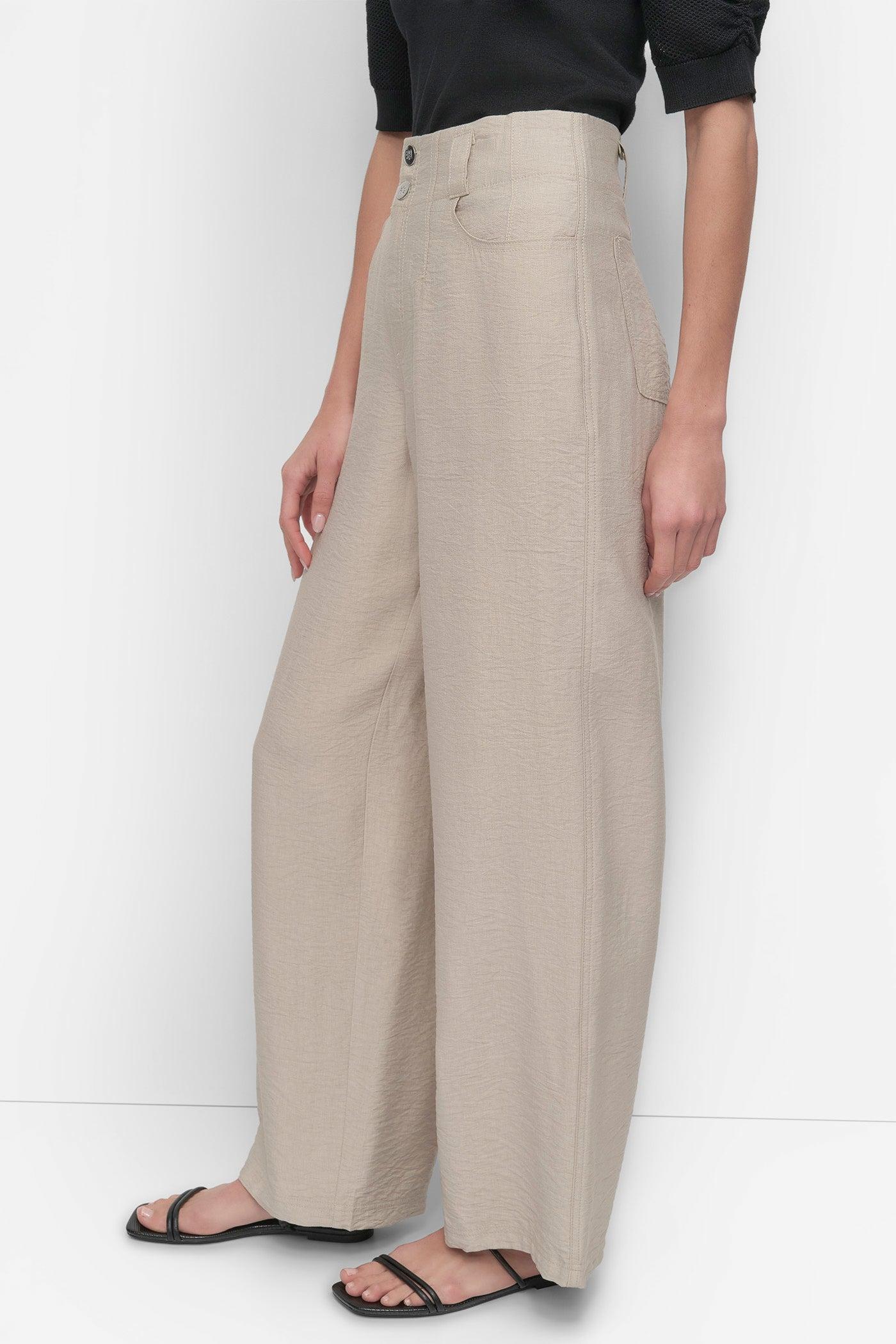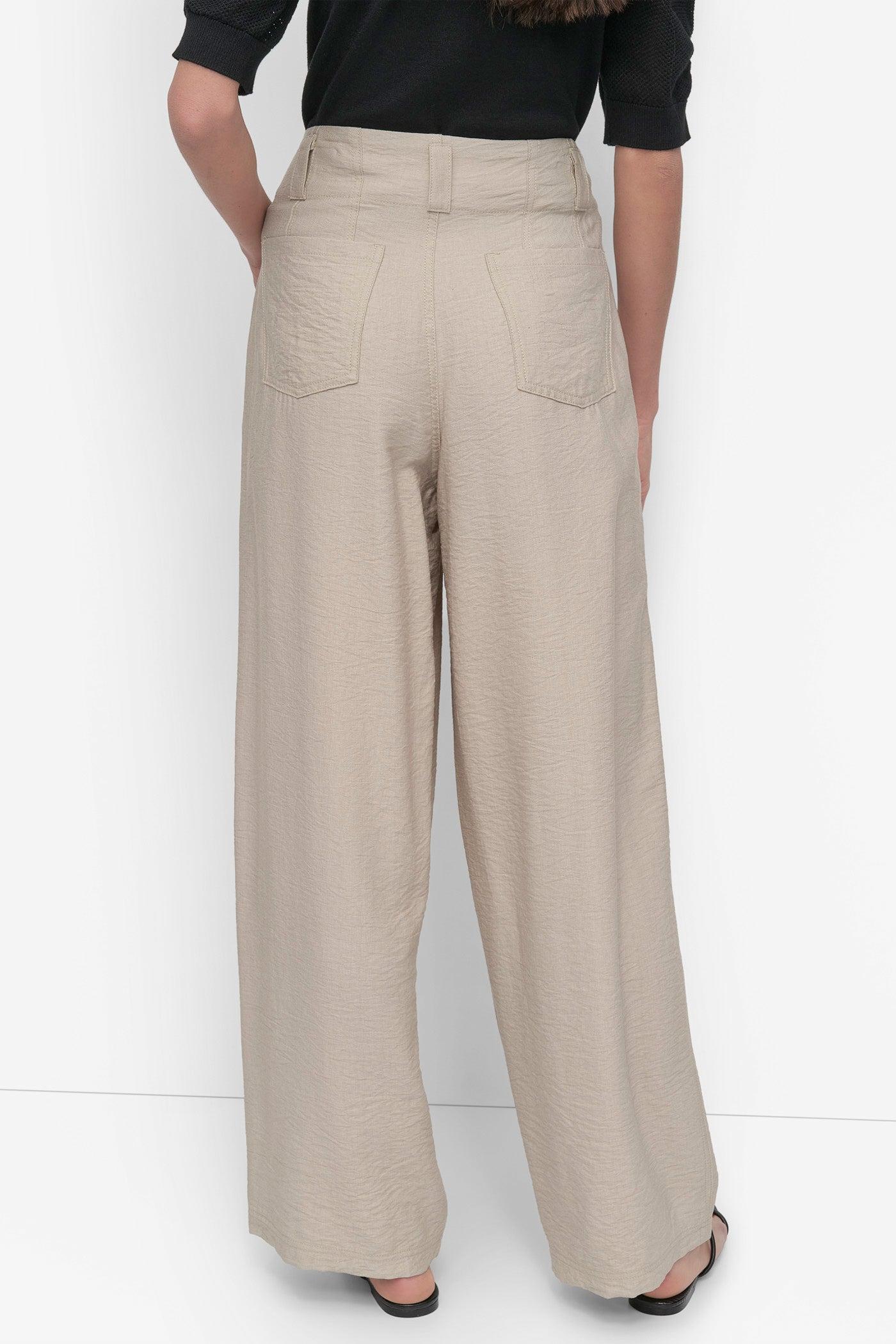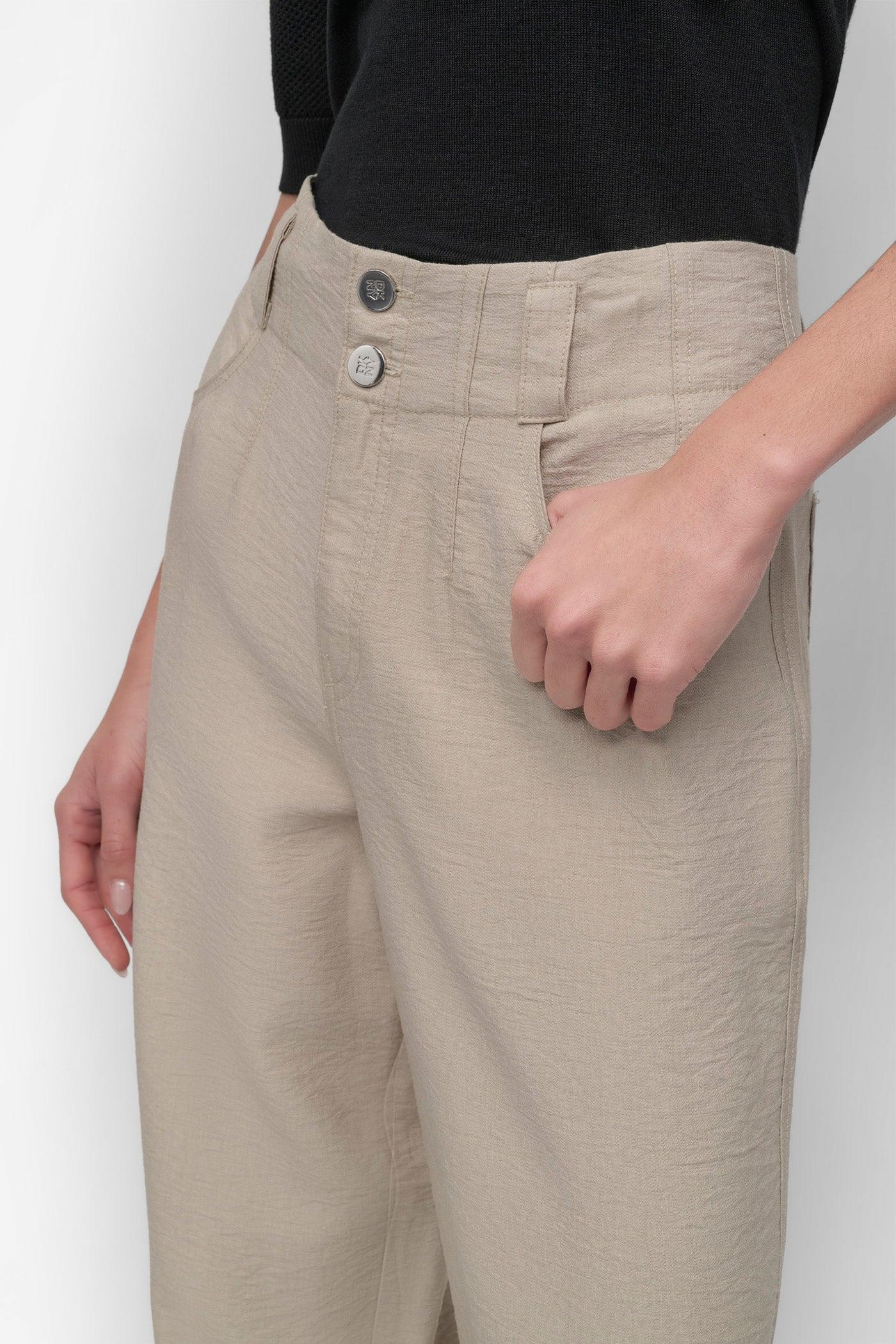 Beige Crinkle Cotton Pants