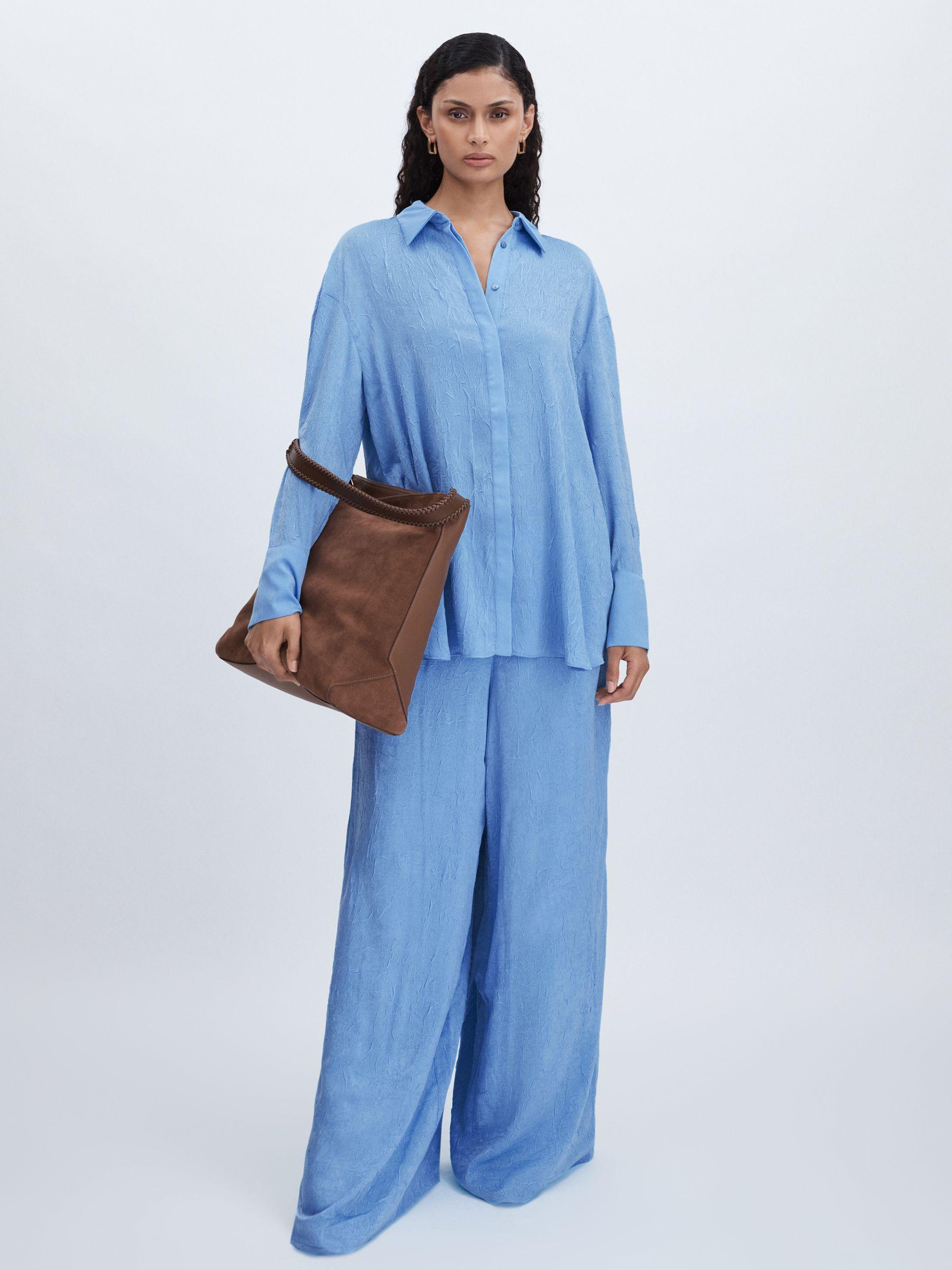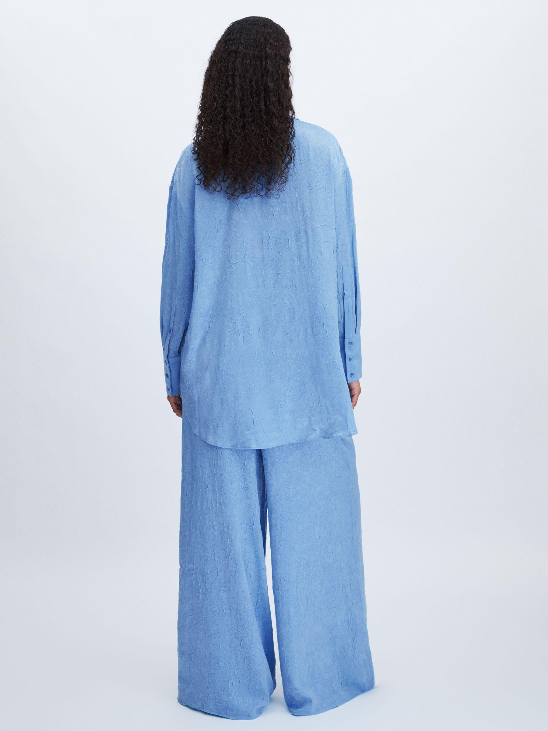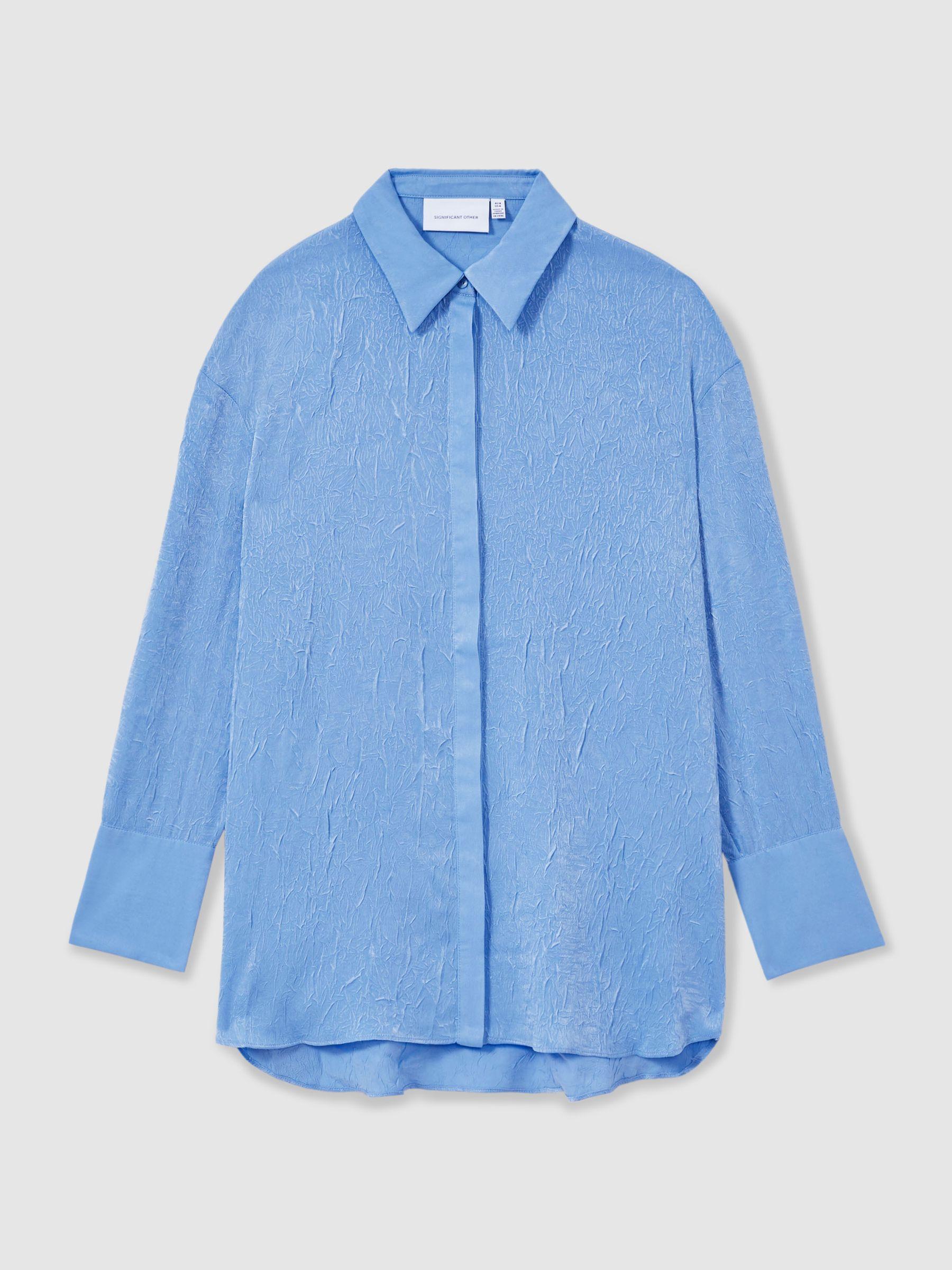 The Selene shirt is crafted from soft crinkle satin, creating a lustrous, tactile finish. It's oversized fit and curved hem add to the slouchy yet elegant feel. Pair with the Selene trousers for a coordinated look. Crinkle satin. Oversized. Drop shoulders. Buttoned cuffs. Curved hem. Concealed front button placket. Significant Other, curated by Reiss, is a self-proclaimed ‘beach-to-bar’ brand, essential for the modern woman.