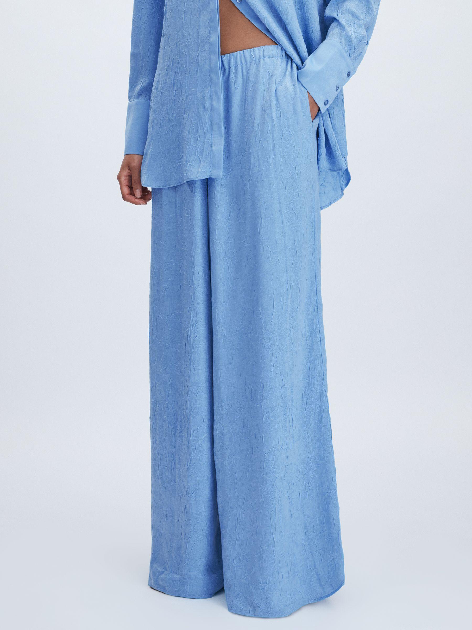 The Selene trousers are crafted from soft crinkle satin, creating a lustrous, tactile finish. They’re cut for a relaxed wide leg with an elasticated waist that adds to the slouchy yet elegant feel. Pair with the Selene shirt for a coordinated look. Crinkle satin. Wide leg. Elasticated waistband. Side seam pockets. Lined. Significant Other, curated by Reiss, is a self-proclaimed ‘beach-to-bar’ brand, essential for the modern woman.