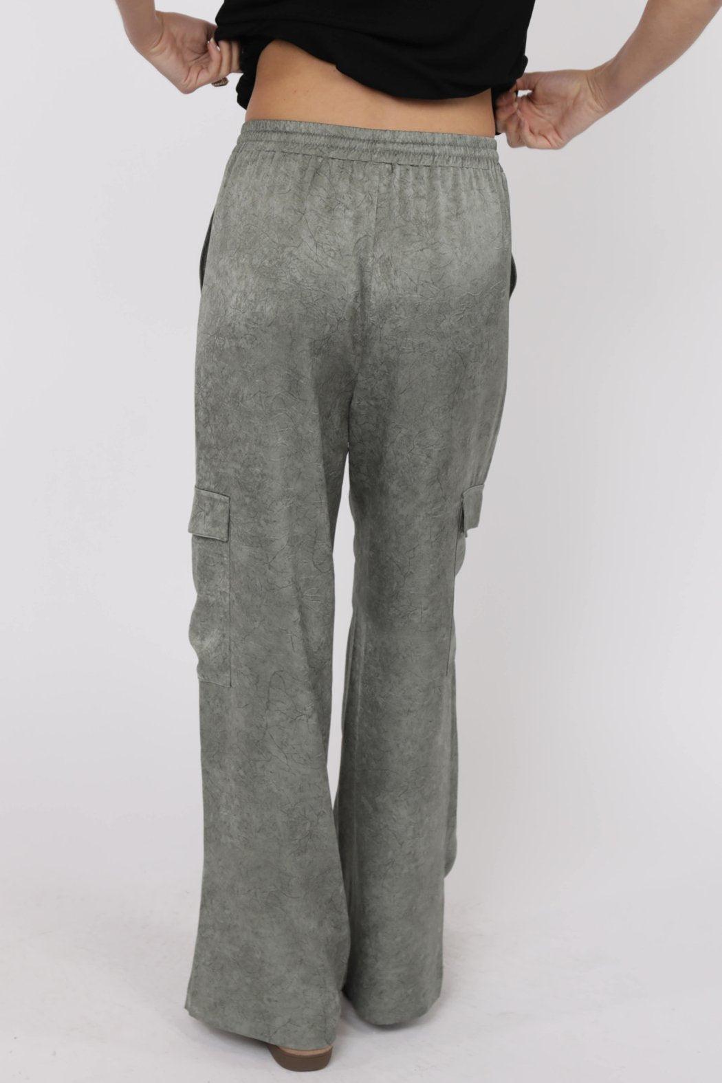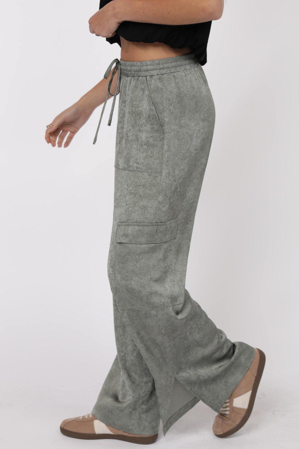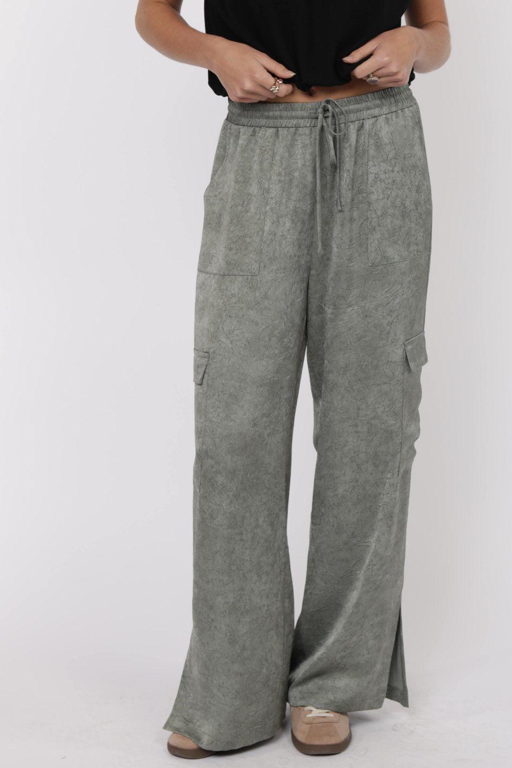 CRINKLED SATIN CARGO PANTS
