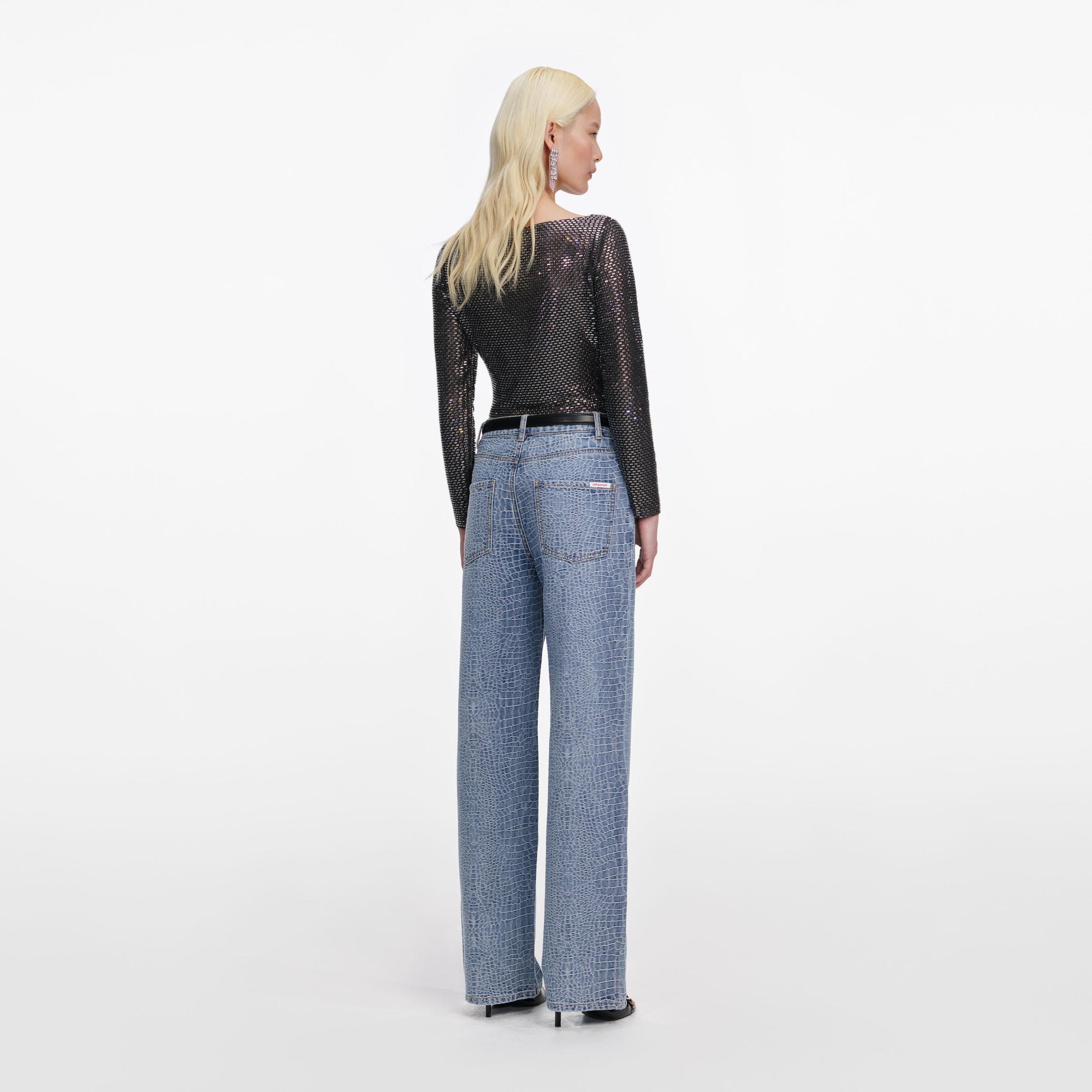 A staple with a twist: these classic straight-leg jeans are amped up with a novel croc effect finish. Pair its high-waist fit with a button-down for day or add a slinky top for evening adventures.Fitted styleThis style has minimal stretchFly zip closureHigh waist fitStraight leg cutModel is 5ft10/178cm and wears a size 26