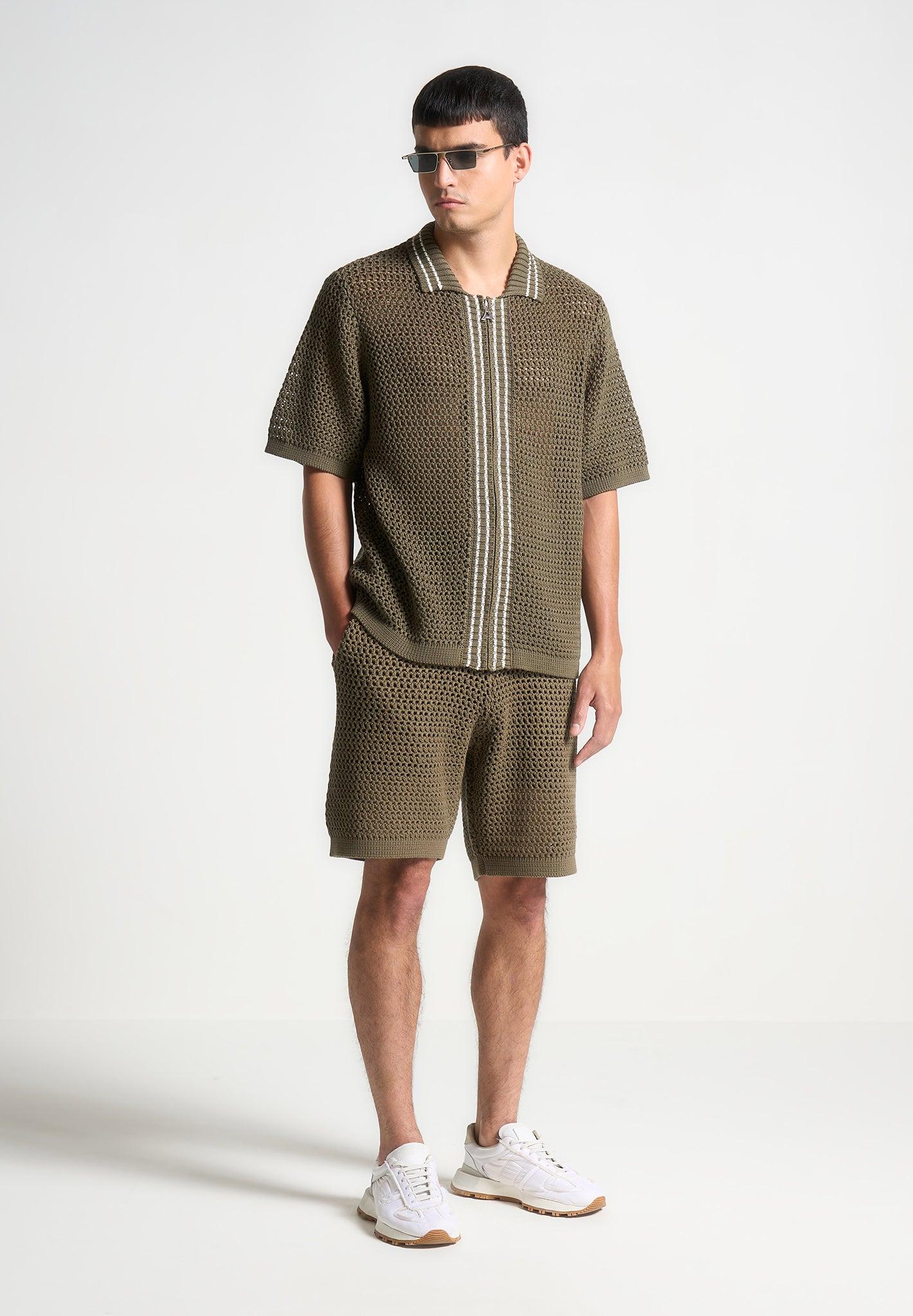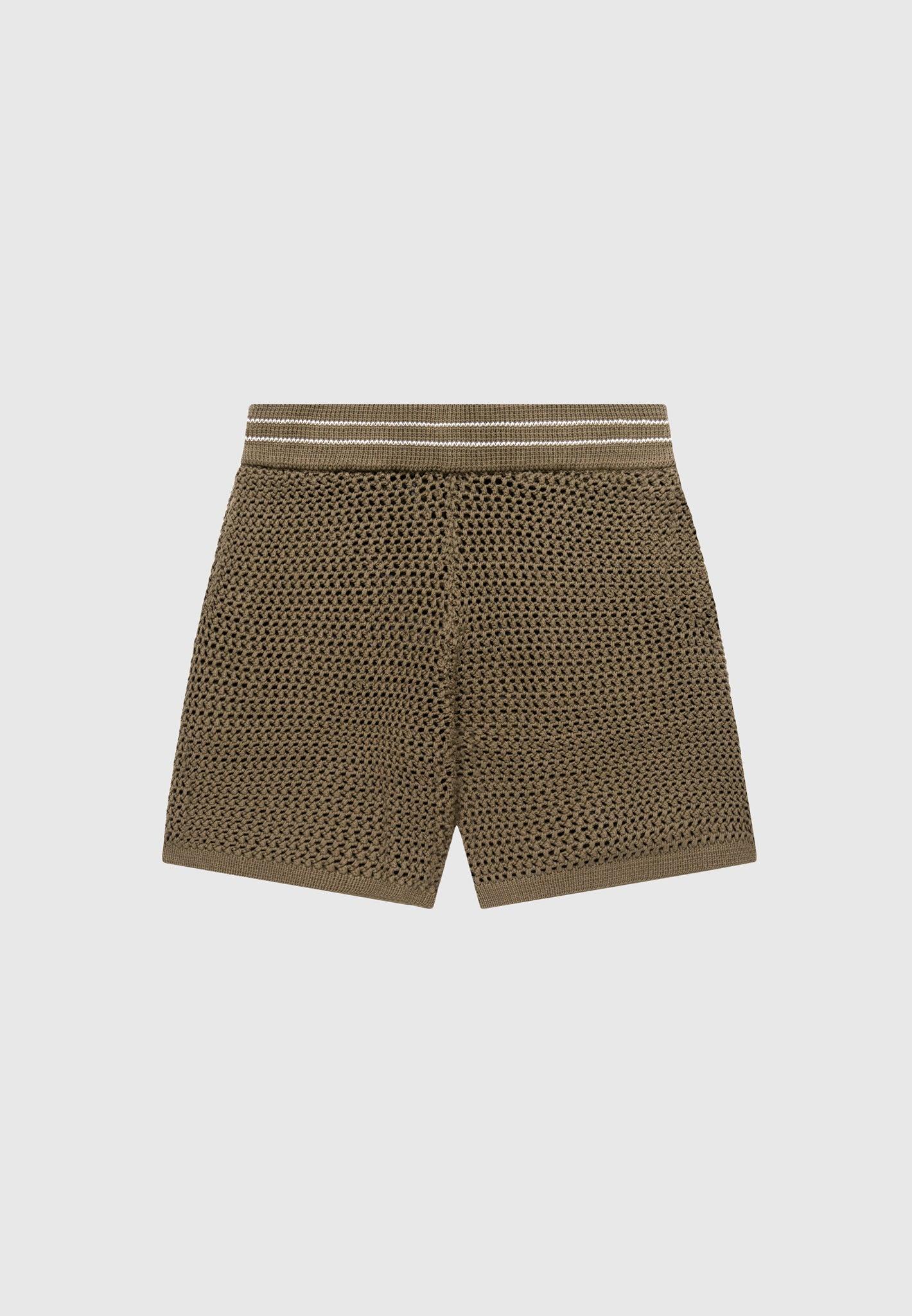 Crochet Knit Stripe Shorts - Khaki Male
