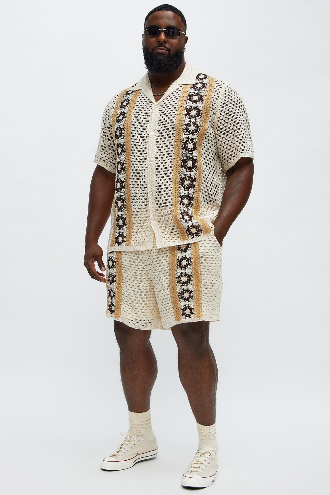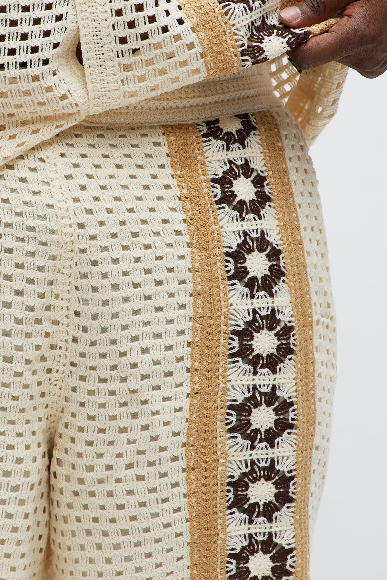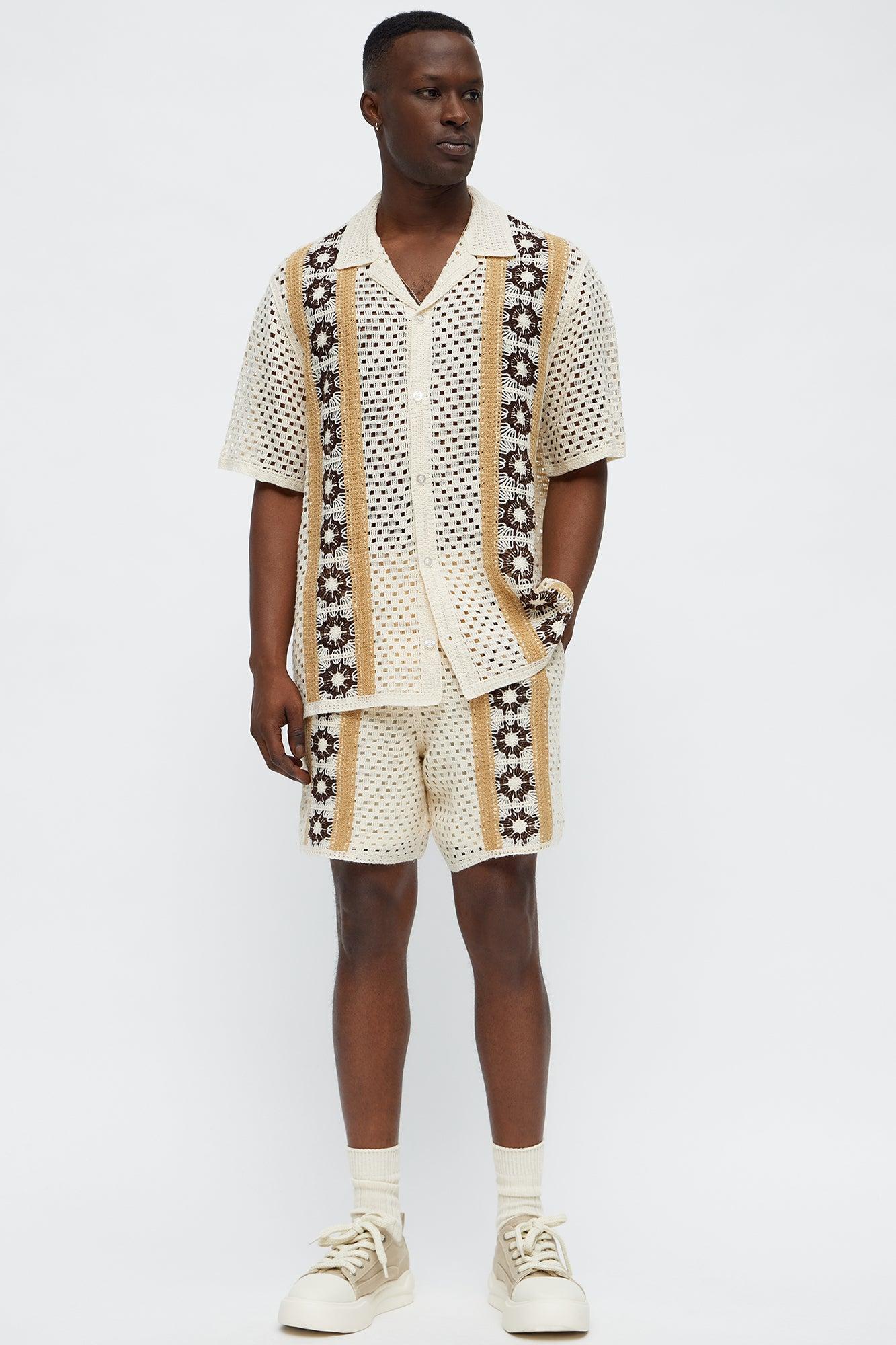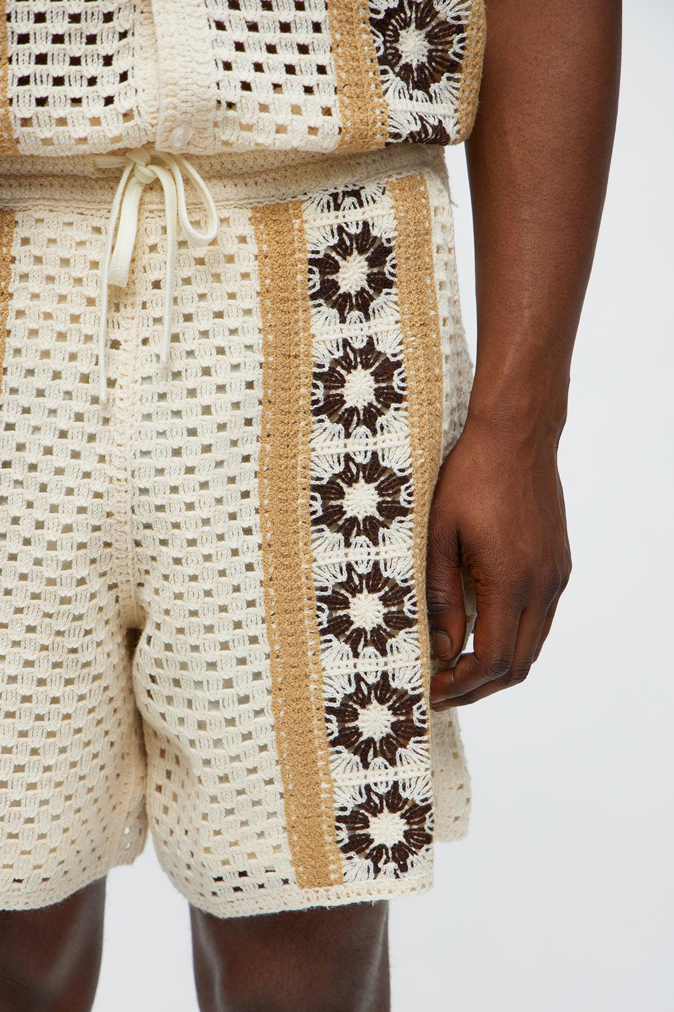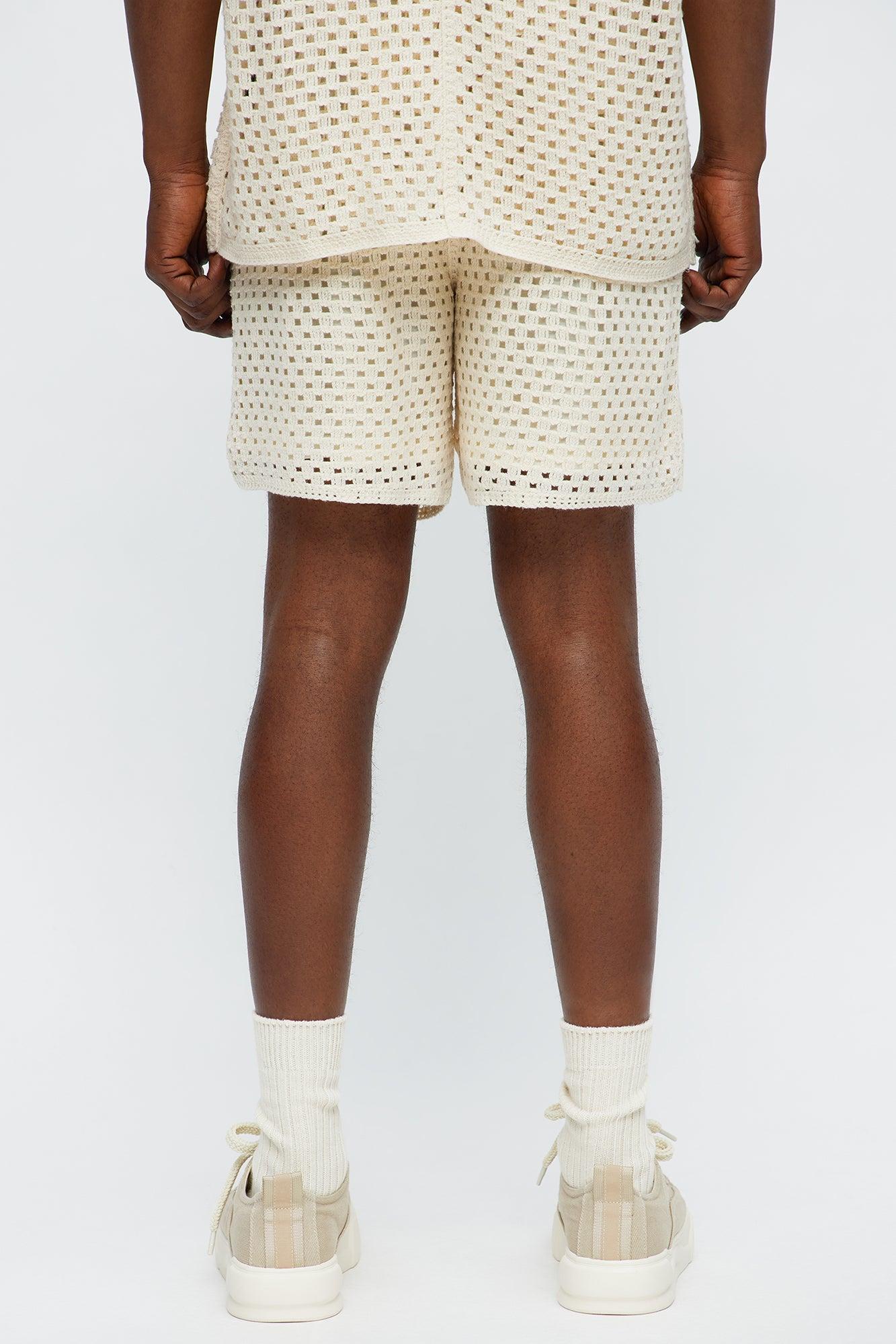 Crochet Panel Short - Cream/combo Male