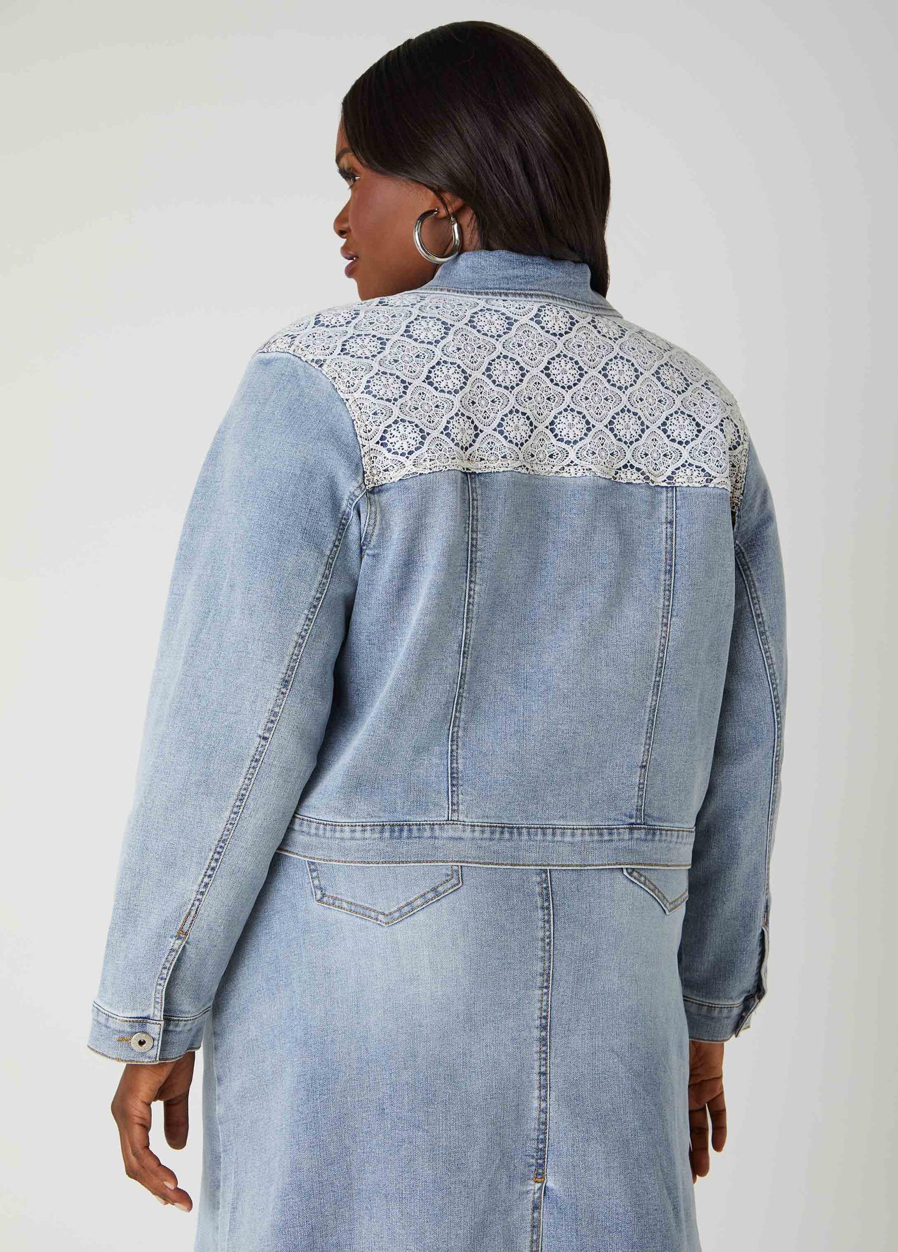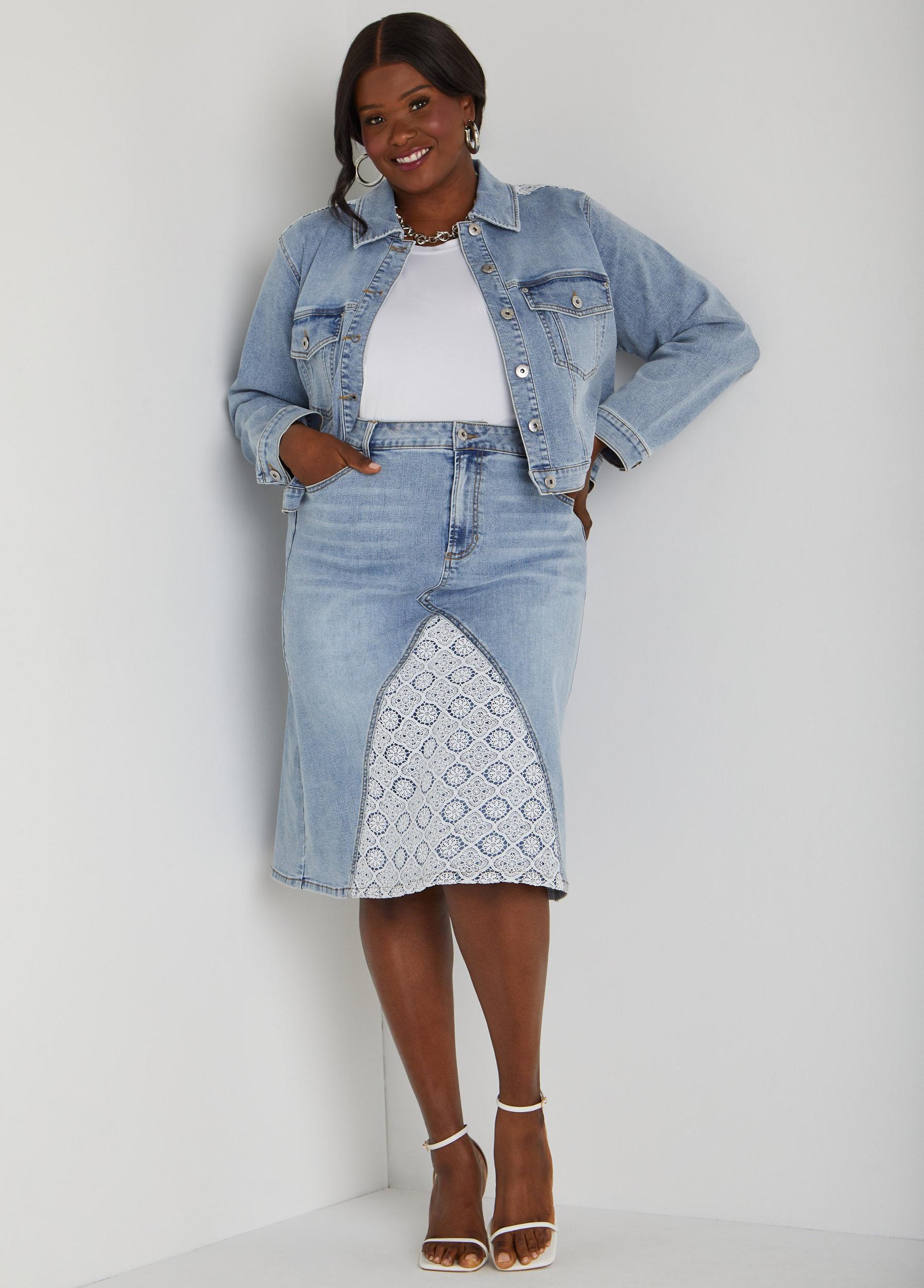 A fresh take on a classic, this stretch-denim jacket blends structure with delicate detail. Featuring two flap pockets at the bust and button-fastening sleeve cuffs, it’s finished with a crochet panel for a soft, feminine touch. Wear it solo or pair it with the matching skirt for a coordinated look that’s equal parts chic and effortless.