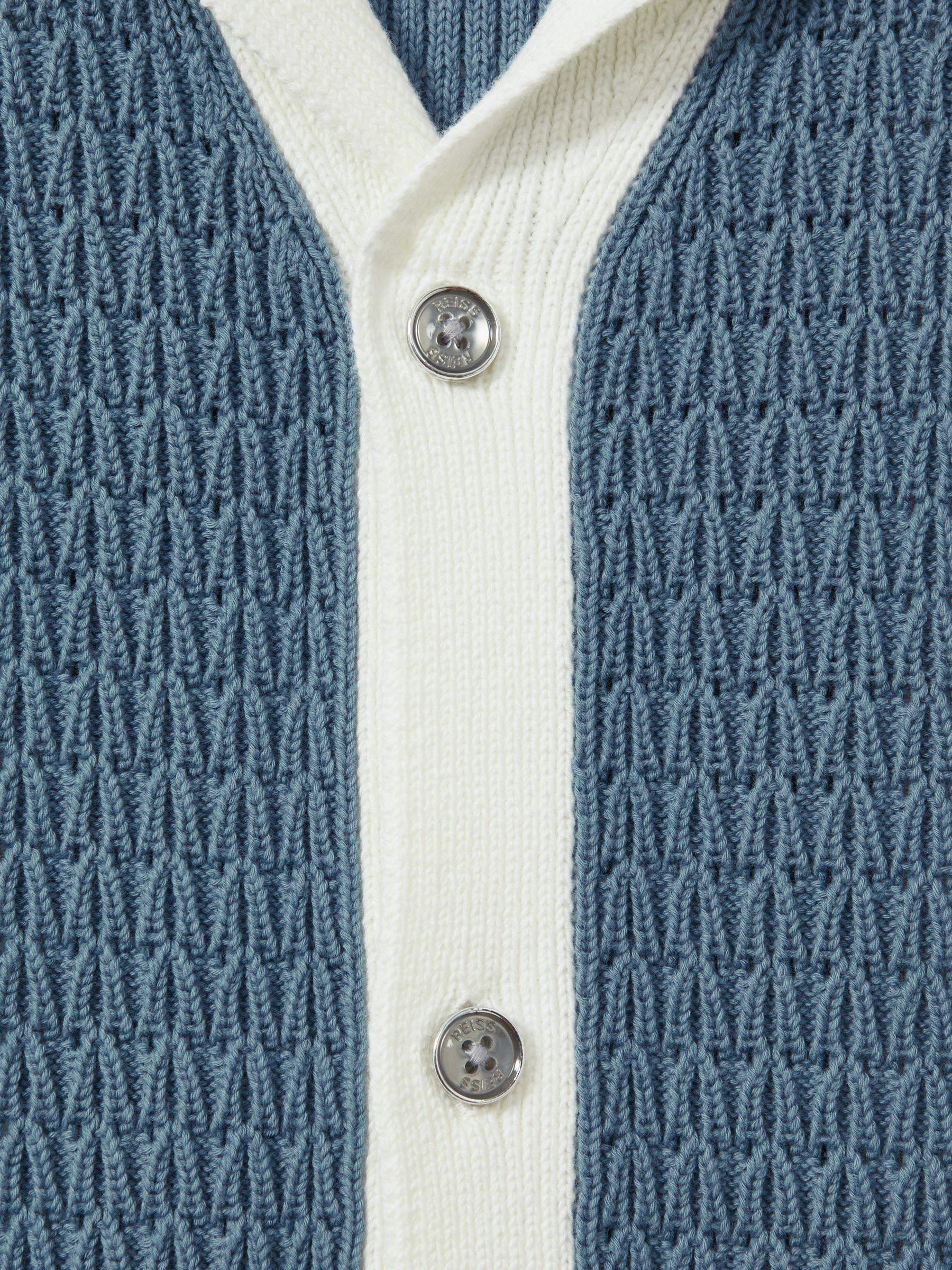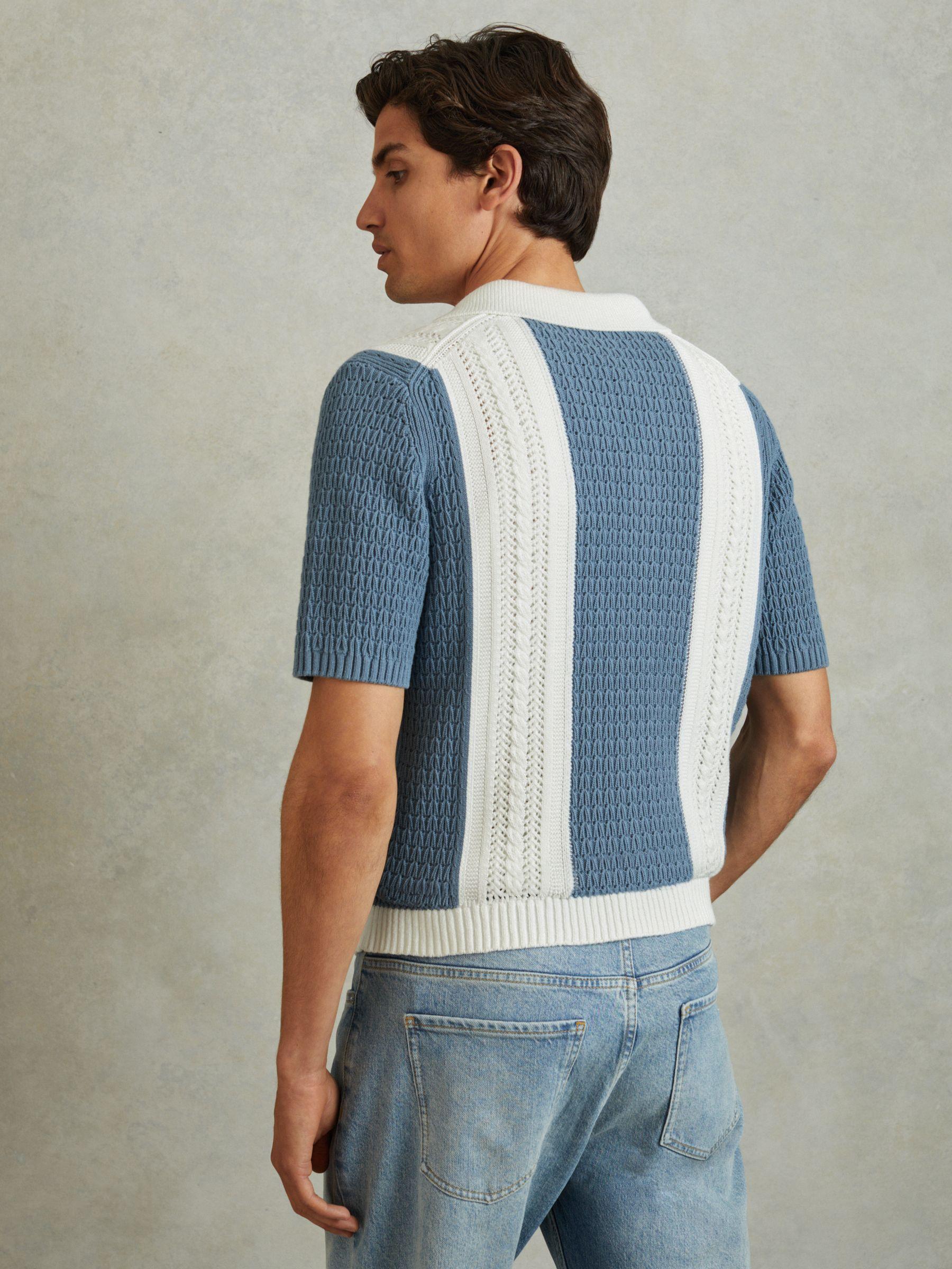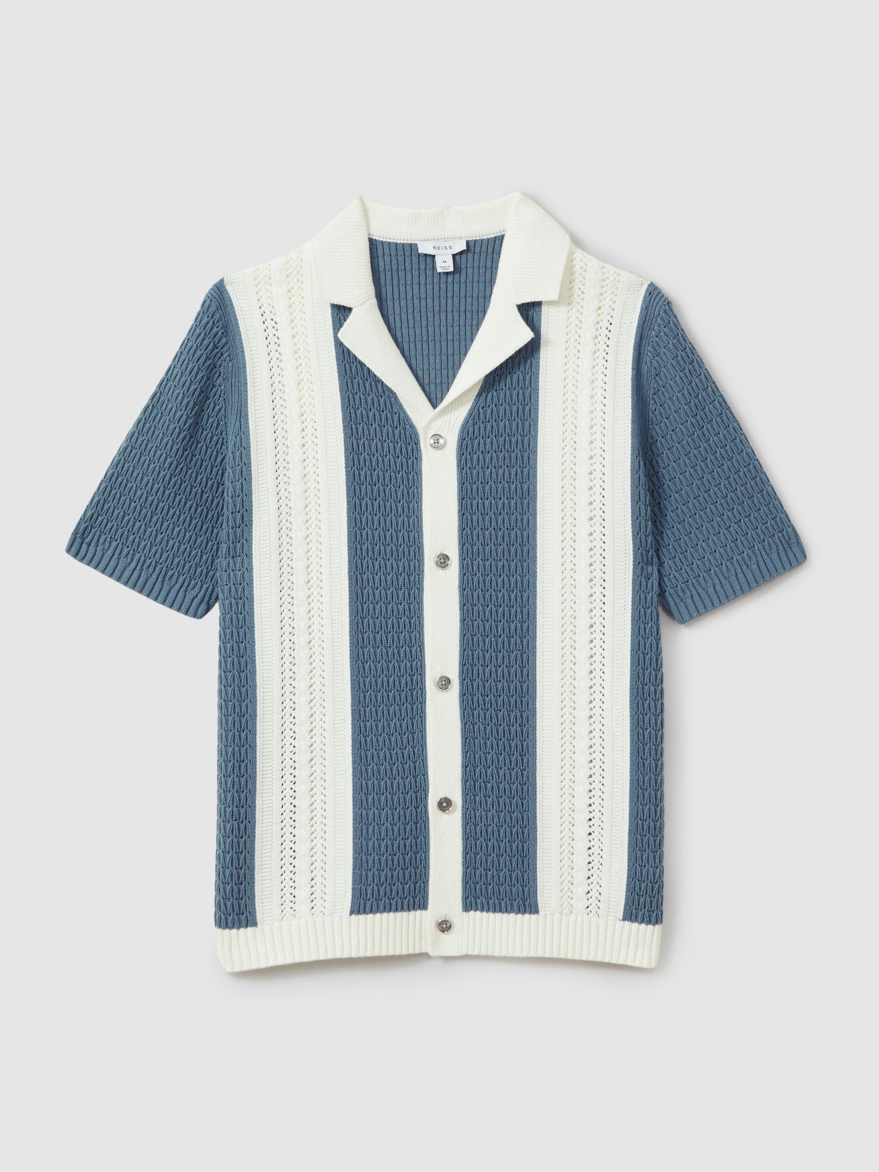 The Nicoli shirt is crocheted with a premium thick handle into a striped cable design. Its Cuban collar neckline leads to a button-front closure and its oversized shape hangs off the body. 100% cotton Crochet construction Striped Cuban collar Button-front closure Oversized fit