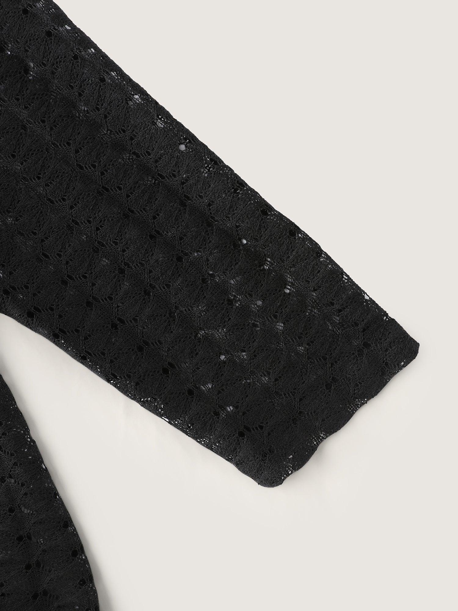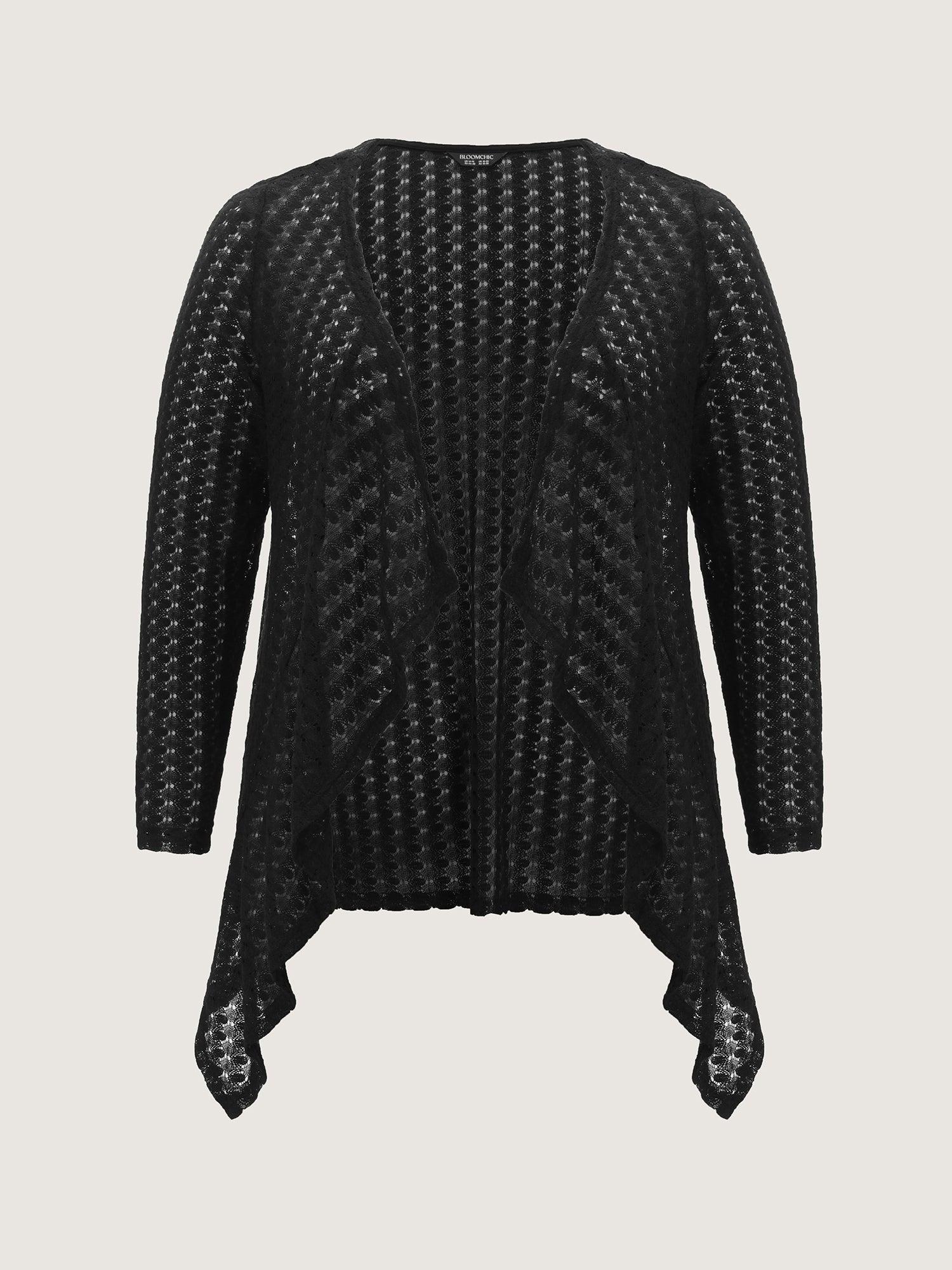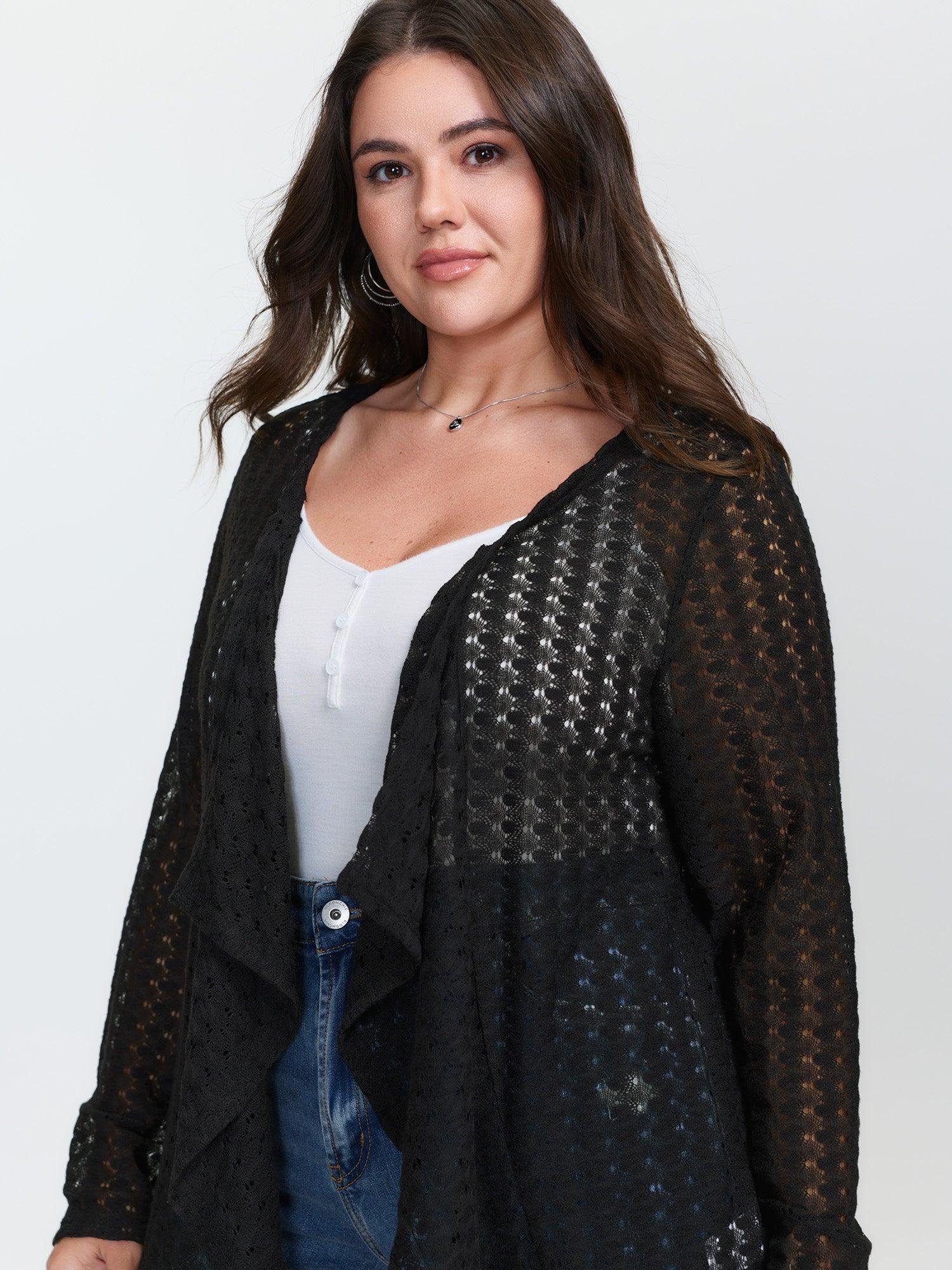 Shop Crochet Textured Ruffled Hem Cover-Up now and redefine your style with confidence at BloomChic. Tailored for mid and plus-size women. This trendy Outerwear Women, sizes 10-30. Color:Black;Style:Leisure;Prints:Synthetic texture;Details:See through, Texture;Pocket:No-pocket;Belt:No-belt;Closure Type:Open front without closure