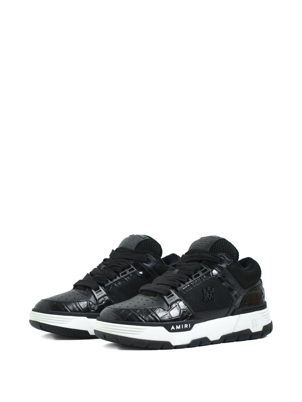 AMIRI crocodile-effect mesh lace-up sneakers | Black | black | crocodile-effect leather | mesh panels | lace-up fastening | rubber sole | logo detail | Rubber/Fabric/Calf Leather/Fabric | Low-Tops | Sneakers | Shoes | Men