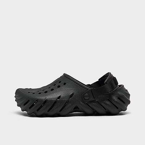 Shop All Crocs Jibbitz charms to personalize your Crocs! How to choose your size Our sizing buttons list the Mens size first (M) and the equivalent Womens size second (W) Ex. If you usually wear a Womens size 9, select the button with M 7.0 / W 9.0 Product Features Incredibly light and easy-to-wear clogs from the Echo collection Fully molded Croslite upper and foundation Water-friendly and buoyant Easy to clean and quick to dry Pivotable turbo heel straps with a heel pad for comfort Customizable with Jibbitz charms Dual-density support with Croslite sole and Lite Ride footbed The Crocs Echo Clog is imported. The Crocs comfort you know and love gets a dose of bold street style on the Crocs Echo Clog Shoes. The sport-inspired Echo Clogs deploy dynamic cutouts and sleek, wavy design cues for unwavering comfort without compromising your look. Size: 12.0. Color: Black. Gender: unisex. Age Group: adult. Crocs Echo Clog Shoes in Black/Black Size 12.0