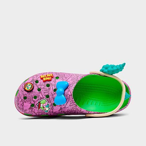 Get ready for a fun day with a hint of mischief with the Crocs Simpson Krusty Classic Clogs. Adorned in a purple and green colorway, these clogs from the Simpsons collection offer a style thats unexpected, eye-catching, and worth a second look. Featuring the innovative Croslite compound, which now contains 25% bio-circular materials, these clogs ensure soft, lightweight comfort with each step. The Krusty-inspired graphic print with six exclusive Jibbitz charms brings a quirky yet delightful finish. Explore your playful side with the Crocs Simpson Krusty Classic Clogs. Crocs Simpson Krusty Classic Clogs features: Iconic Crocs Comfort offers lightweight, flexible, 360-degree comfort. Dimensional character details like Krustys hair and bowtie elevate the look. Pivoting heel straps allow a secure fit. Breathable design provides a fresh and cool feel. Incredibly light and fun to wear. Lightweight, water-friendly, and buoyant. Easy to clean and quick to dry. Customizable with Jibbitz charms.