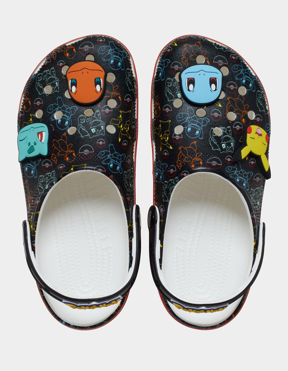 Crocs x Pokémon Classic Clogs. Calling all Trainers! The Pokémon Classic Clog is a fan-favorite silhouette, printed with fan-favorite characters. And oversized Jibbitz™ charms level up the look even more! Allover Pokémon print. Exclusive Pokémon Jibbitz™ Charms, including Pikachu, Squirtle, Charmander and Bulbasaur. Customizable with additional Jibbitz™ charms. Water-friendly and buoyant; weighs only ounces. Easy to clean and quick to dry. Pivoting heel straps for a more secure fit. Iconic Crocs Comfort™: Lightweight. Flexible. 360-degree comfort. Imported.