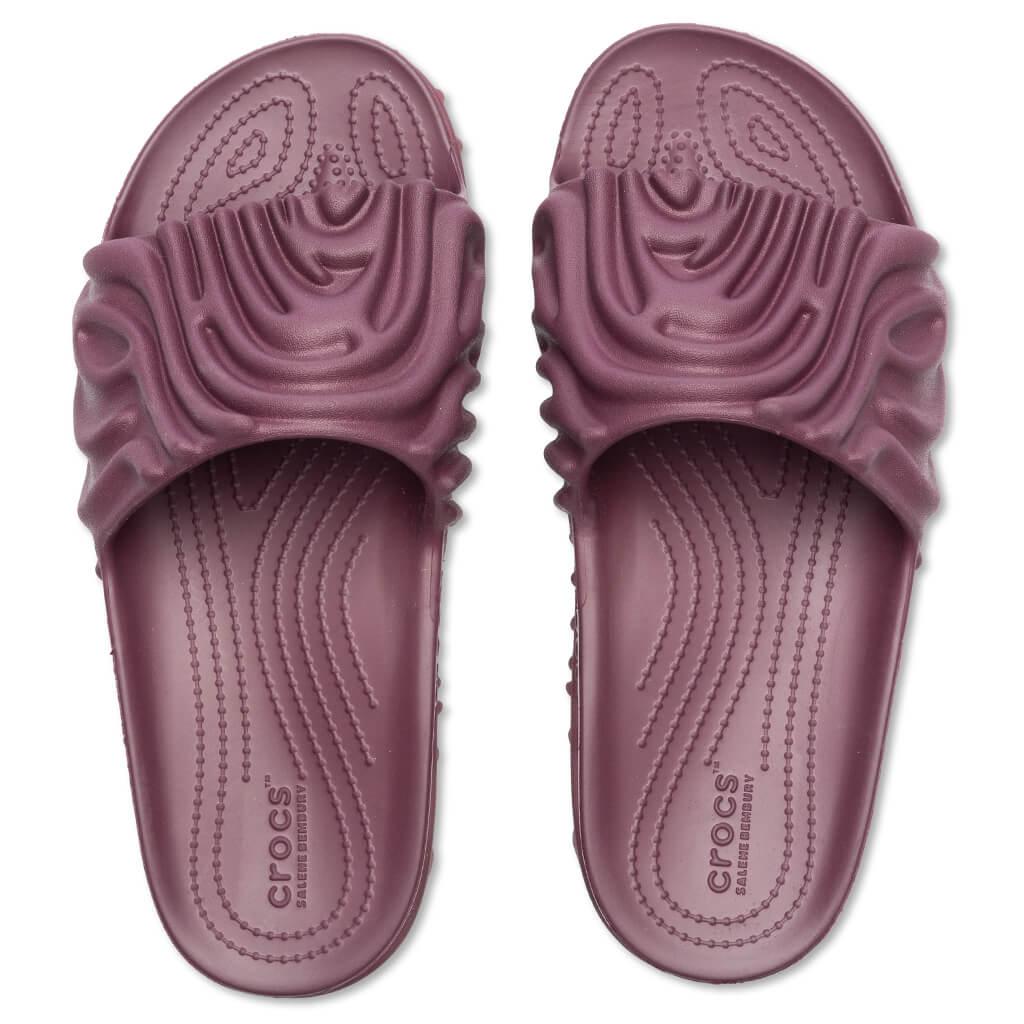 Salehe Bembury and Crocs collide once again to introduce the Pollex Slide. Composed of rubber, the slide features dramatic ‘fingerprint’ concave ridges, allowing for multi-directional traction. The ridges at the upper allow for water to channel off the shoe. The Croslite foam footbed offers long-lasting comfort, while the treaded outsole rounds out the remainder of the design. ALL SALES ARE FINAL. 100% rubber Concave ridges Slip-on design Ridged upper Croslite foam footbed Treaded outsole All sizes are listed in U.S. Men’s sizing unless stated otherwise Style No: 208685-6WO