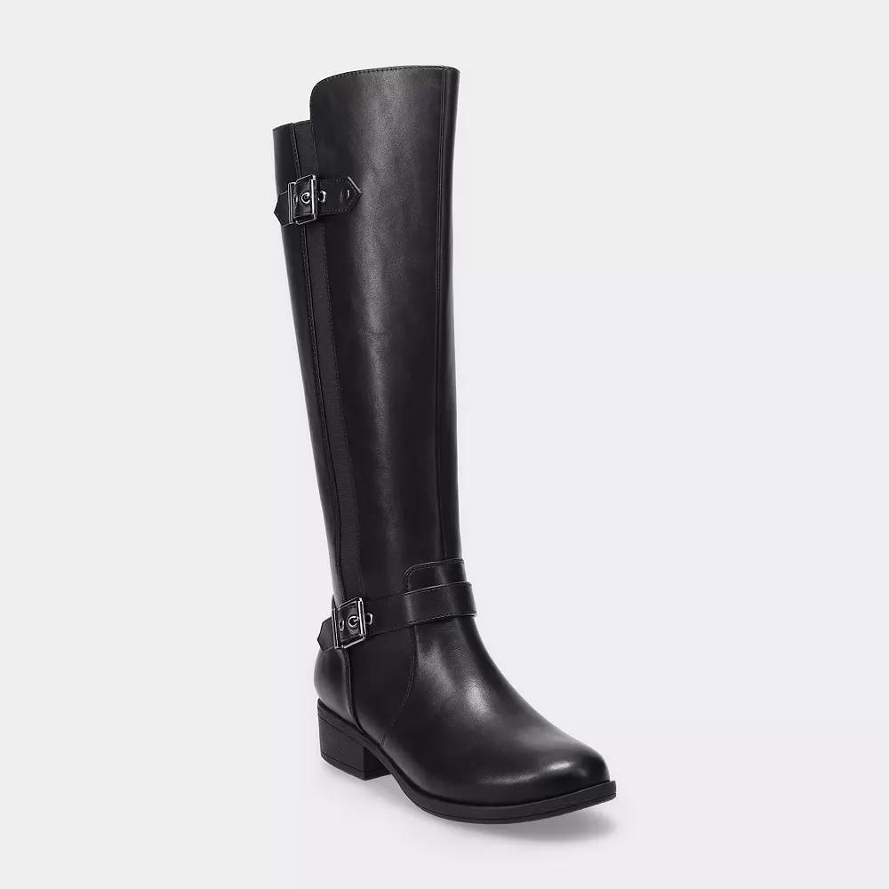 Step into a world of comfort and style with these knee-high boots that are perfect for those chilly days when you want to look fabulous without freezing your toes off. With a comfort sole featuring Ortholite hybrid foam and latex, every step feels like walking on clouds, making them your new go-to pair for every adventure. Click this FOOTWEAR GUIDE to find the perfect fit and more! - https://www.kohls.com/feature/shoesizeguide.jsp. FEATURES: Comfort sole, 2mm Ortholite R & R hybrid foam with 4mm of latex, Perfect for casual wear. FIT & SIZE: Boot shaft height is 14.37 inches, Boot shaft circumference is 15.75 inches. MATERIAL & CARE: Polyurethane upper, Jersey lining, TPR outsole, Spot clean. DETAILS: Zipper closure, Plain toe, Platform height: 1.438 in., Heel height: 1.434 in. Size: 8. Color: Black. Gender: female. Age Group: adult. Material: OTHER MATERIAL.
