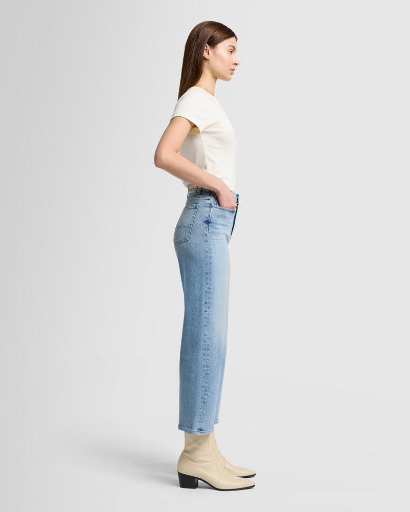Fits like: A high-rise relaxed straight leg. Cropped at the ankles. Feels like: Buttery-soft to the touch with a vintage lived-in feel. Like your favorite pair of jeans you've broken in for years. Luxe Vintage is a structured fabric with subtle stretch to it. The Details: Light blue wash Zip closure Subtle whiskering a