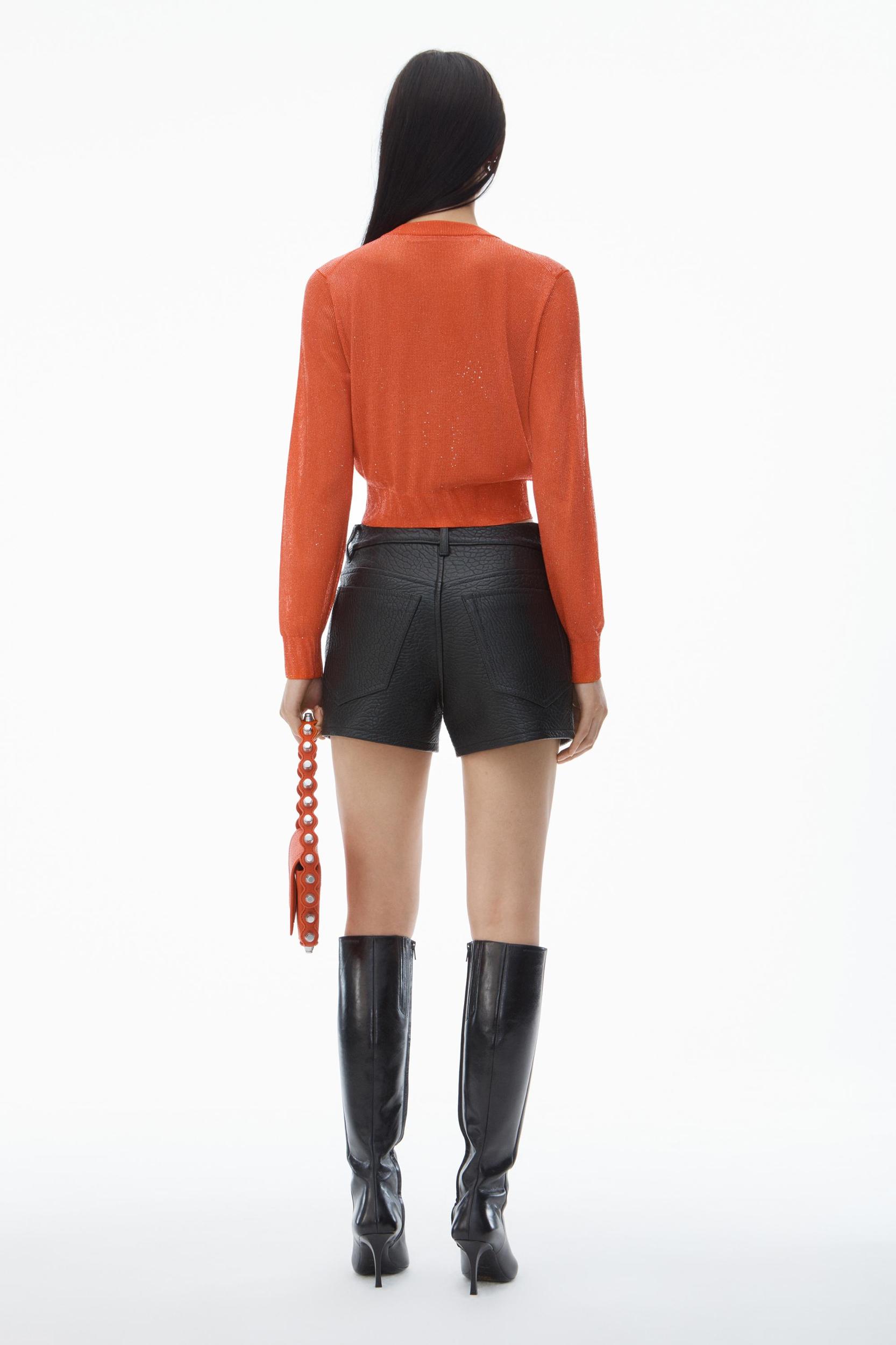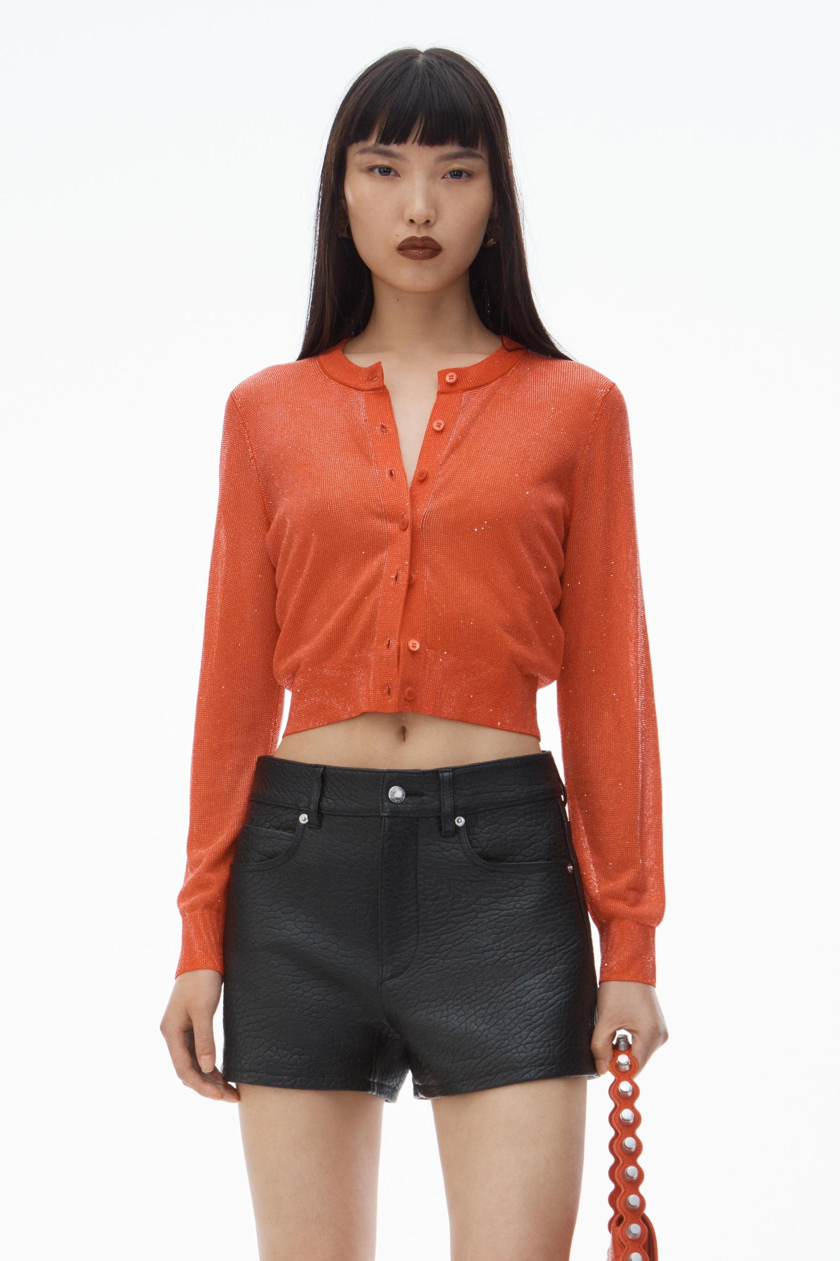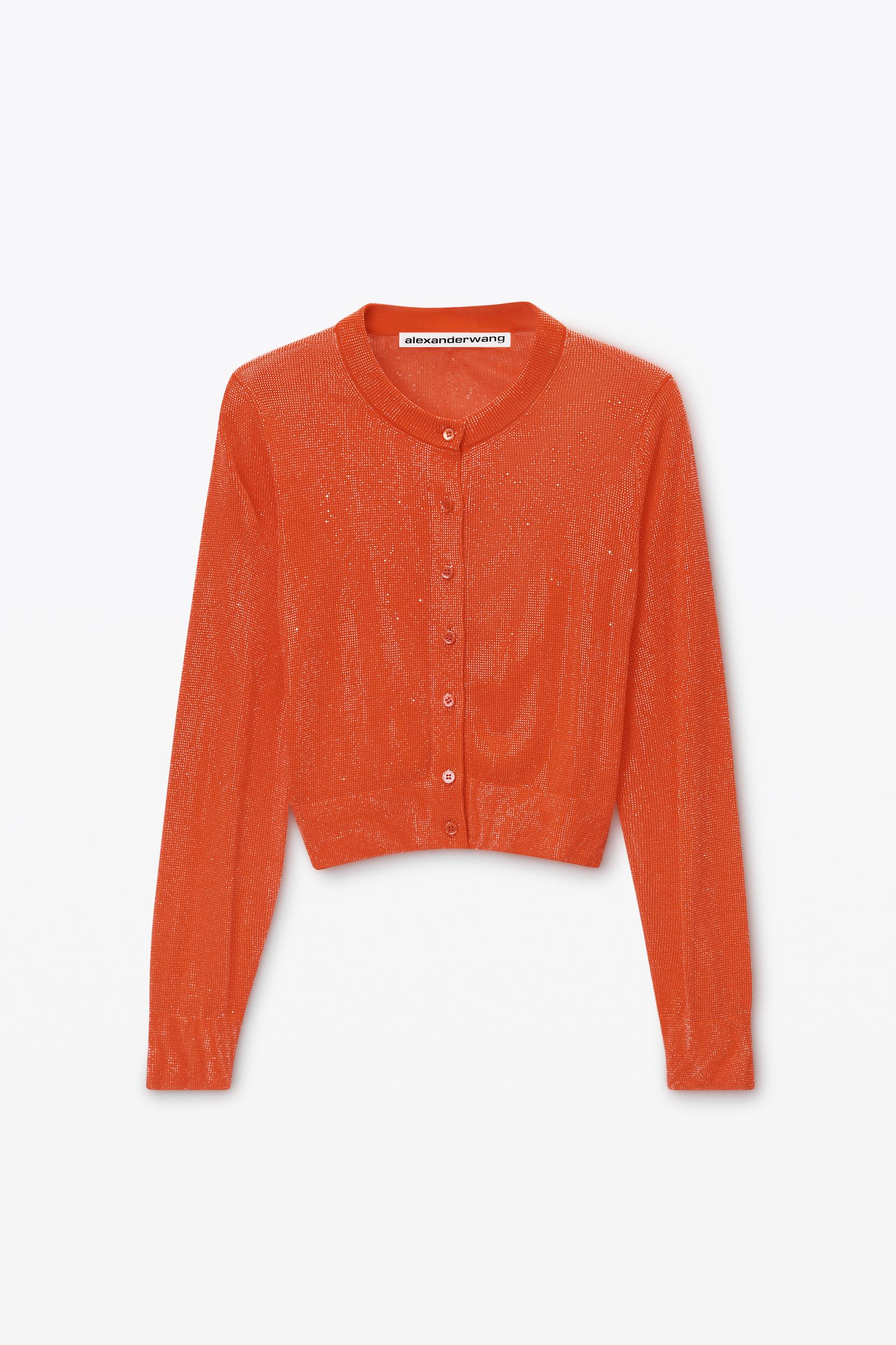 Clear bead hotfix illuminates this crewneck cardigan in fiery red. body composition: 100% viscose trim: 77% viscose/21% polyamide/2% elastane made in china model is 5'10" and wears a size s 1KC3243037629