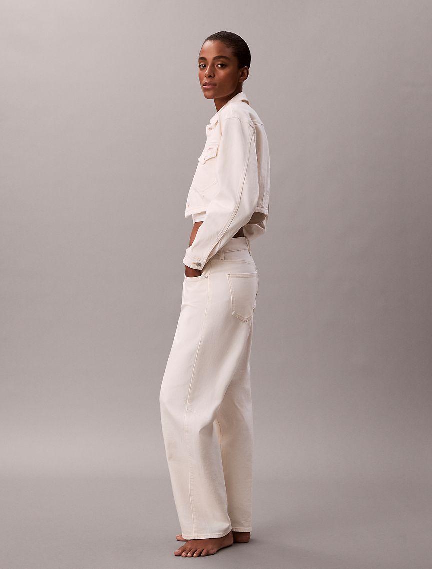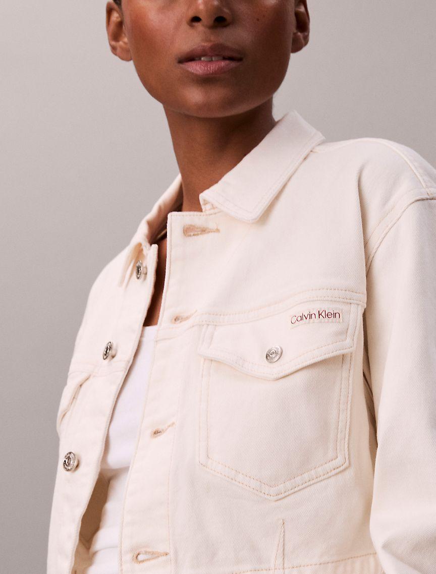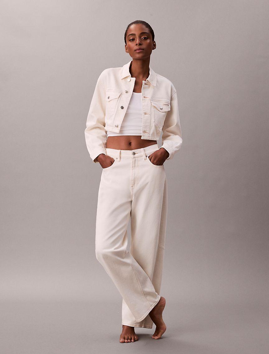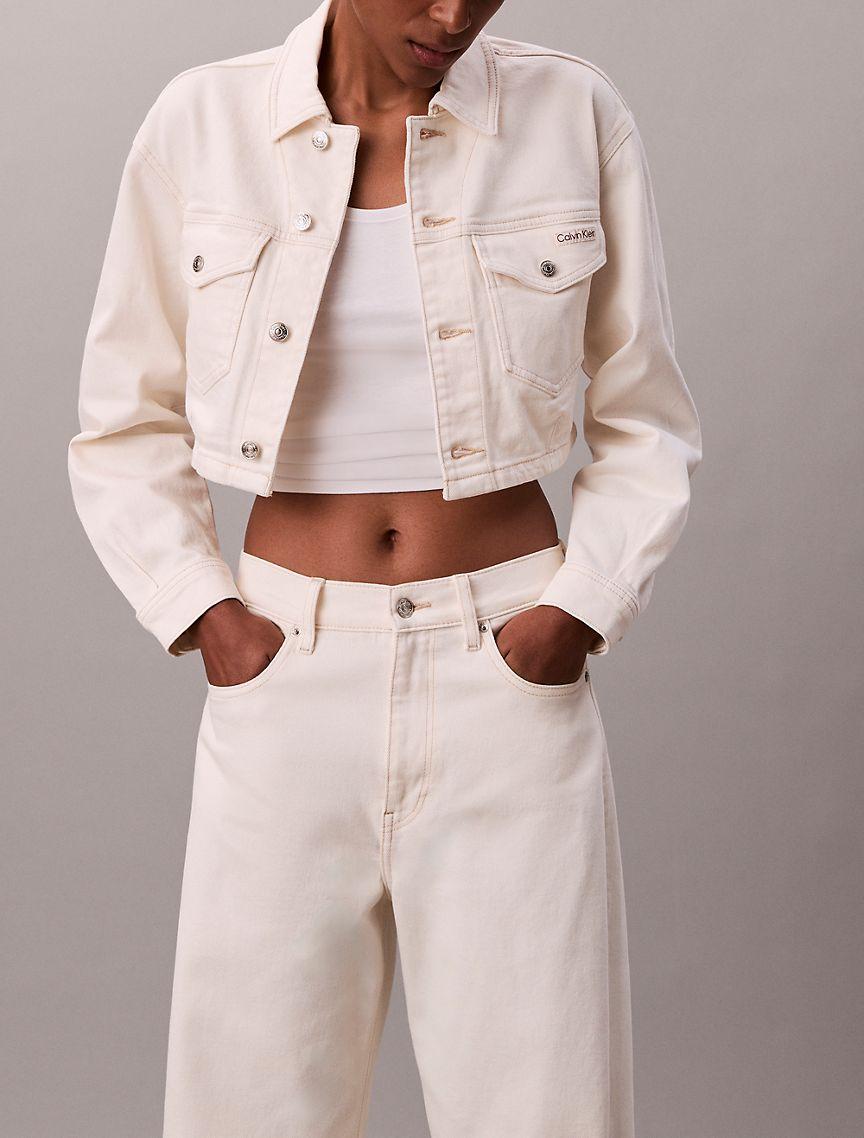 A cropped denim jacket with a relaxed silhouette. Designed with long sleeves, patch pockets and front button closures. Accentuated with seaming lines for defined shape.