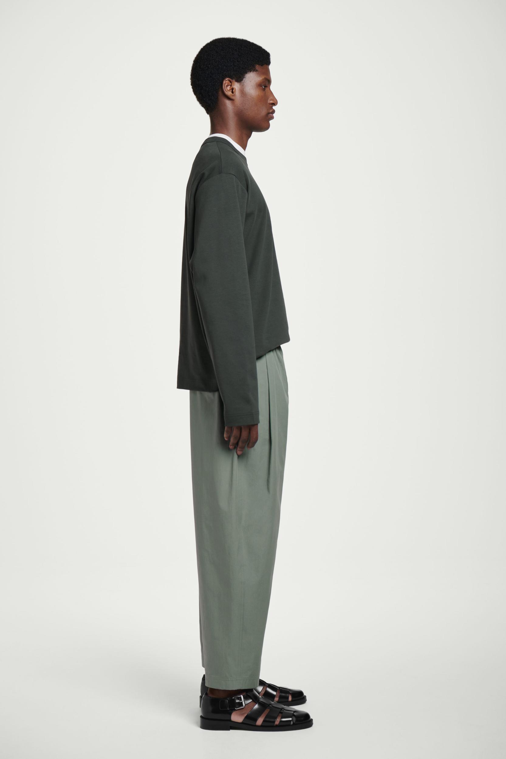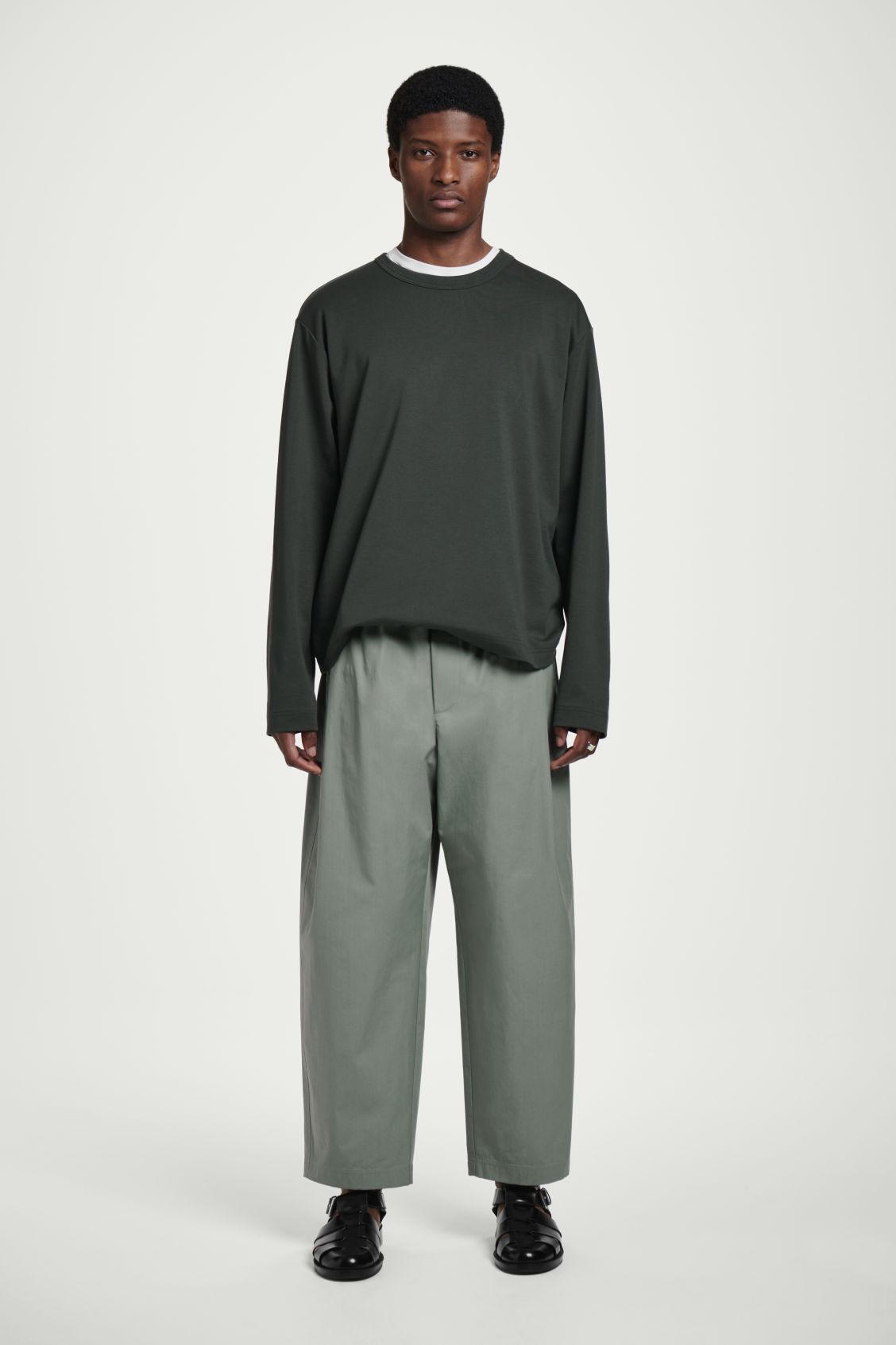 A modern essential, these trousers are cut in a relaxed, wide-leg shape that crops at the ankle. They're made from soft, durable cotton and feature an elasticated waist and welt pockets. Relaxed fit Shell and lining: 100% Cotton. Excluding trims / Machine wash Inside leg length of size M is 63.9cm / Model wears a size M