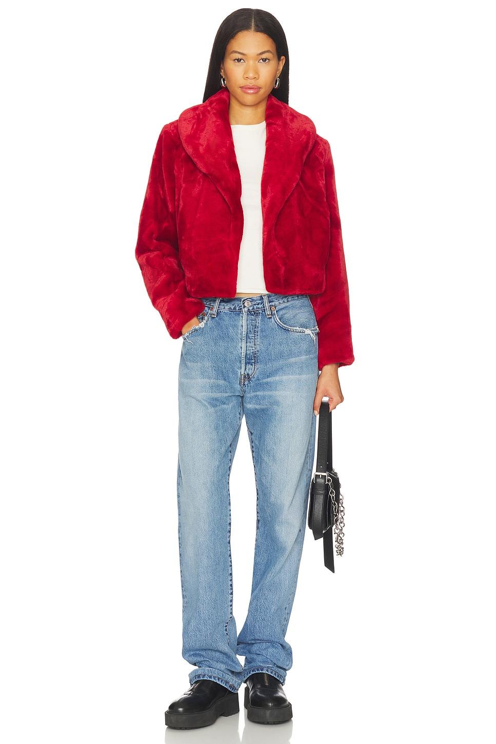 Self: 100% polyesterLining: 97% polyester, 3% spandex. Made in China. Dry clean. Side seam pockets. Faux fur fabric. Open front. Revolve Style No. BLAN-WO458. Manufacturer Style No. 33AB6928.