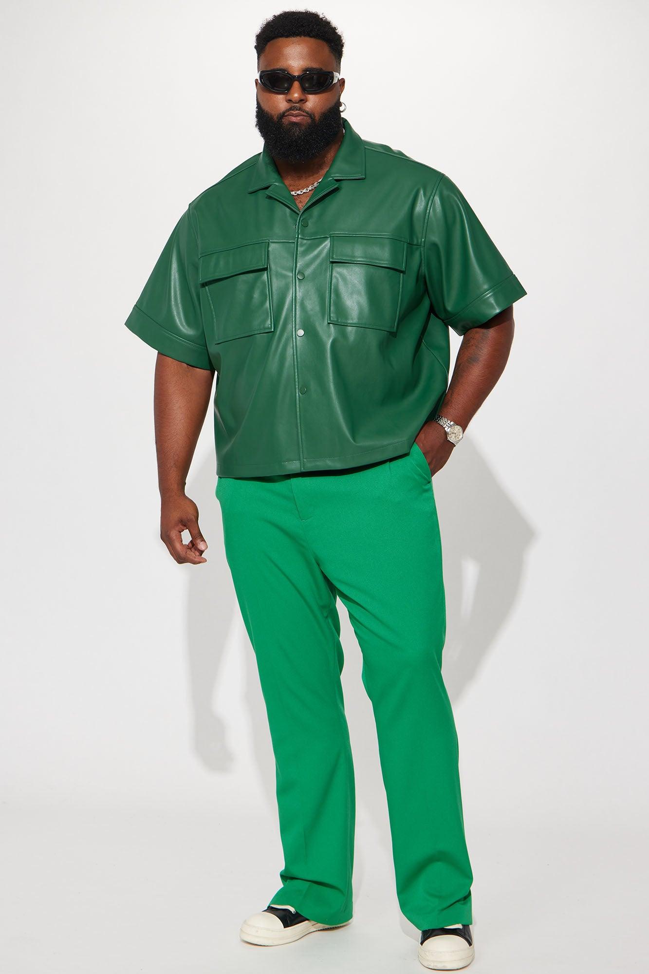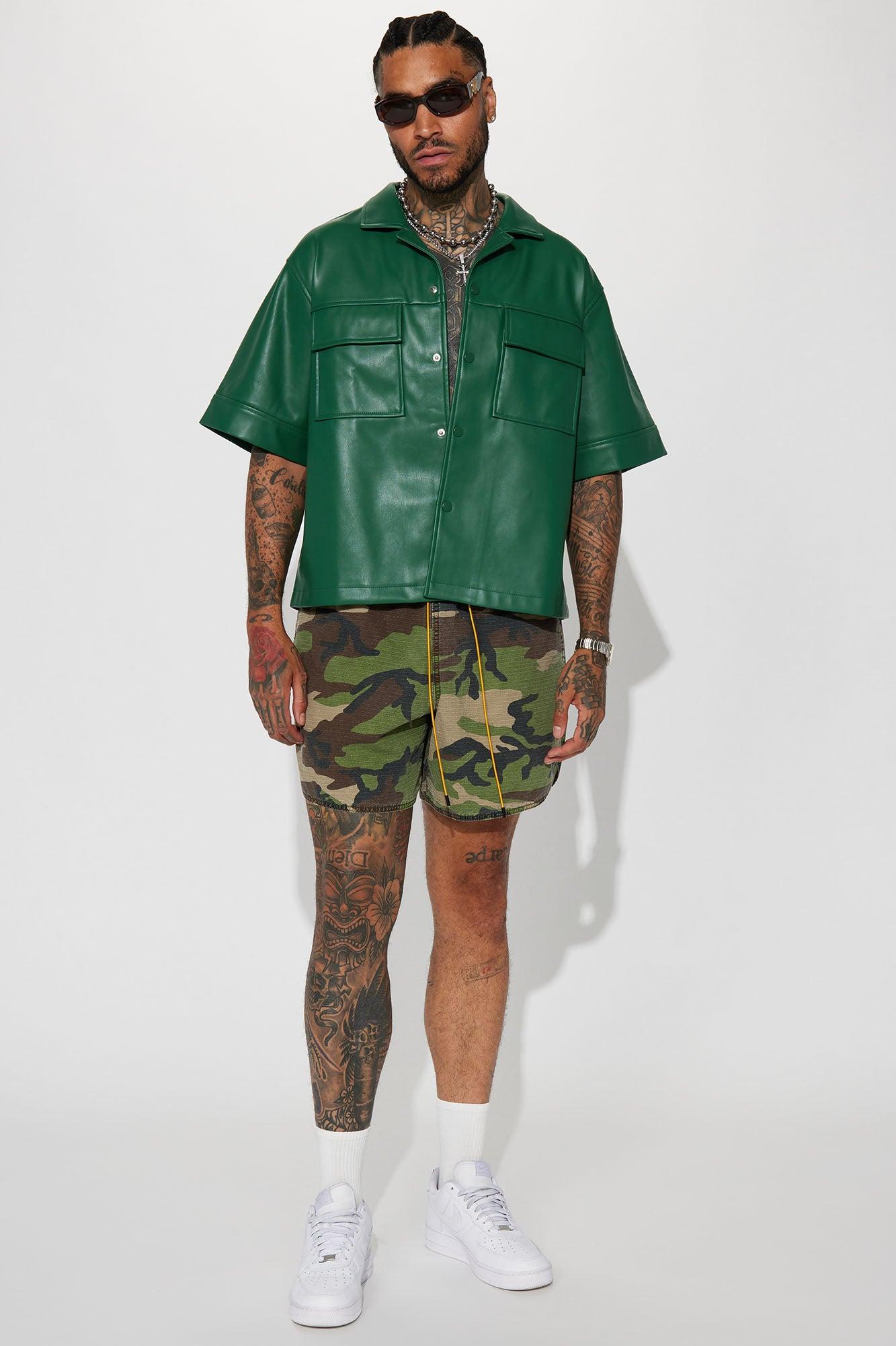 Cropped High Stepper Faux Leather Button Up Shirt - Hunter