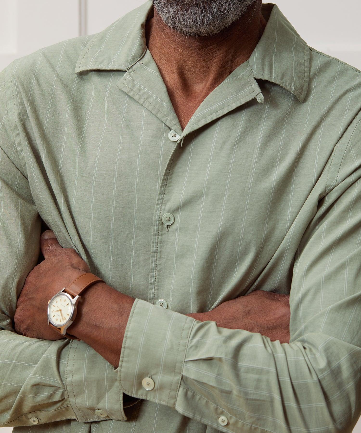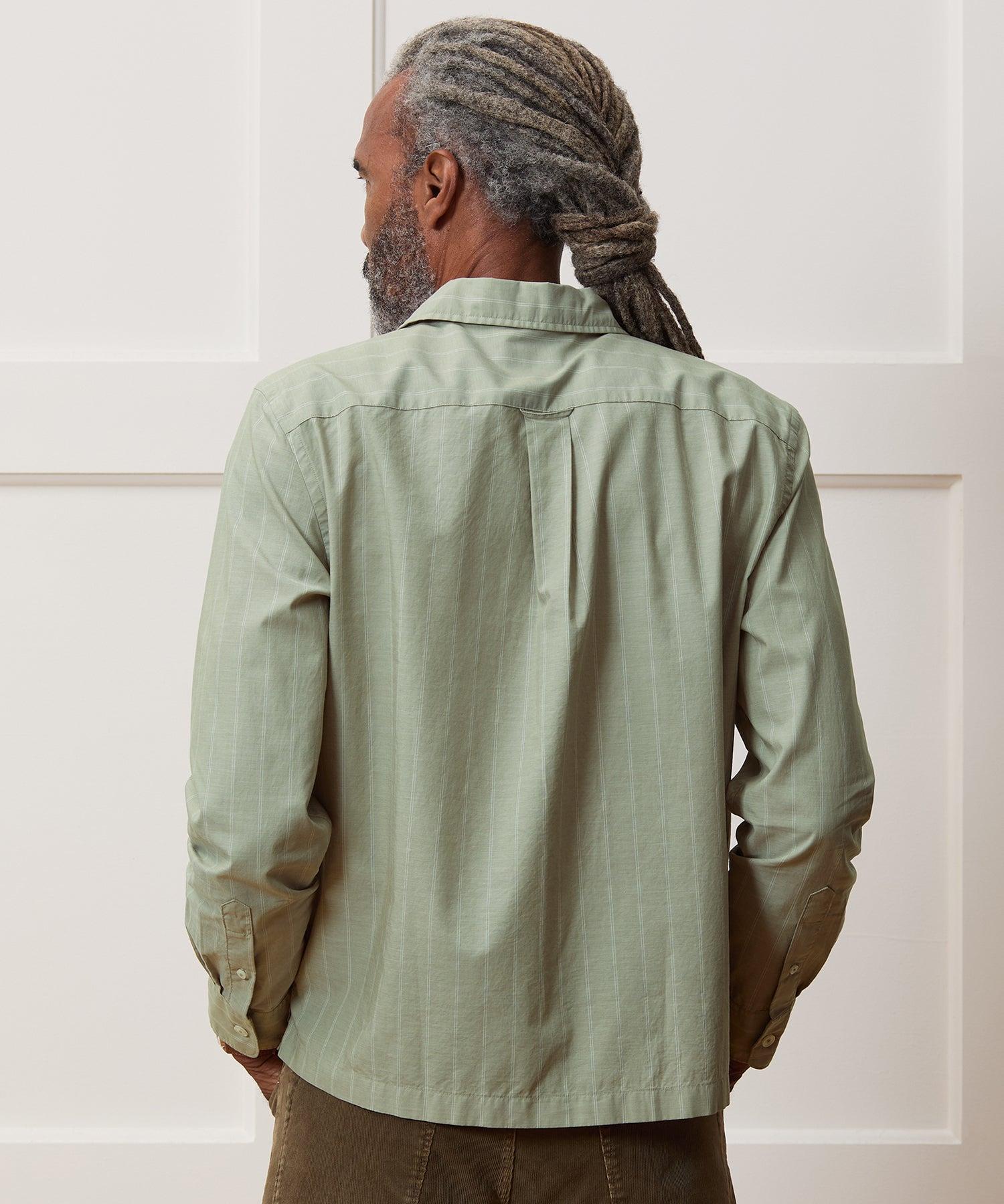 This cropped, long-sleeved, easy-wearing shirt is made from a lightweight poplin. It’s brushed, which gives it a softer handfeel than traditional poplin; it’s also a dobby, which refers to a type of fabric where geometric patterns are woven directly into the cloth to give it a subtle texture. Our cropped shirt works well all on its own, layered and worn open over a tee, or even worn underneath a suit jacket or sport coat to add a casual pop of color to your look — and it’s the perfect thing to pack if you’re planning any getaways. 100% Cotton Boxy, Cropped Fit Model is 6'2" and is wearing a size Medium Locker Loop at Back Split Side Seams Imported Machine Wash Warm Below 50C. Do Not Bleach. Dry Clean Any Solvent Except Trichloroethylene. Flat Drying. Warm Iron As Needed. Style SH7310338