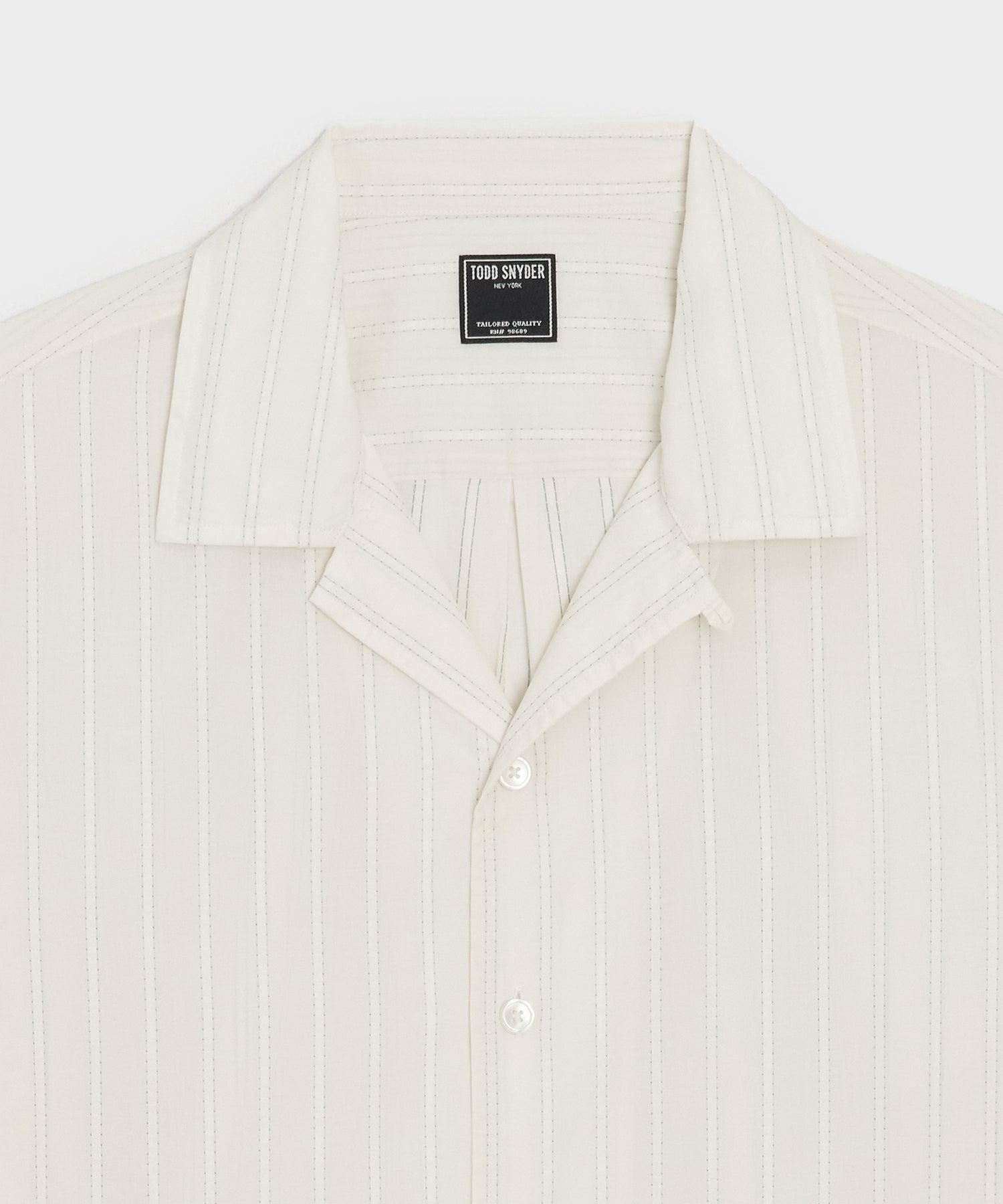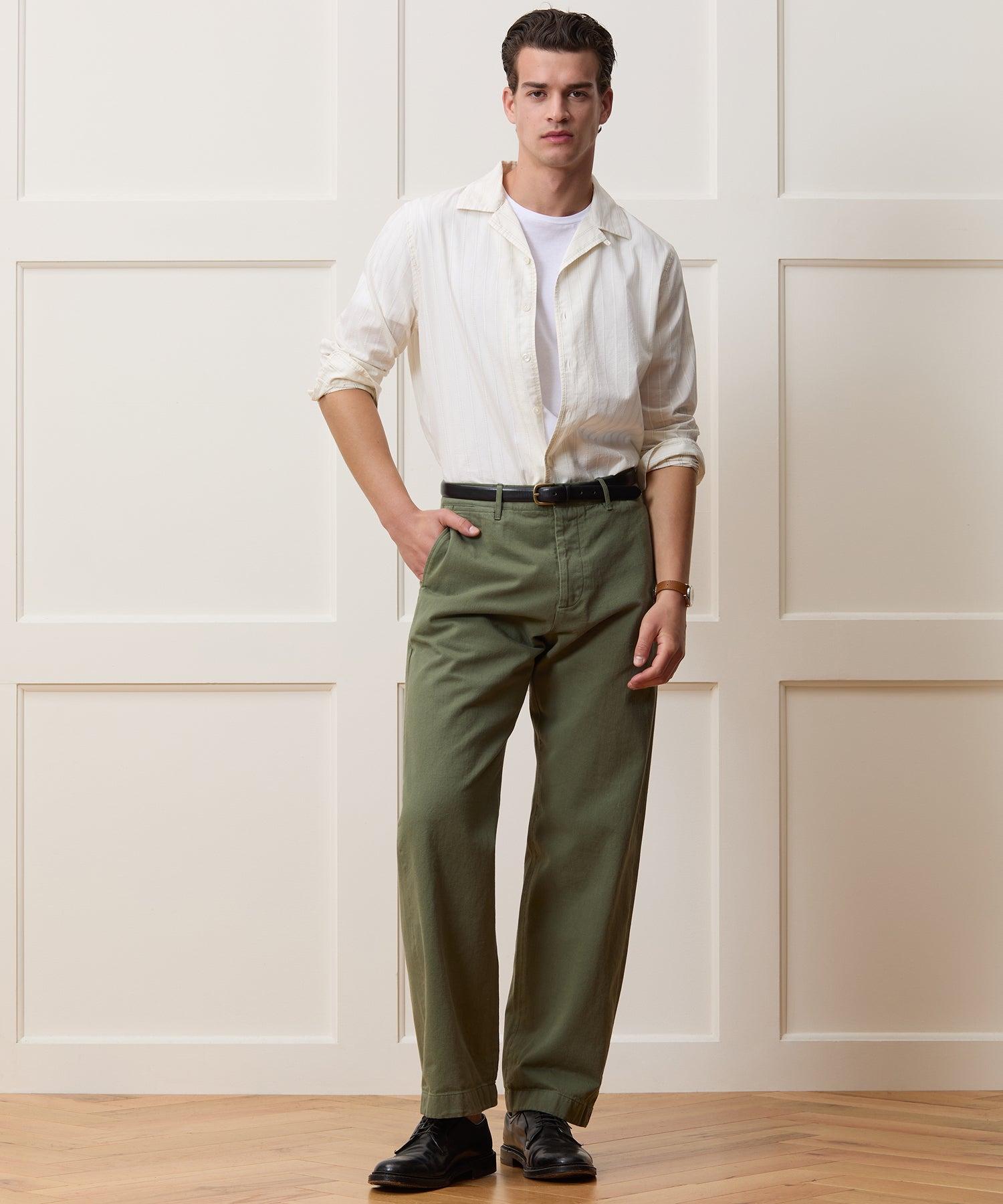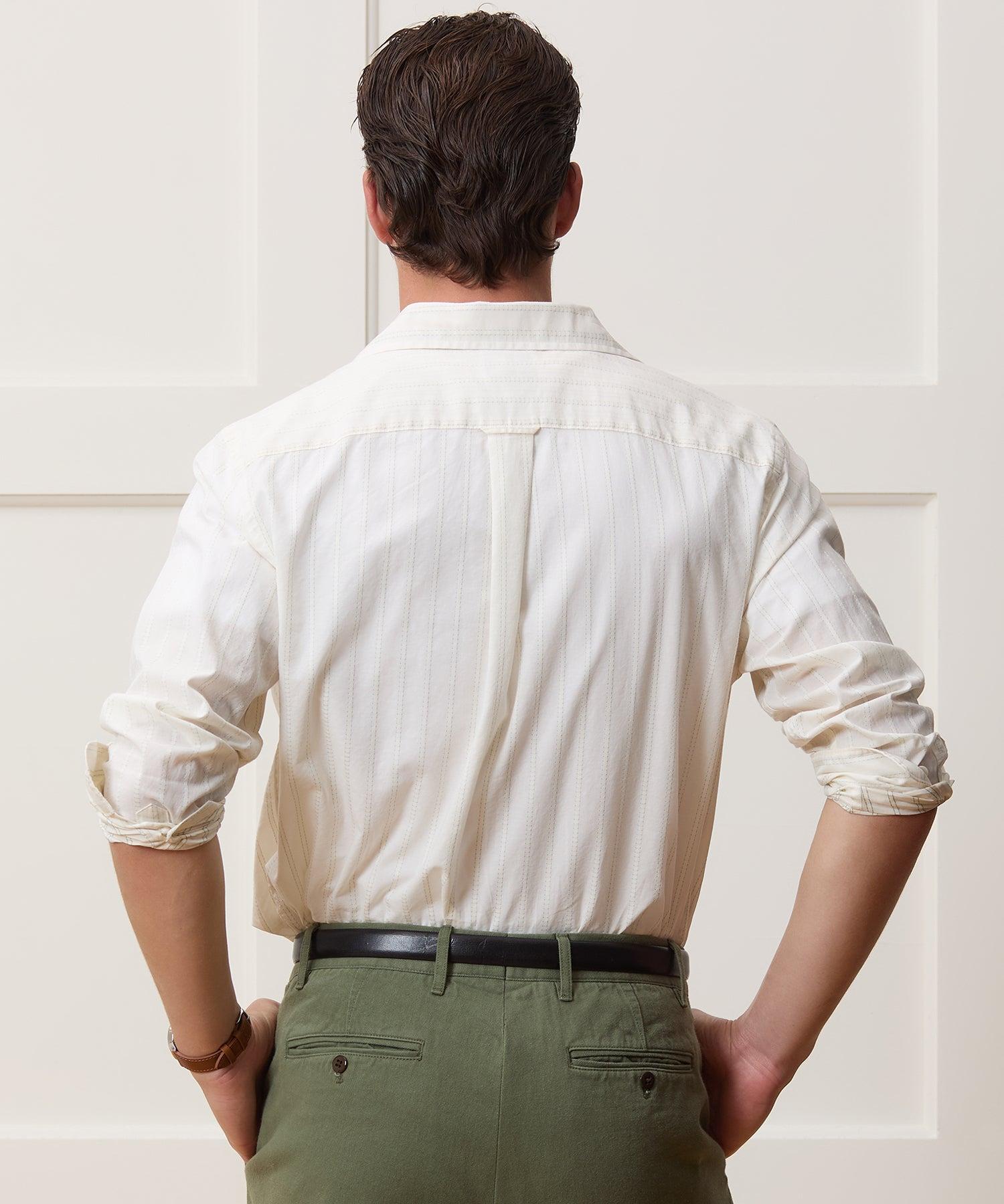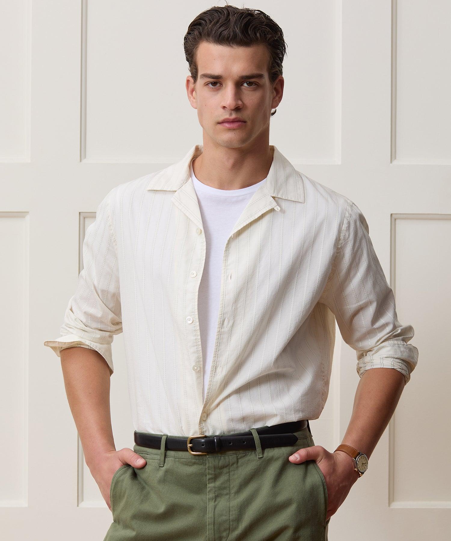 This cropped, long-sleeved, easy-wearing shirt is made from a lightweight poplin. It’s brushed, which gives it a softer handfeel than traditional poplin; it’s also a dobby, which refers to a type of fabric where geometric patterns are woven directly into the cloth to give it a subtle texture. Our cropped shirt works well all on its own, layered and worn open over a tee, or even worn underneath a suit jacket or sport coat to add a casual pop of color to your look — and it’s the perfect thing to pack if you’re planning any getaways. 100% Cotton Boxy, Cropped Fit Model is 6'2" and is wearing a size Medium Locker Loop at Back Split Side Seams Imported Machine Wash Warm Below 50C. Do Not Bleach. Dry Clean Any Solvent Except Trichloroethylene. Flat Drying. Warm Iron As Needed. Style SH7310334