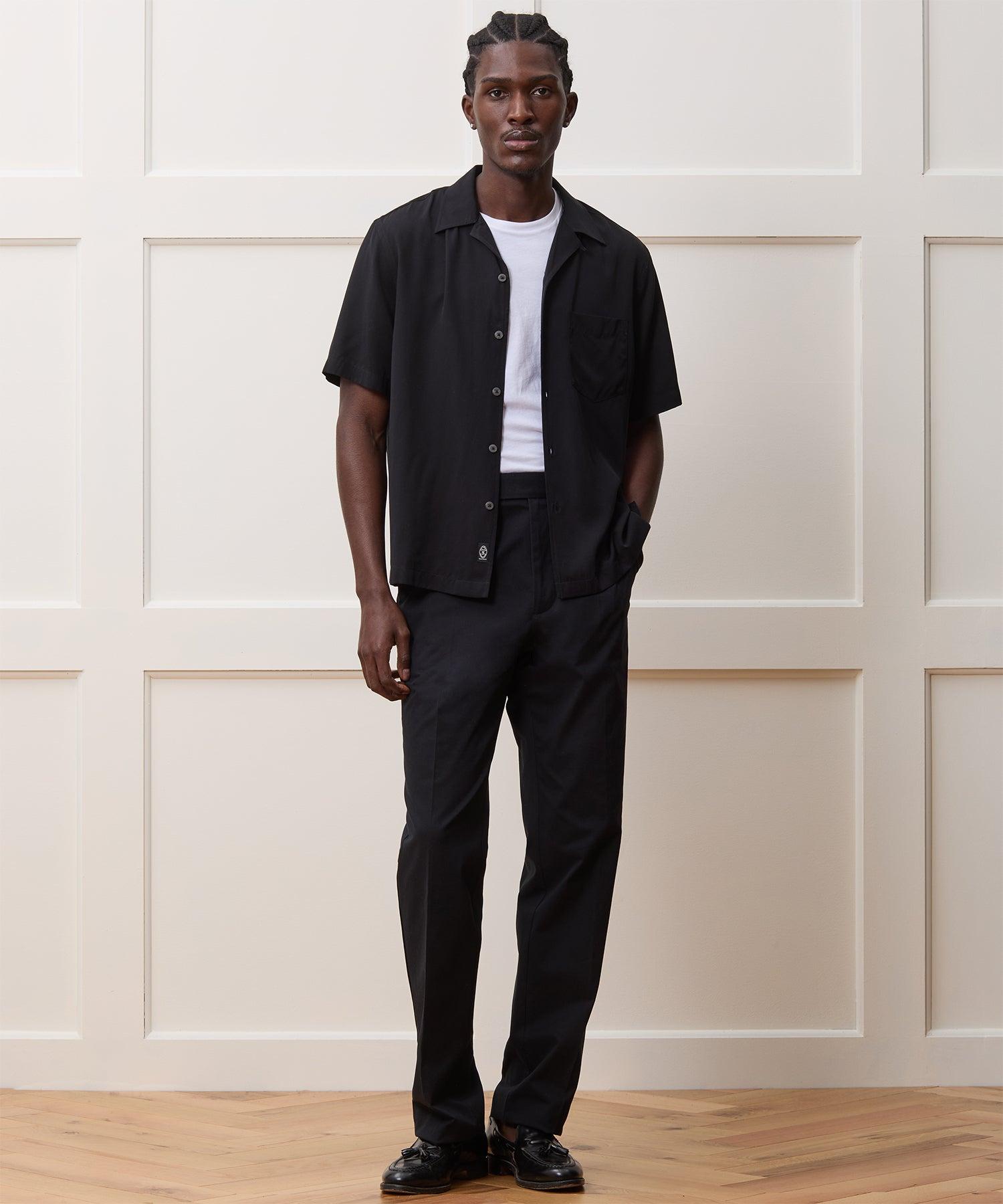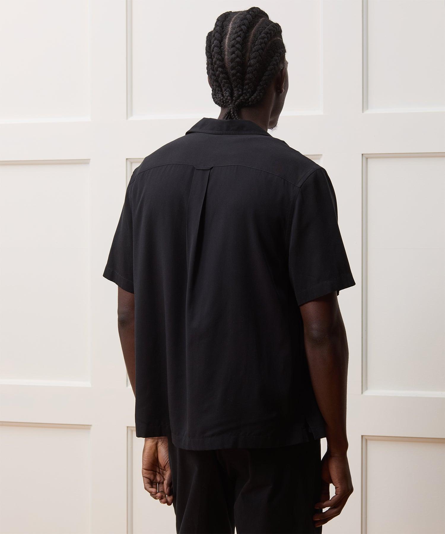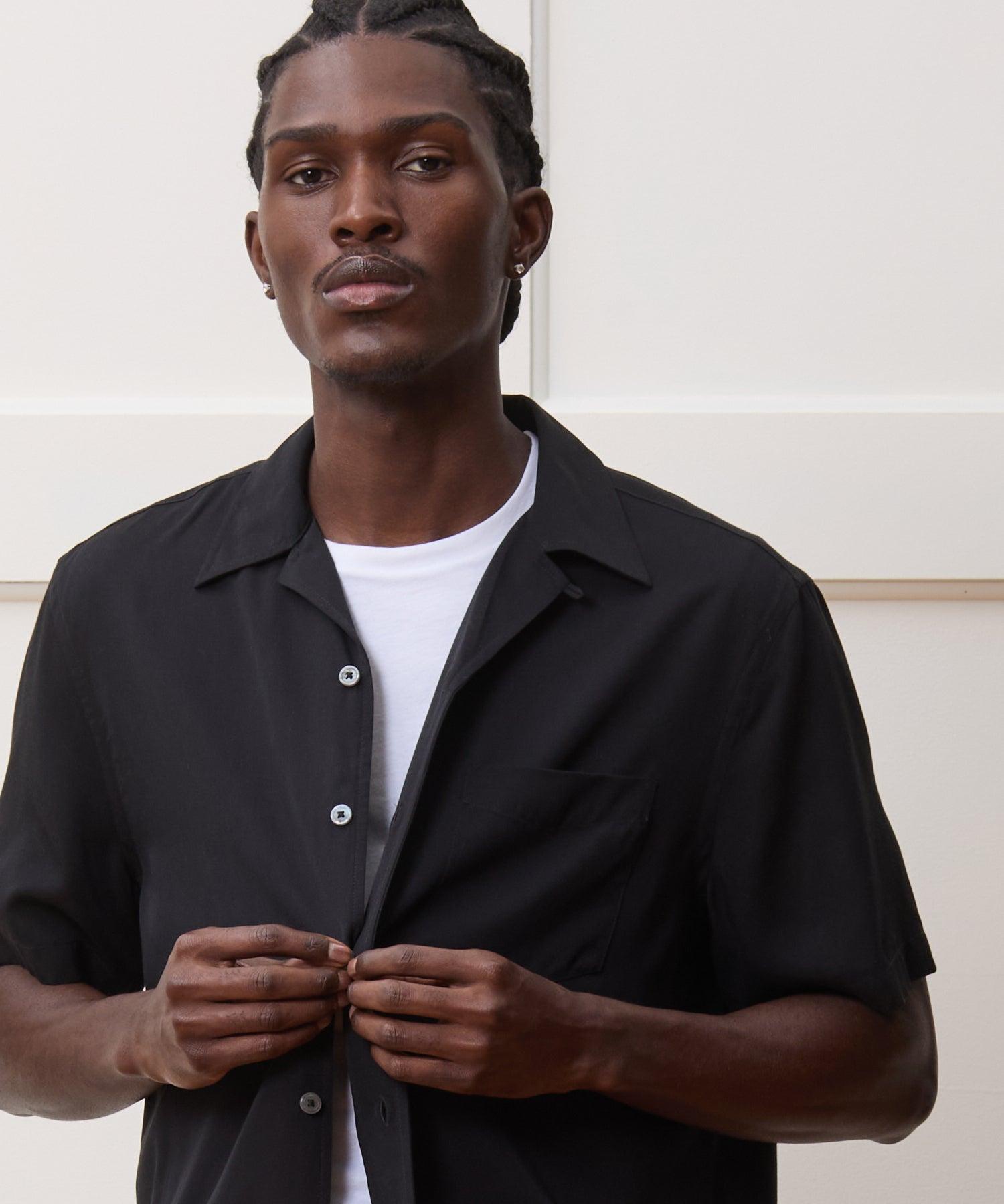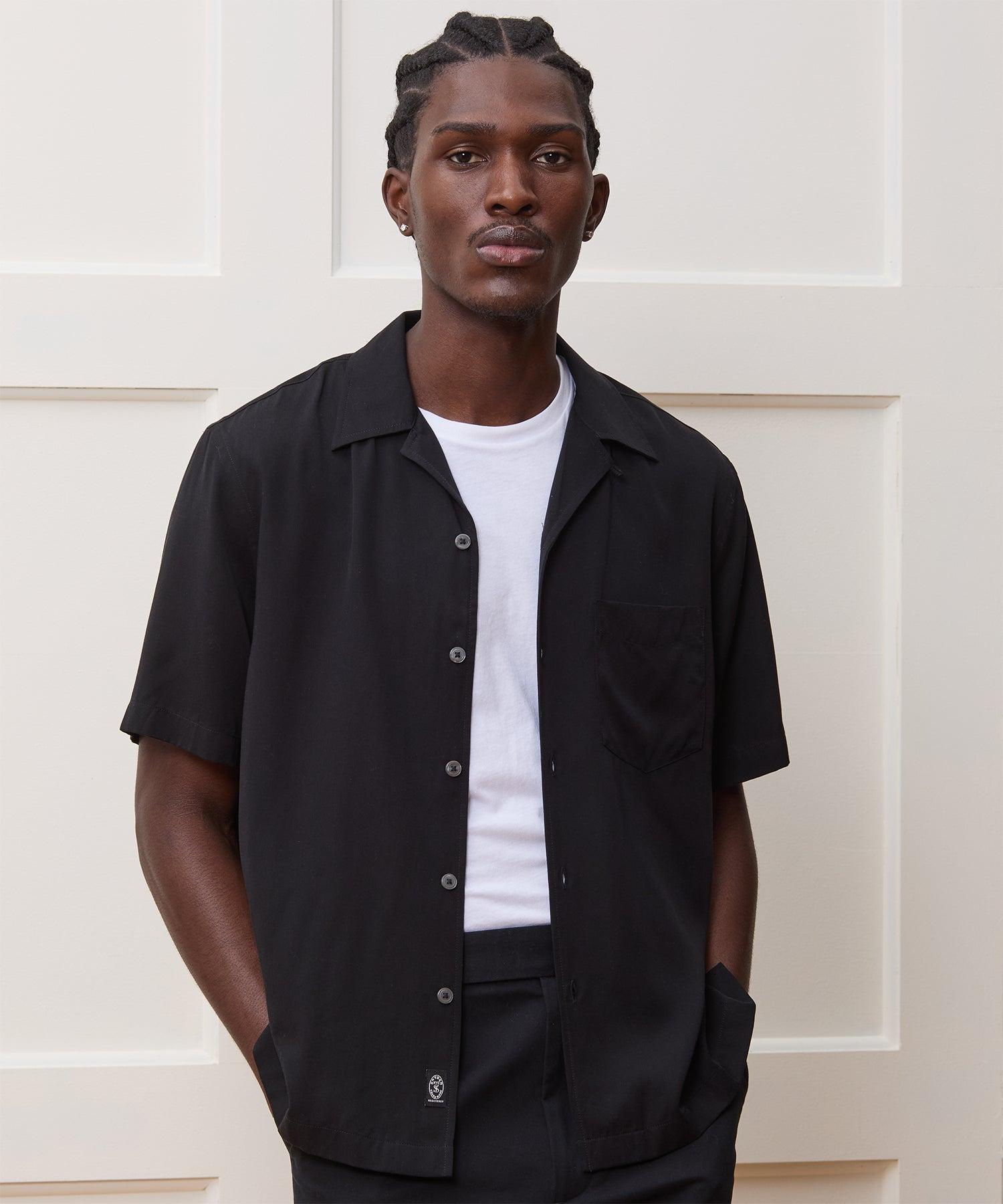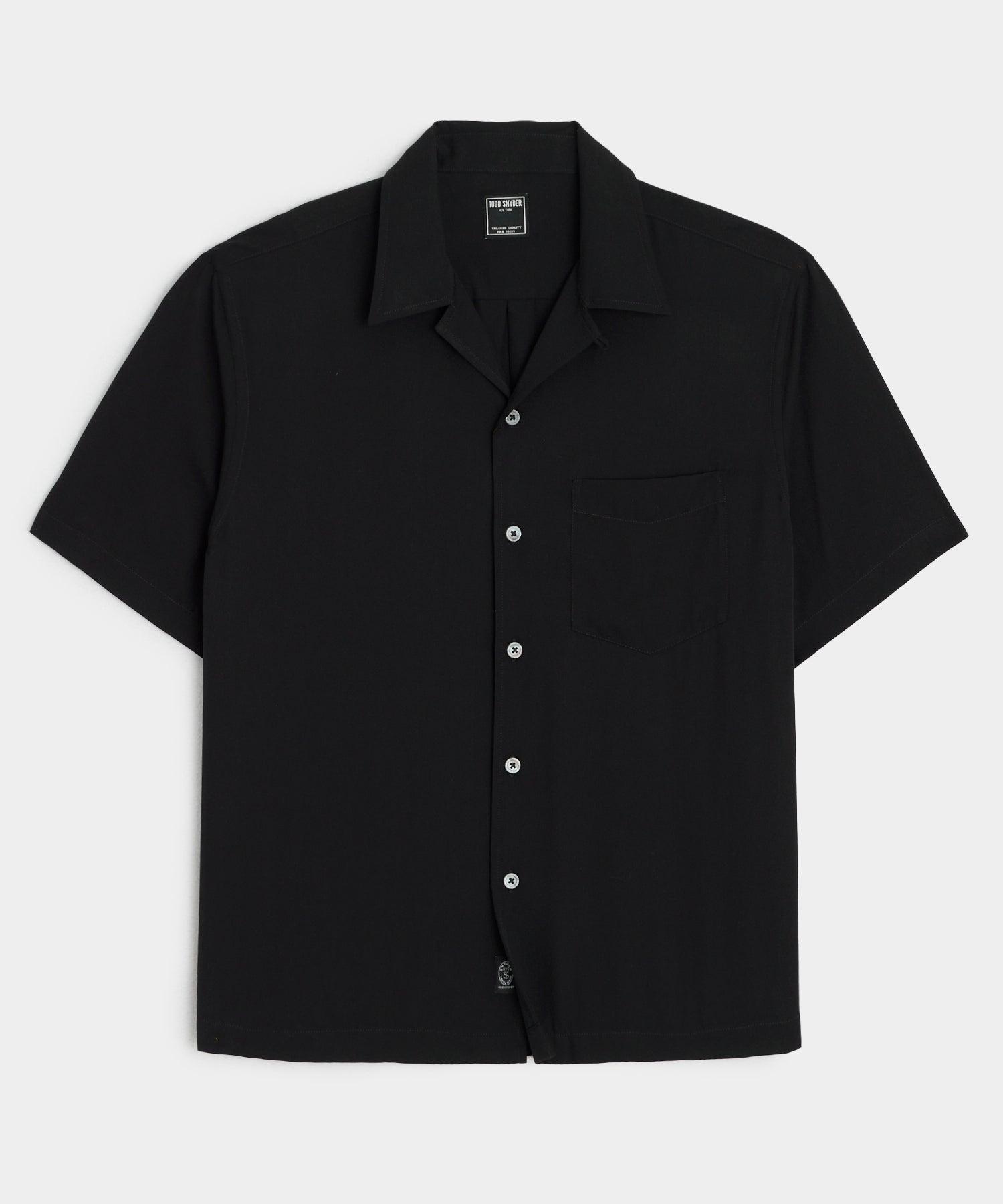 All the laidback style of our bestselling Camp Collar Shirts in a new fabric and slightly cropped, boxier silhouette. This easy-wearing shirt is made from a rayon fabric — it has just the right amount of sheen, drapes well and feels buttery soft (but still solid and luxe). Our Capri Shirt works well worn all on its own, open over a tee as a light layer, or even underneath a suit jacket or sport coat; Todd likes to pop the collar over the lapel of a jacket. 70% Viscose, 30% Lyocell Boxy Fit Cropped 27.5” Front Single Chest Pocket Made in China Dry clean or machine wash cold, gentle cycle, with like colors. Do not bleach. Tumble dry low, cool iron as needed. Style SH810915