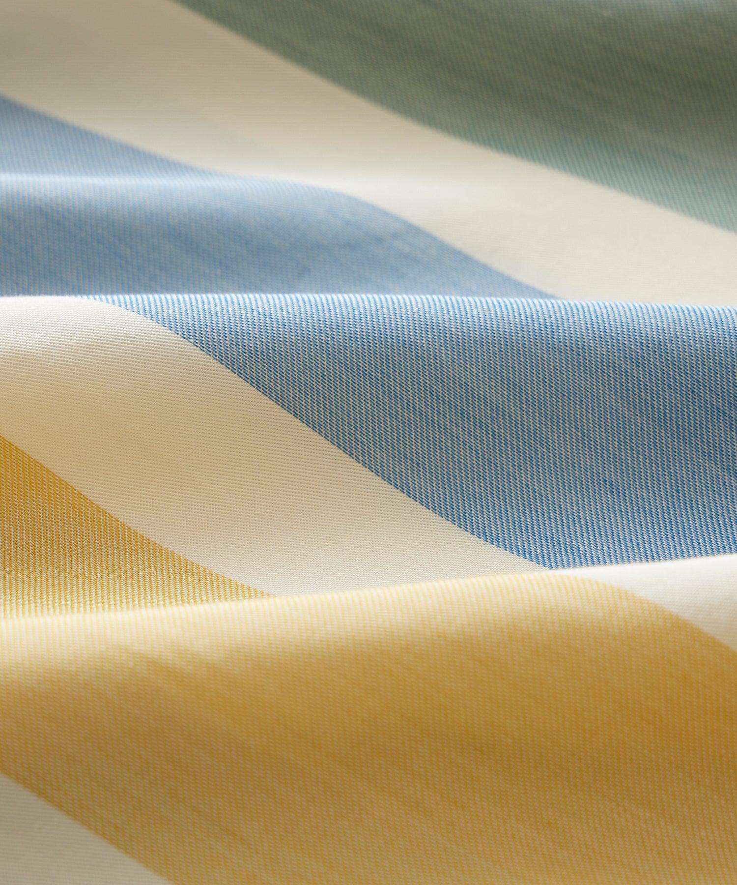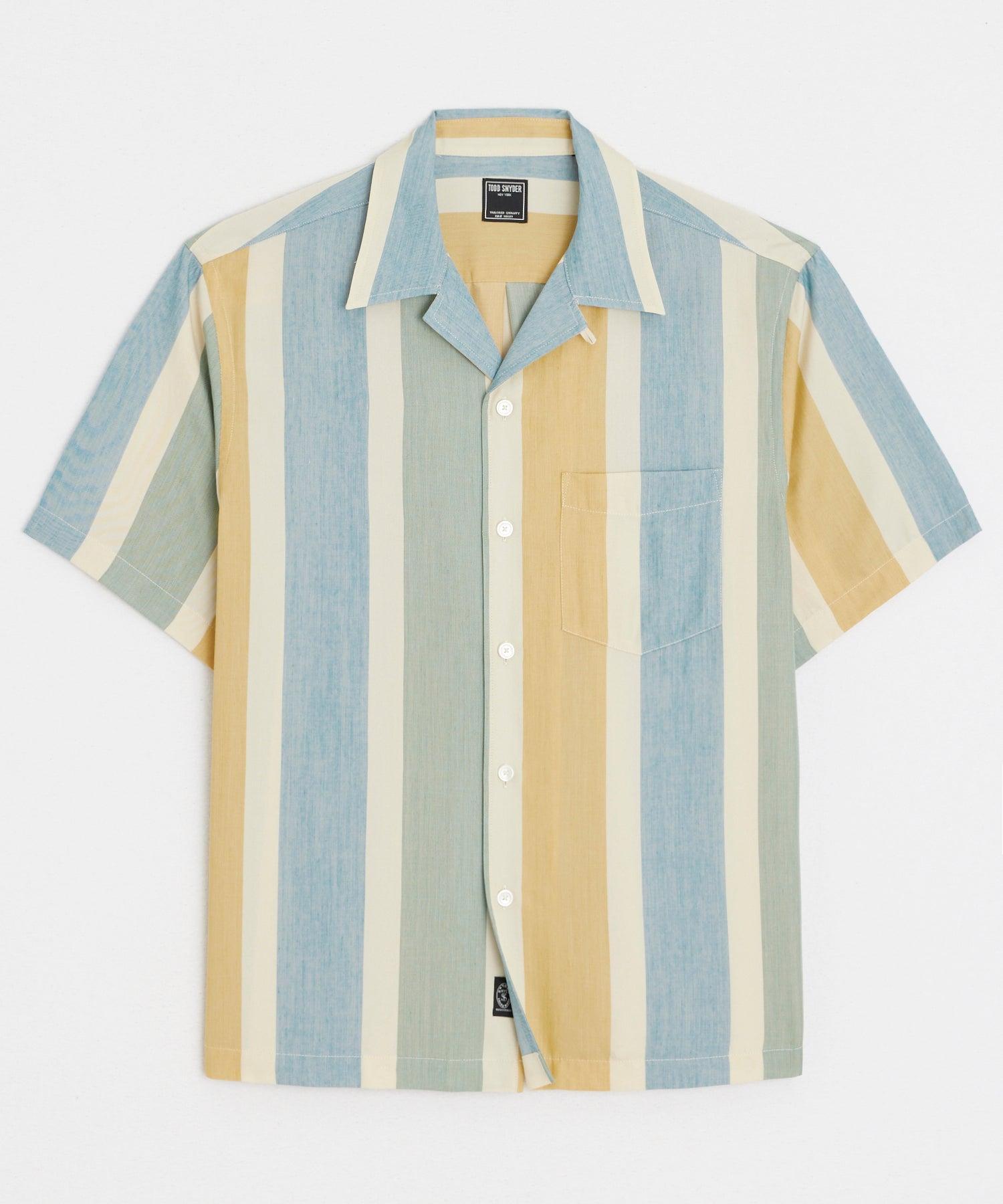All the laidback style of our bestselling Camp Collar Shirts in a cropped, short-sleeved silhouette. This easy-wearing shirt is made from a soft and silky viscose blend fabric in retro stripes (think what you’d wear bowling or to the drive-in movie theater). Our Capri Shirt works well all on its own, layered and worn open over a tee, or even worn underneath a suit jacket or sport coat to add a casual pop of color to your look. 70% Viscose, 30% Lyocell Boxy Fit Cropped Single Chest Pocket Split Side Seams Locker Loop at Back Fabric From China Garment Made in Vietnam Dry clean or machine wash cold with like colors, gentle cycle. Do not bleach. Tumble dry low. Cool iron if needed. Style SH8110133