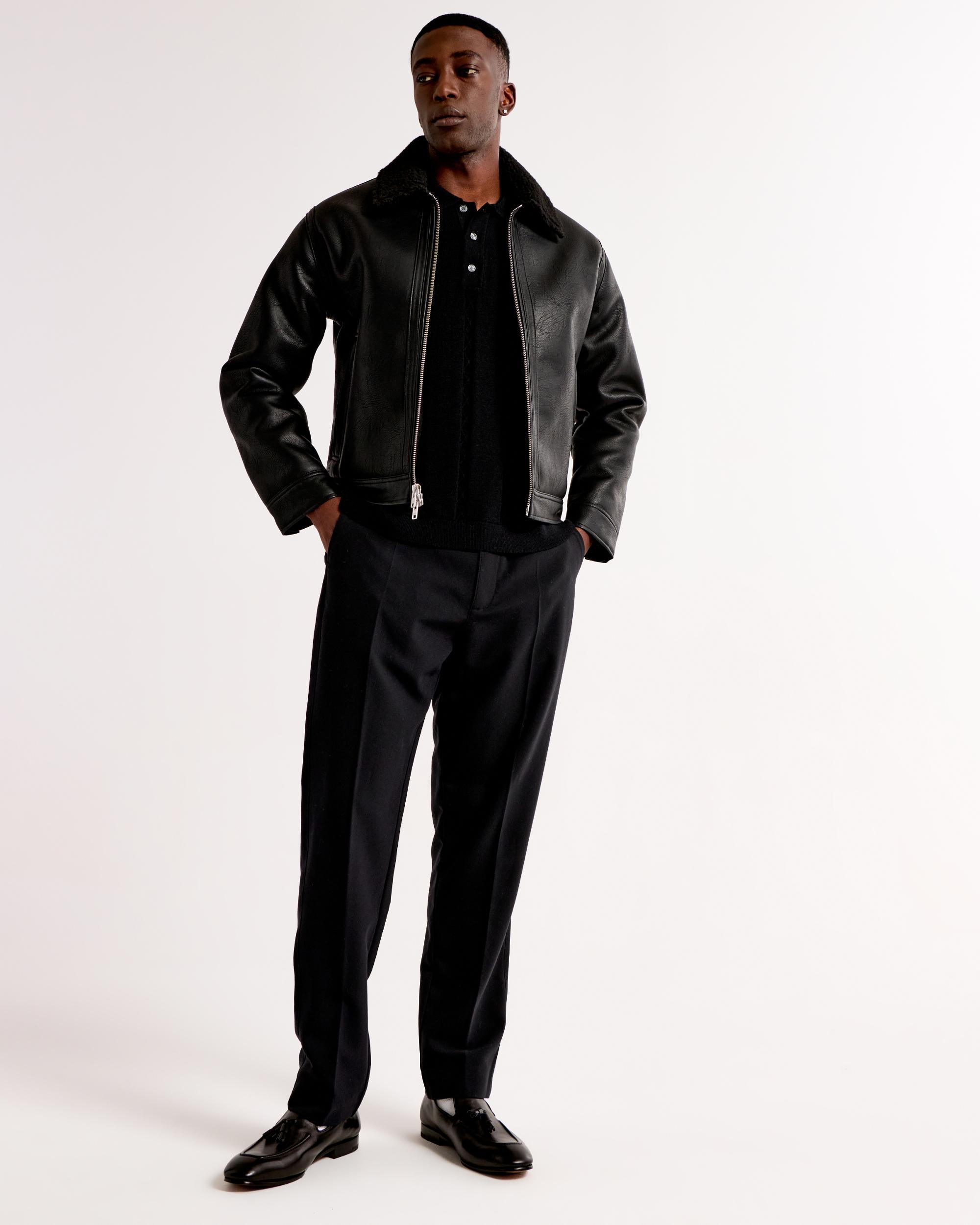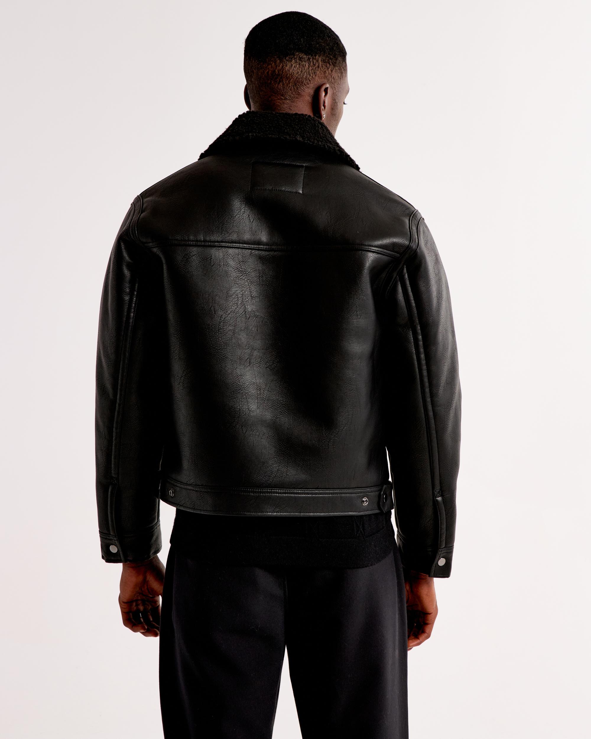 Cropped Sherpa-Lined Vegan Leather Aviator Jacket