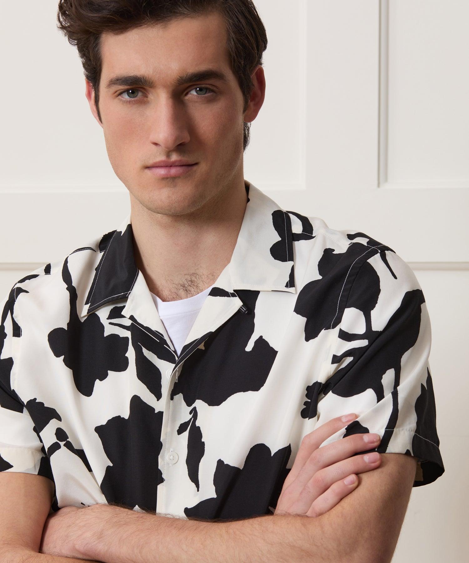 Effortlessly cool. This Camp Collar Shirt is crafted from a refined silk-cotton fabric with a lightweight, airy feel. It’s printed in shades of black, green and tan, in a bold, abstract triangle pattern based on hand-painted artwork. With a boxy fit, it’s the perfect vacation shirt for days when you want something easy to pop on that still makes an impact — wear it all on its own, or open over a tee or tank. 67% Silk, 33% Cotton Boxy Fit Cropped Model is 6'2" and is wearing a size Medium Camp Collar Split Side Seams Fabric From China Garment Made in Vietnam Dry clean or hand wash cold, separately. Do not machine wash (even if your machine has a "Hand Wash" setting). Non-chlorine bleach only, when needed. Lay flat to dry. Cool iron as needed. Style SH8310200