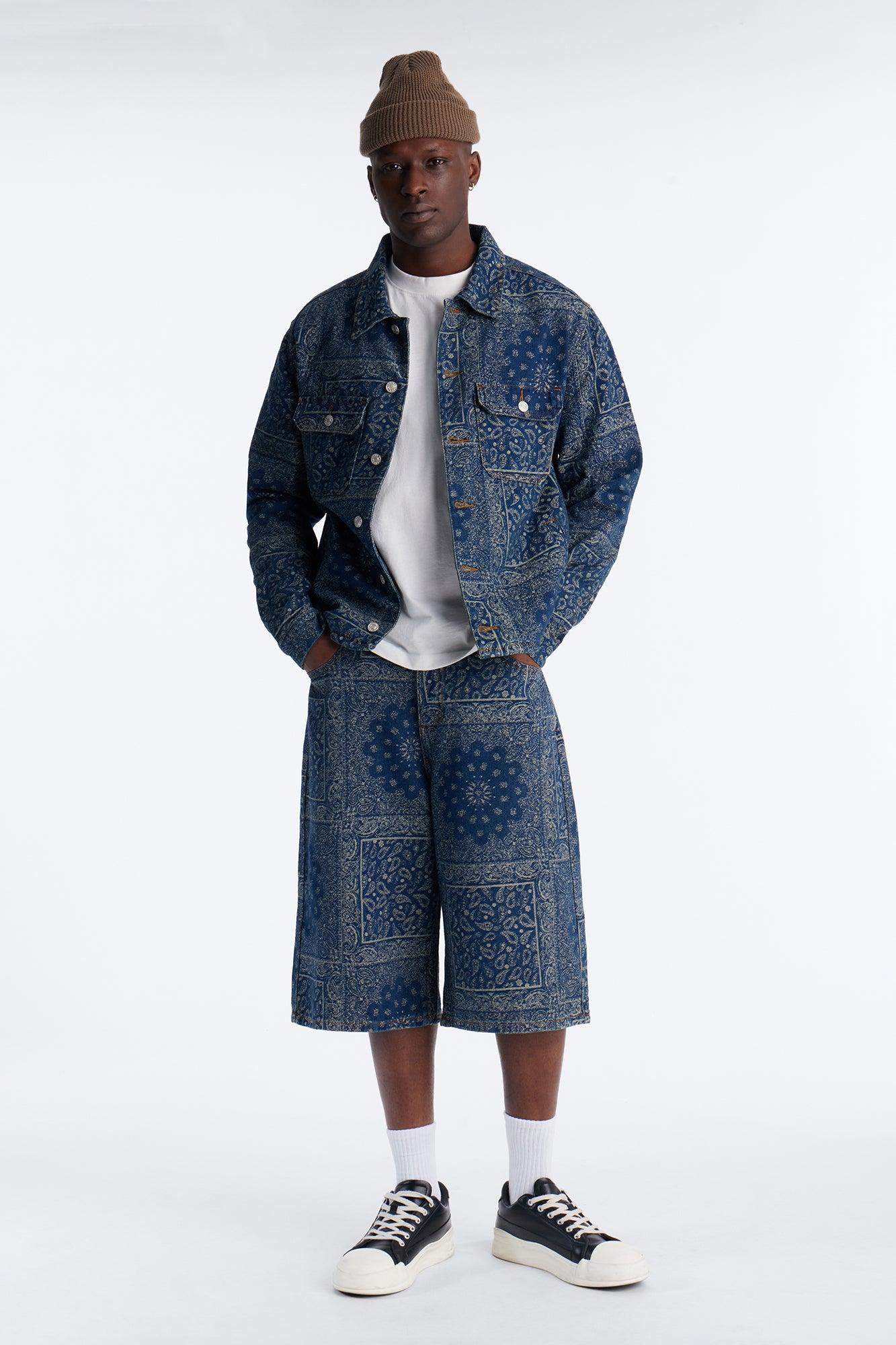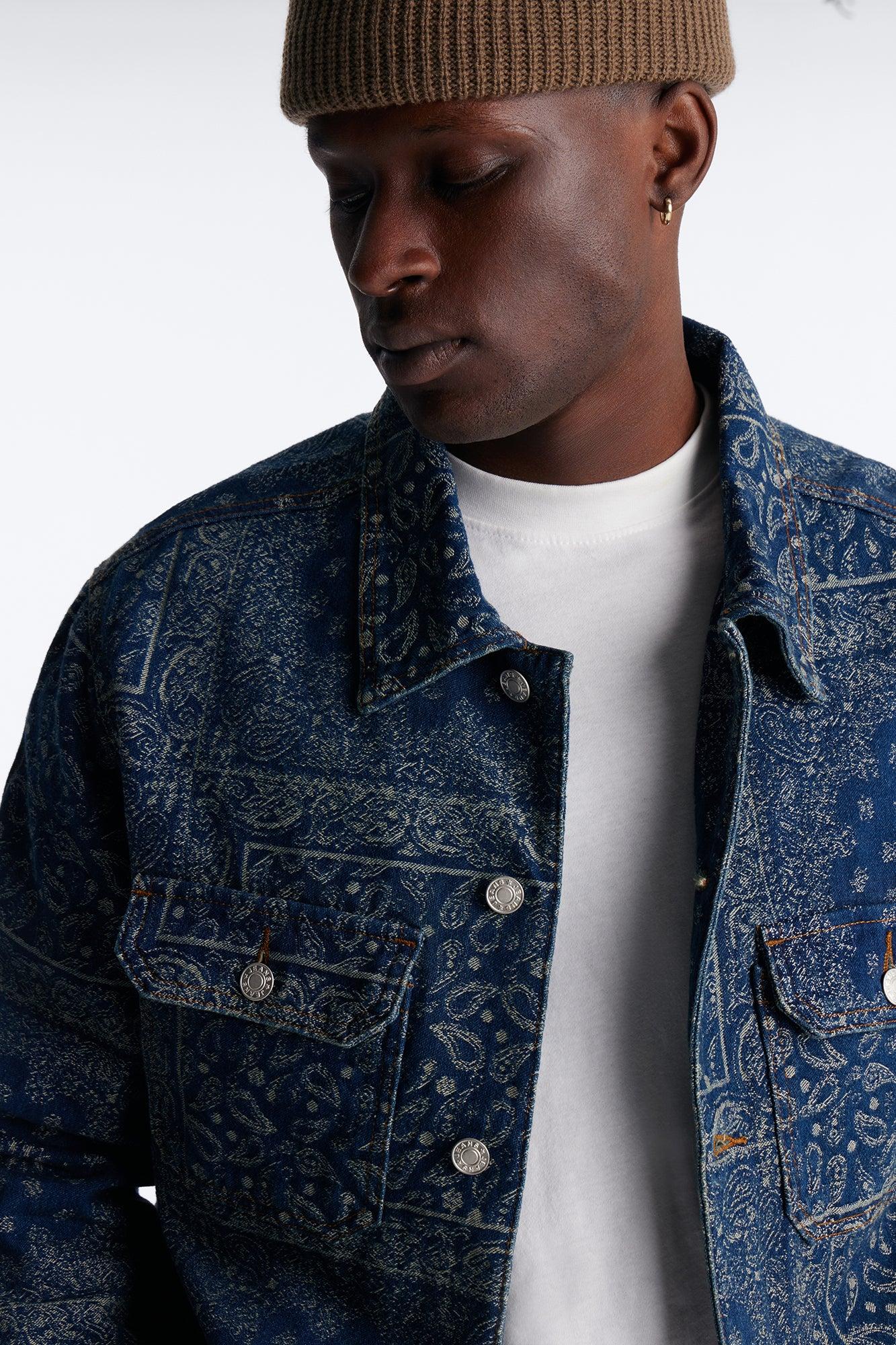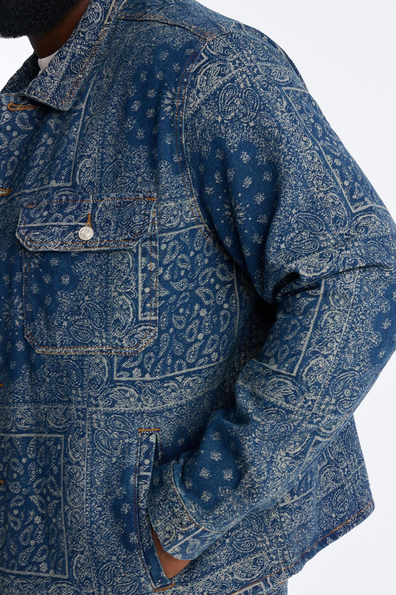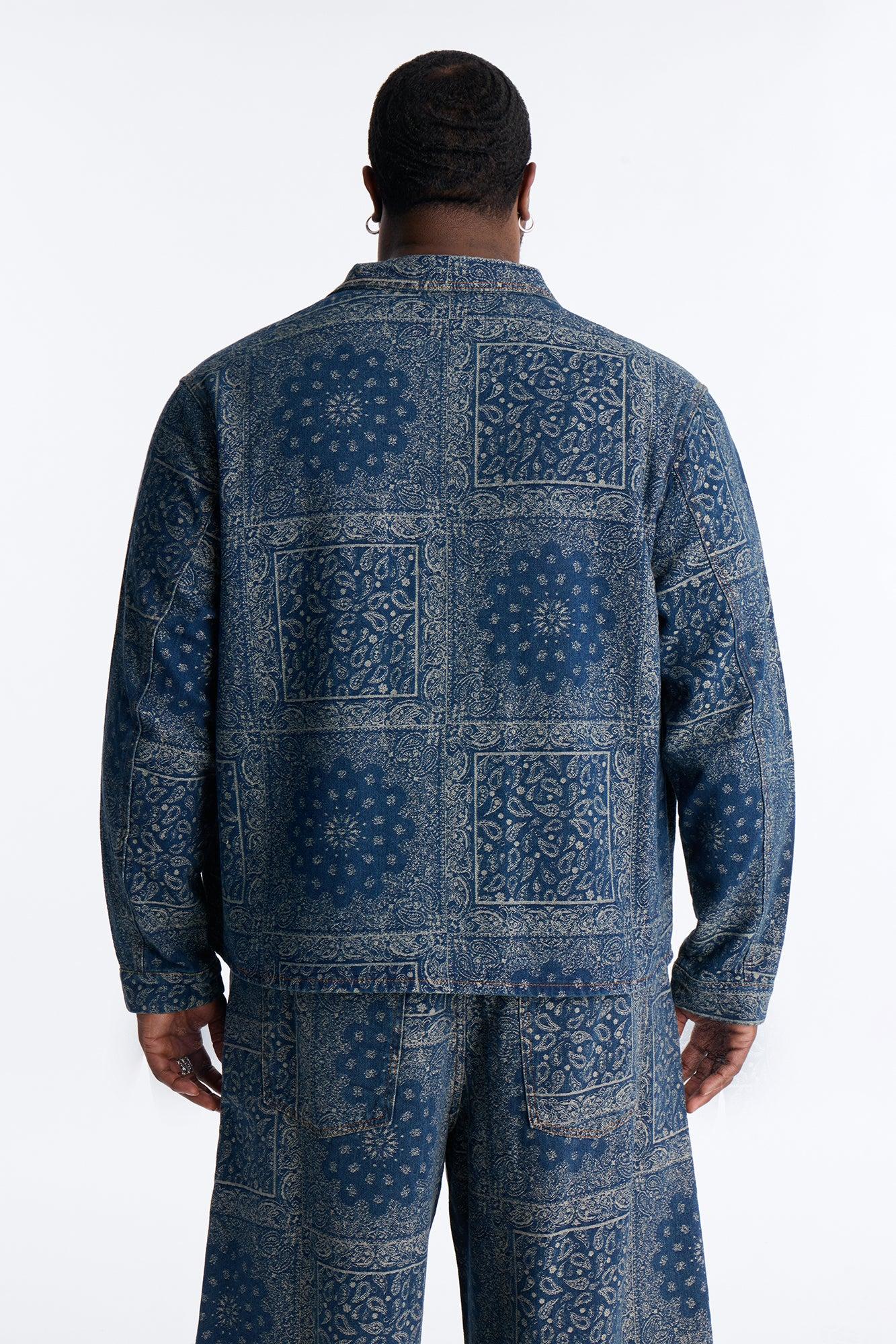 Cropped Street Paisley Denim Work Jacket - Dark Wash
