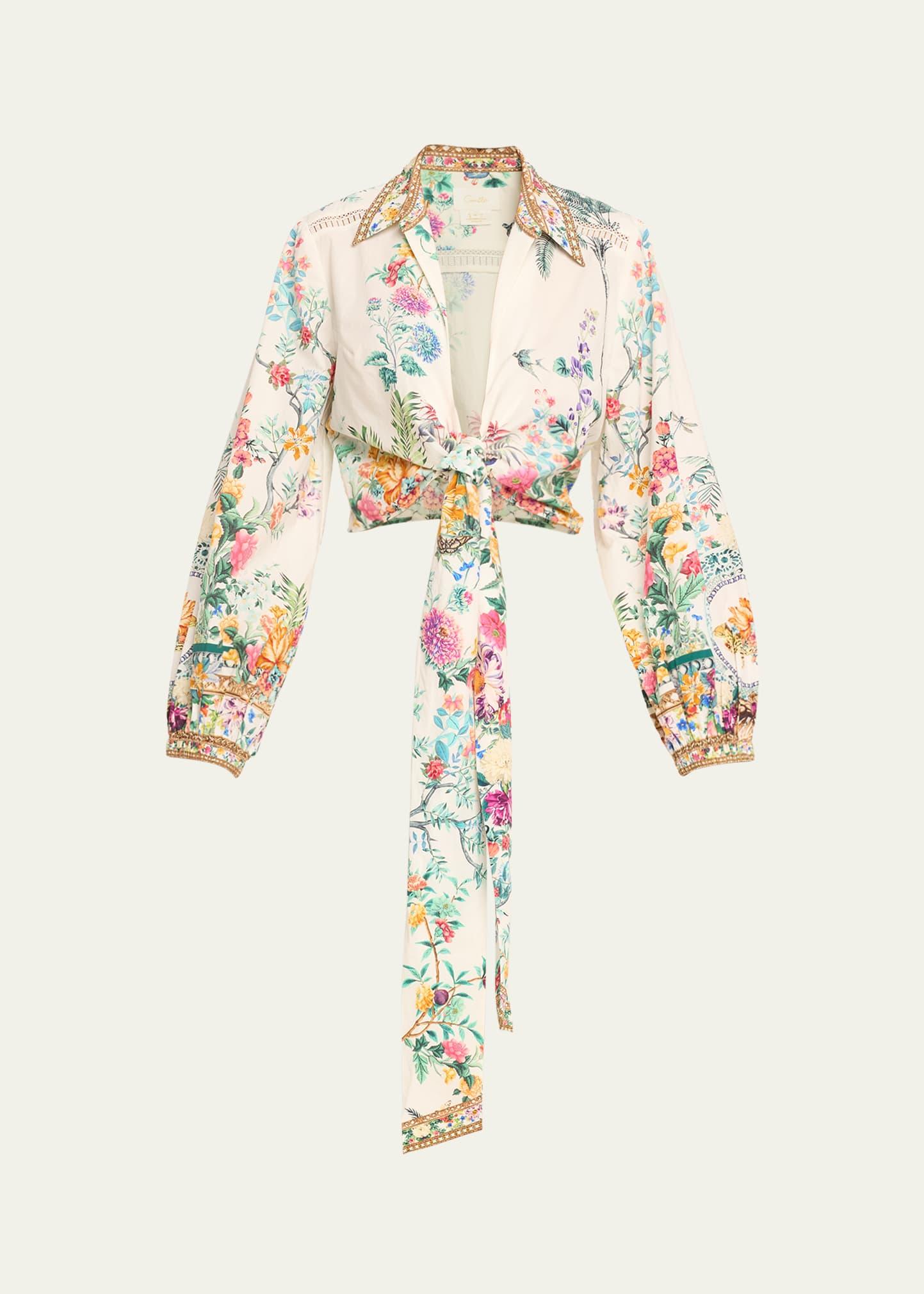 Cropped Tie-Front Organic Cotton Poplin Wrap Shirt
