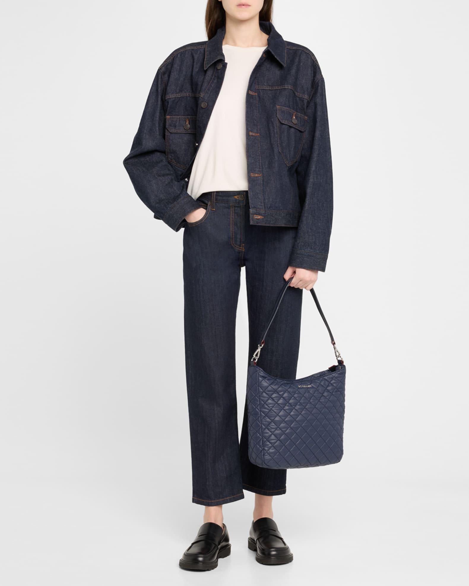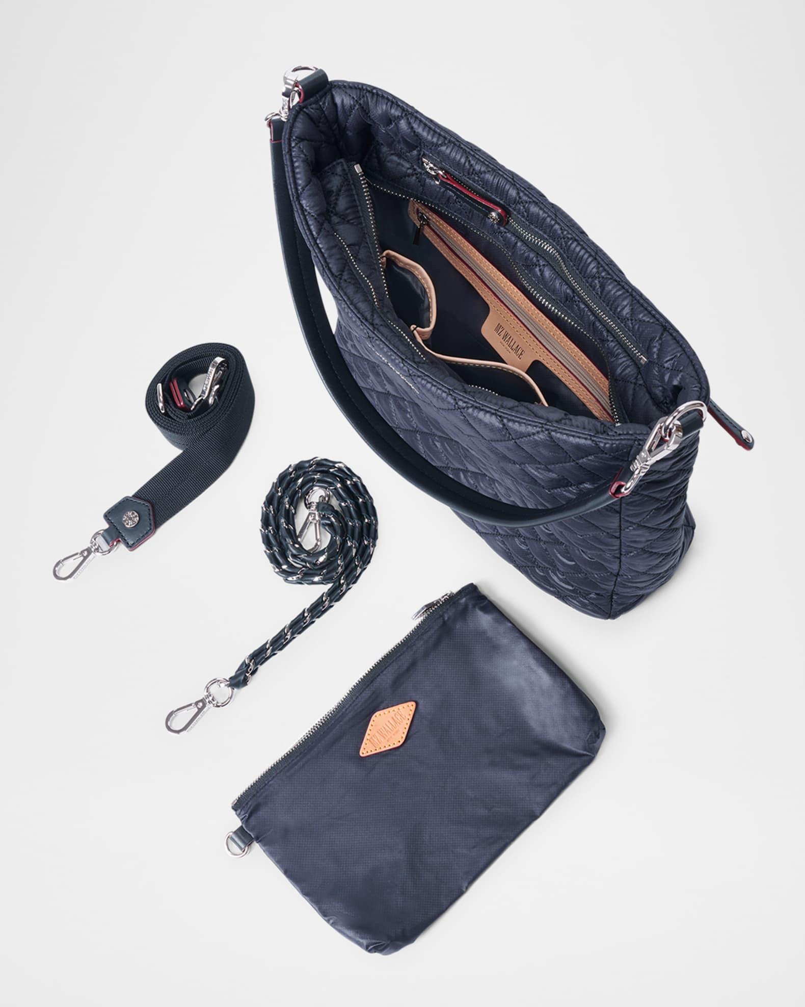 MZ WALLACE "Crosby" hobo crossbody bag in quilted fabric and leather Detachable woven shoulder strap Detachable leather shoulder strap Detachable, adjustable web crossbody strap Zip top closure Exterior, two zip pockets Interior, one zip pocket, two slip pockets, removable zip pouch bag Approx. 11.6"H x 11"W x 3.2"D Nylon Imported