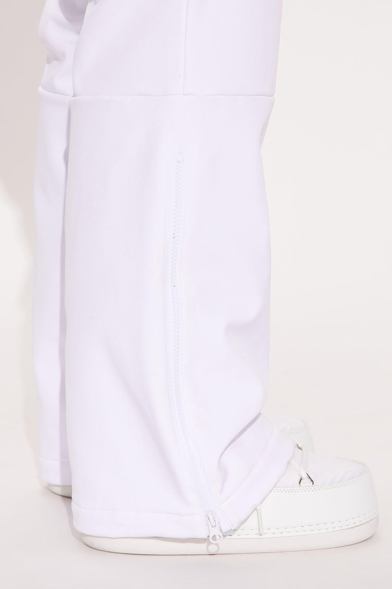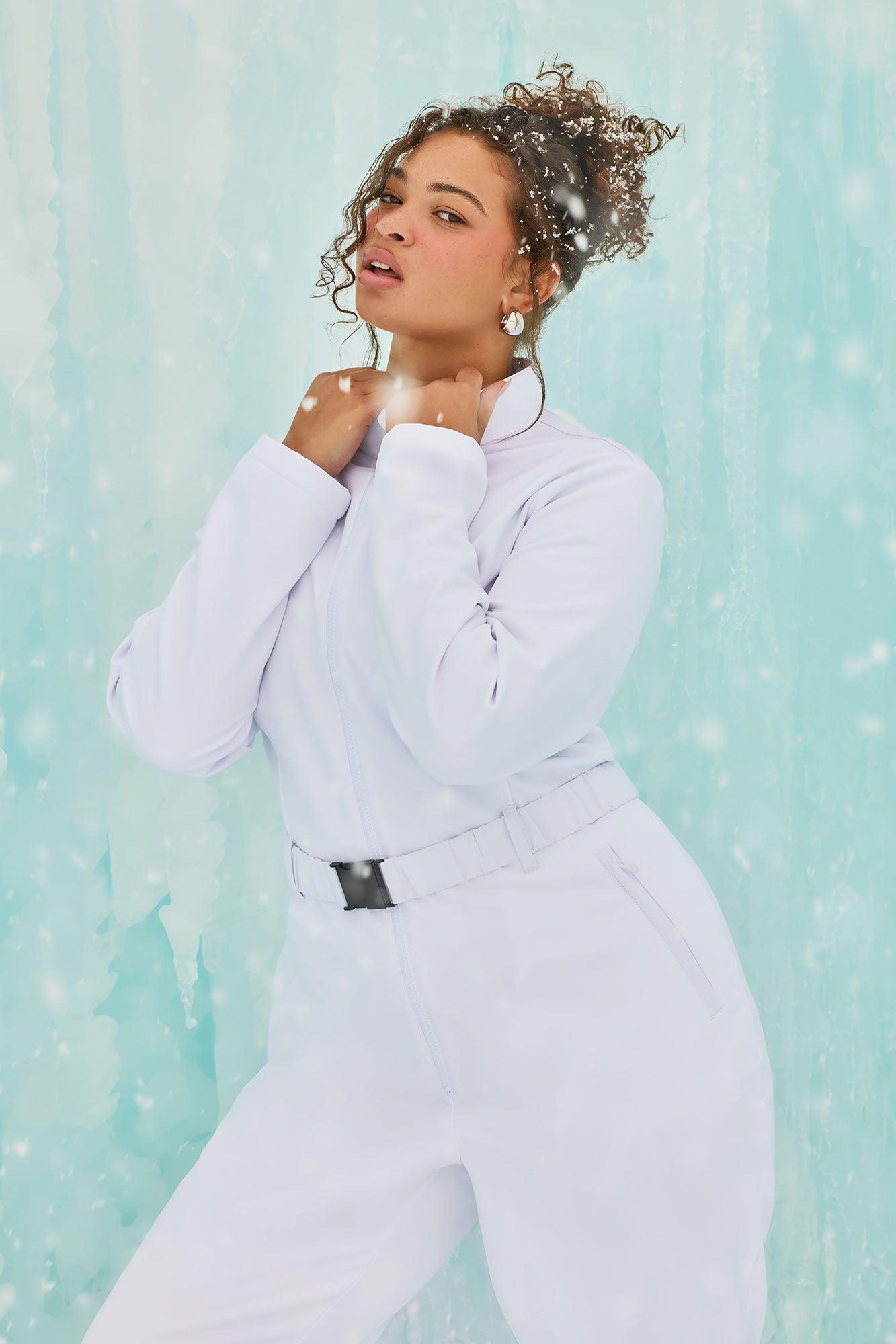 Available In Black, Fuchsia, Light Blue And White. Ski Jumpsuit Long Sleeve Zip Front Belted Hidden Pockets Wide Leg Fleece Lined Non Stretch Water-Resistant Face/Belt: 90% Polyester 10% Spandex Back/Lining/Pocket Lining: 100% Polyester Imported