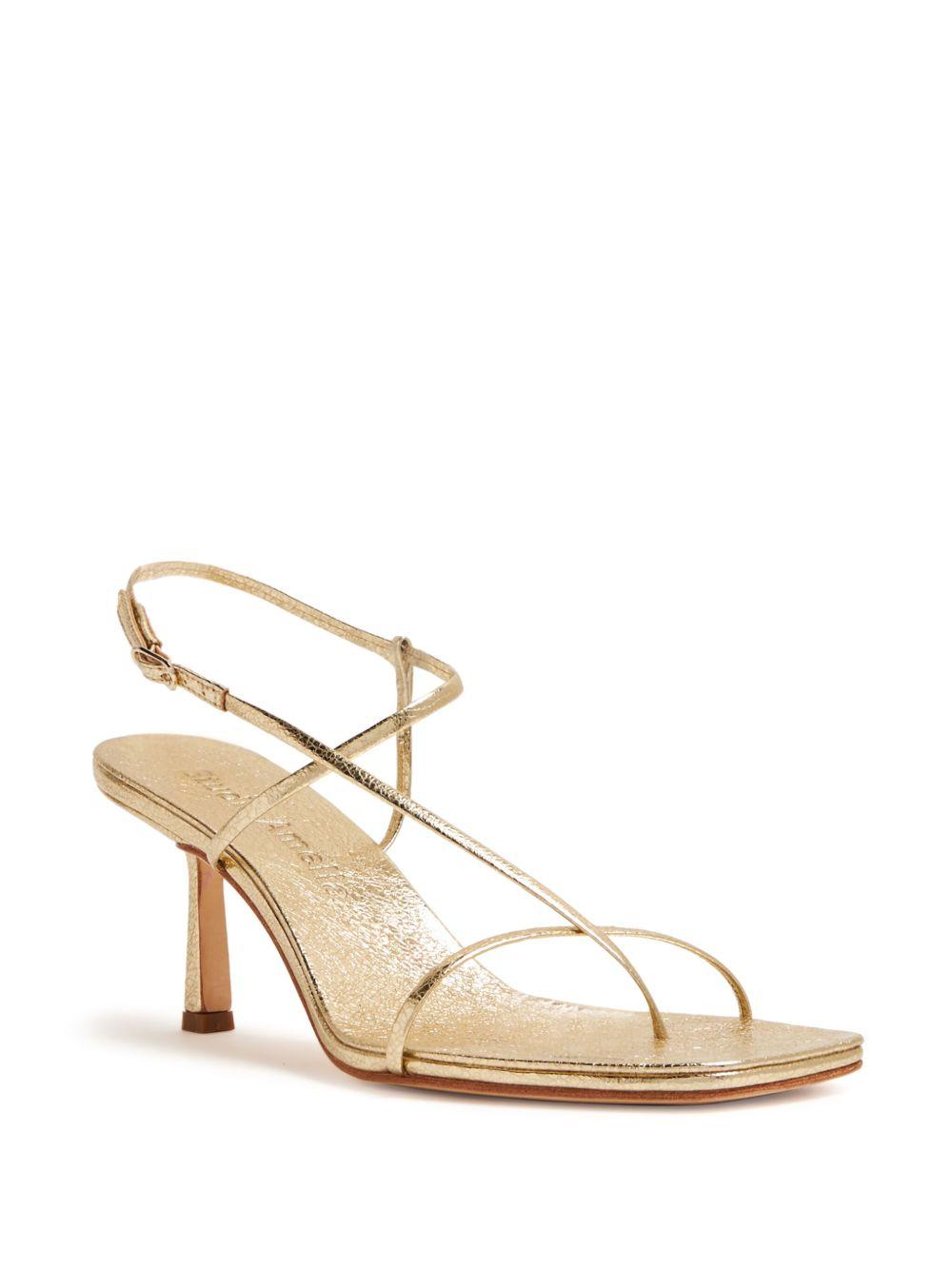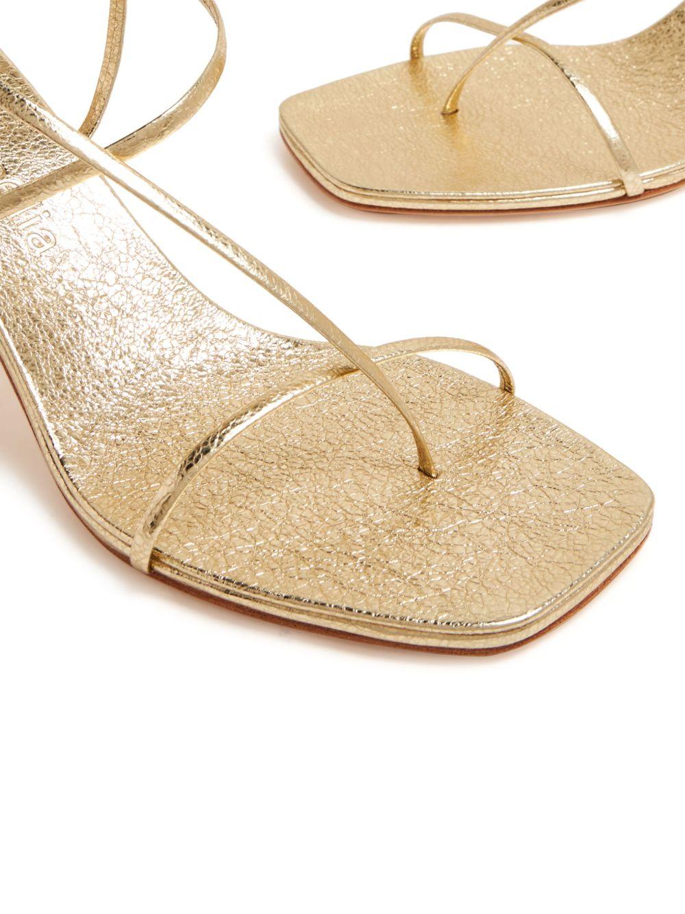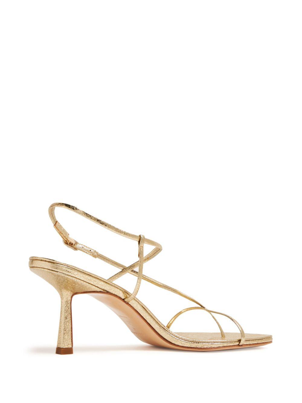 Studio Amelia Cross Front 70mm laminated-leather sandals | Gold | gold-tone | leather | laminated finish | metallic effect | multi-way strap design | square open toe | buckle-fastening slingback strap | branded footbed | 70mm mid stacked heel | leather sole | Leather/Leather/Leather | Heeled Sandals | Sandals | Shoes | Women