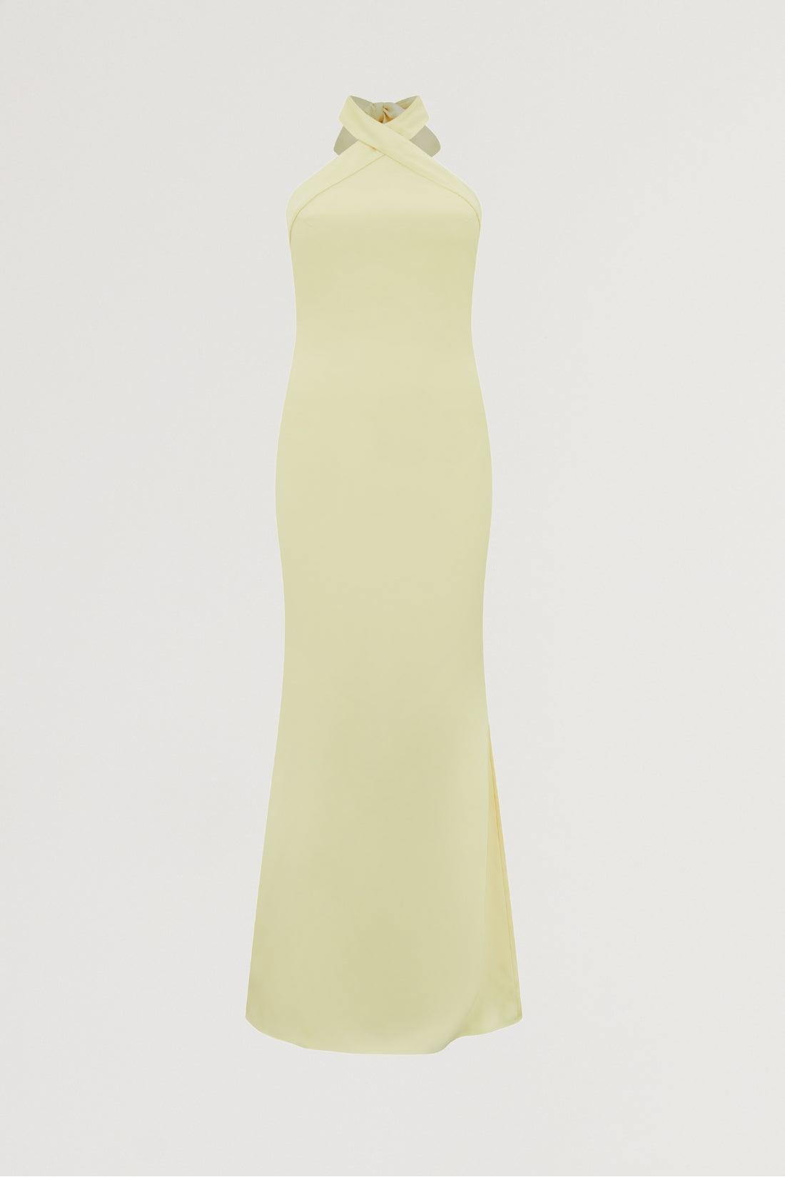 Introducing the Cross Halter Neck Maxi Dress, featuring an elegant cross halter that drapes back in a refined silhouette. Introduced in a Buttercream shade to compliment every muse bridesmaid palette, it's the perfect piece to take you from ceremony to celebration.