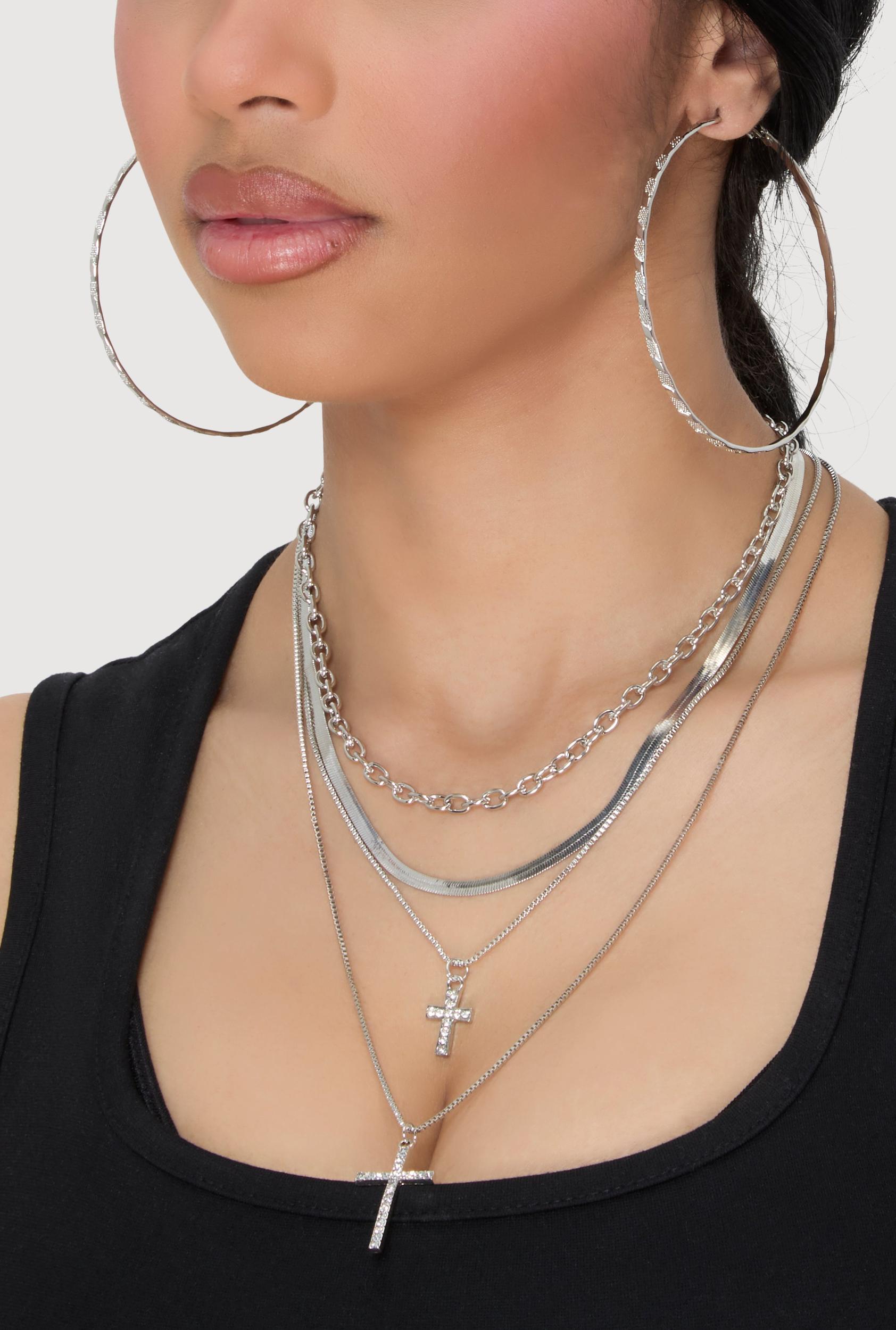 Cross Layered Necklace with Hoop Earring Trio Unisex