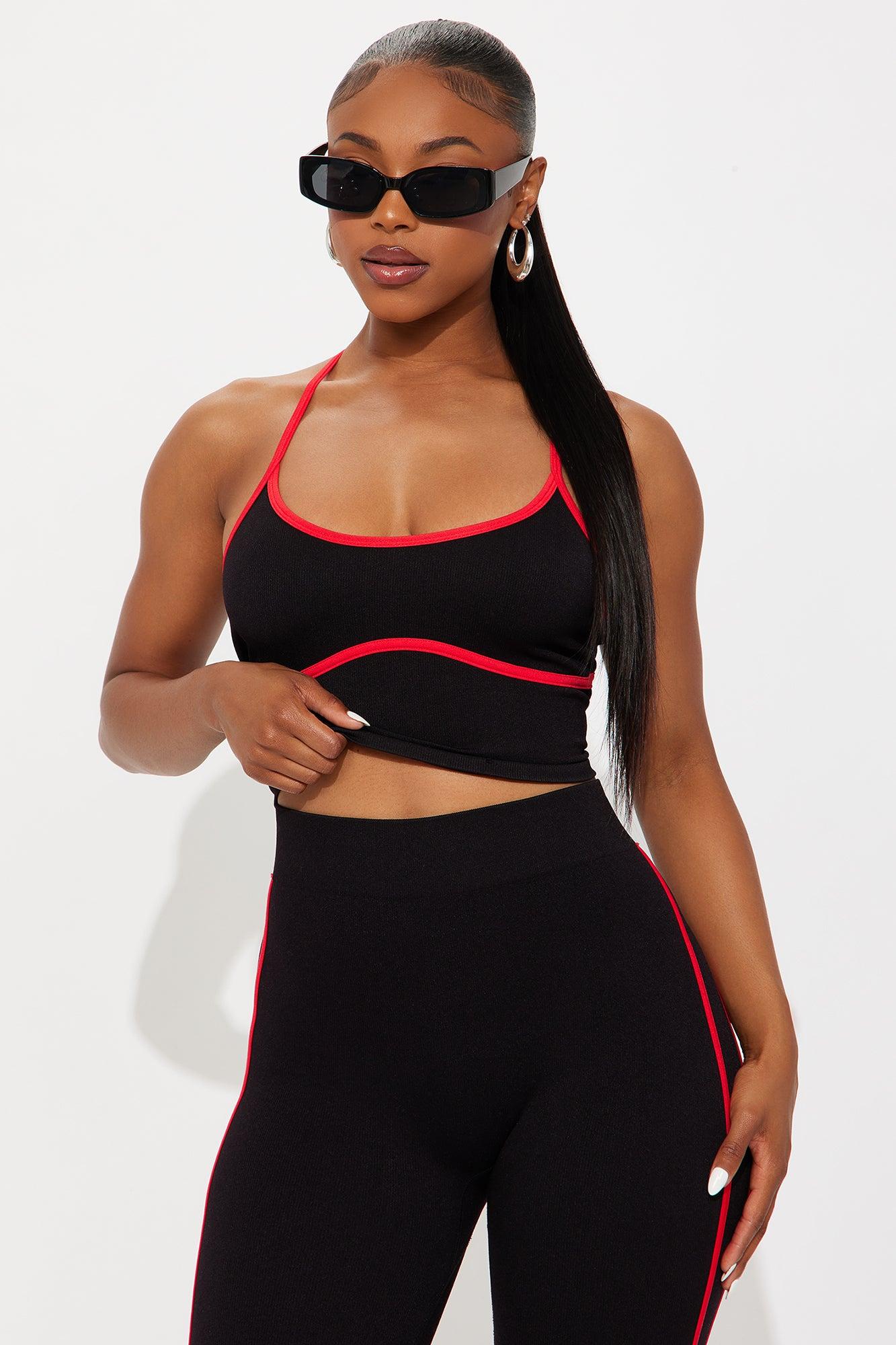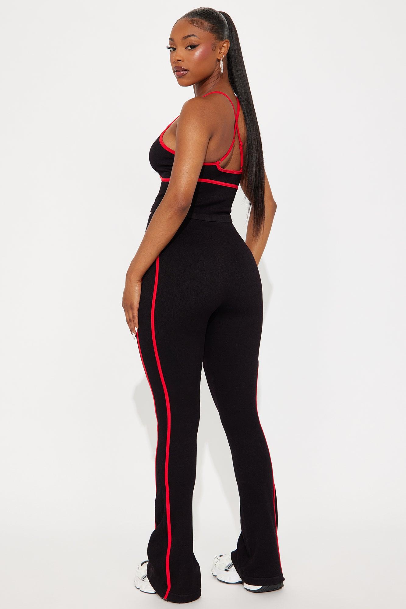 Available In Black/combo. 2 Piece Ensemble Tank And Flare Plant Set Inseam = 33" Stretch Adjustable Straps Self/Contrast: 92% Nylon 8% Spandex Imported California Proposition 65WARNING: Cancer and Reproductive Harm - www.P65Warnings.ca.gov.