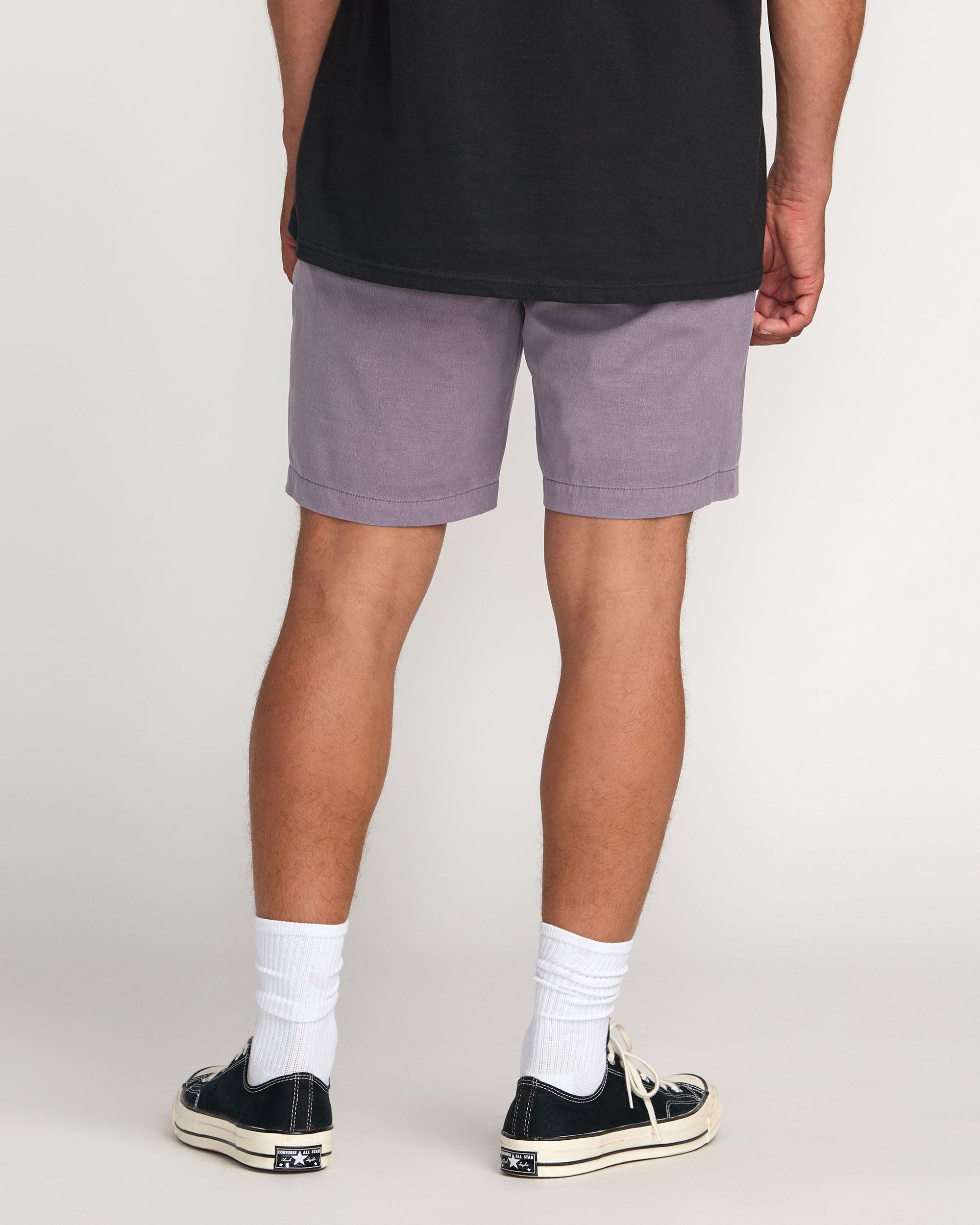 Versatile hybrid shorts with 4-way stretch cotton poly fabric move seamlessly from waves to street. Garment dyed with DWR, they feature a relaxed chino style, zipper pockets and button fly - perfect for active guys seeking modern amphibious style. Featured here in the Green colorway. Features 4way cotton poly stretch garment dyed 18" Relaxed straight fit Fixed waist with button closure and zip fly Side entry pockets, back welt pockets with zip closures Structured short with clean chino aesthetic & relaxed, straight fit in a Additional features: 4-way stretch garment dyed with DWR Billabong wave label at left leg and back pocket woven label Garment dyed and DWR