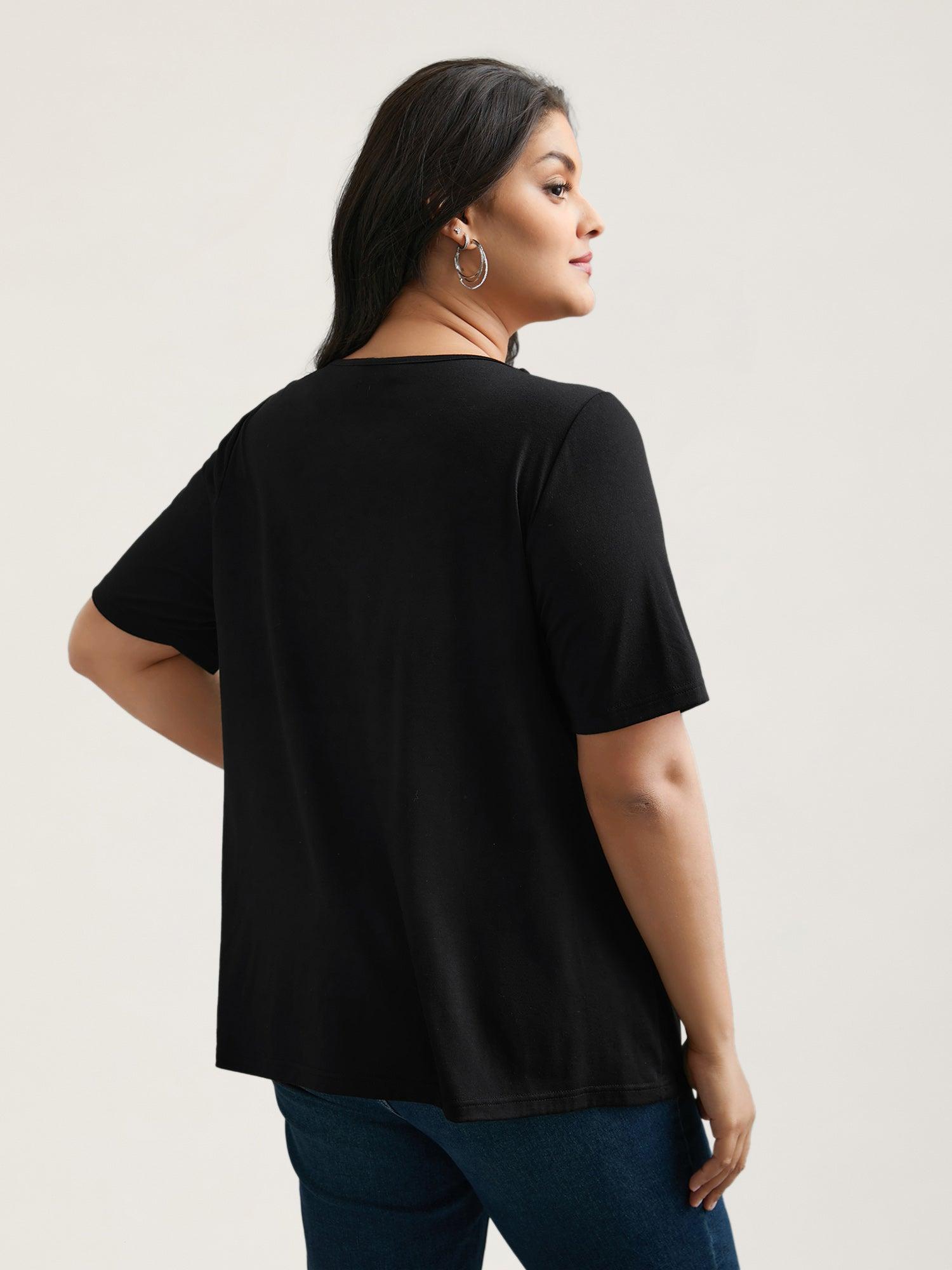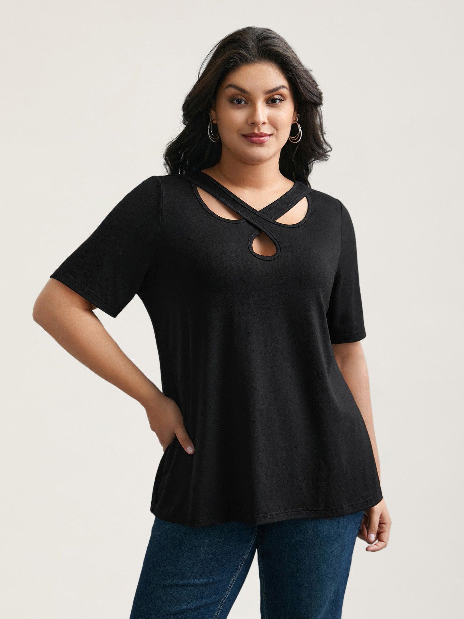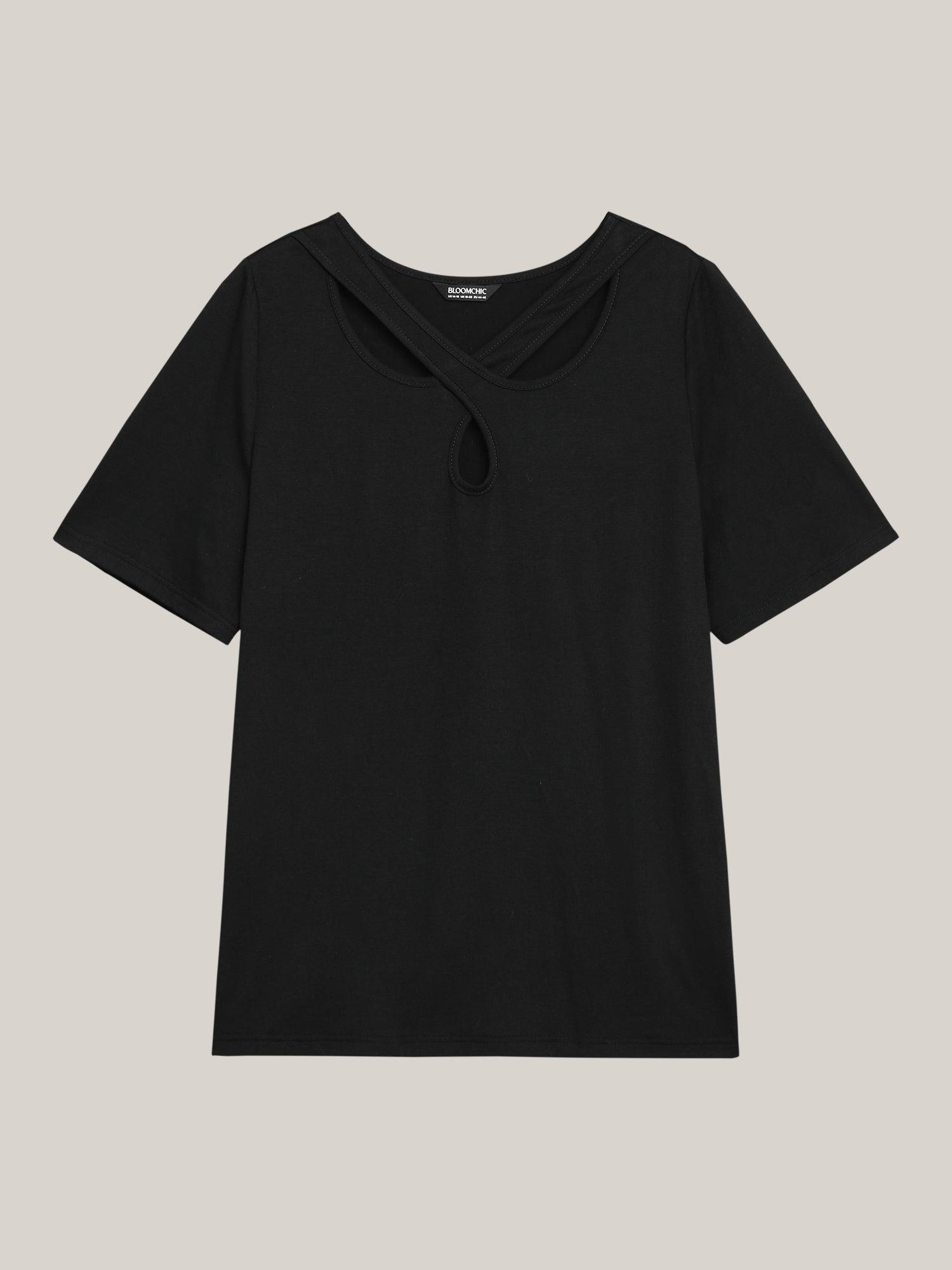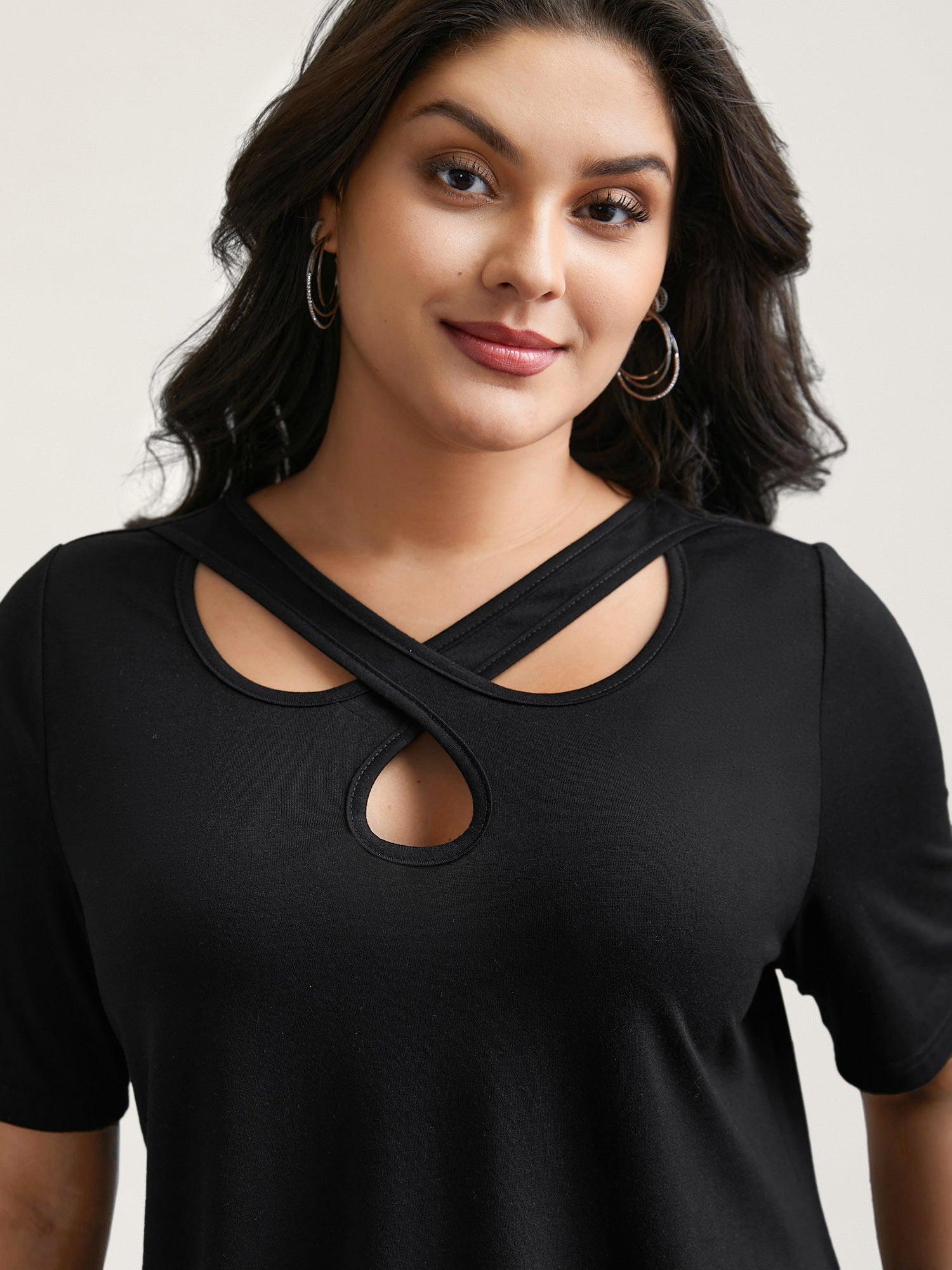 Crossover Keyhole Plain Stretchy T-Shirt Female