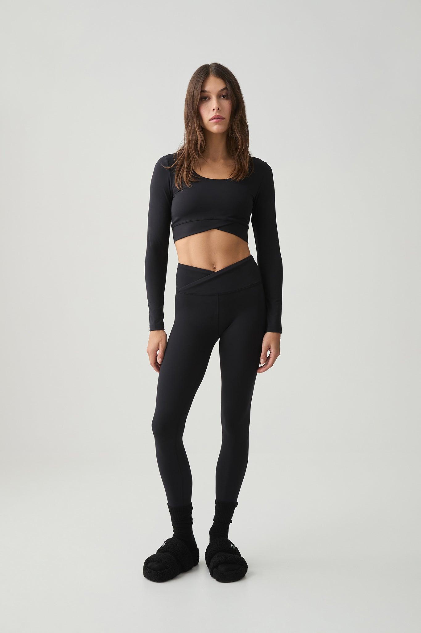 PRODUCT DETAILS Cropped women’s top Peached fabric Low support Low scoop neckline Long fitted sleeves Cropped elastic crossover hem Back logo detail Four-way stretch for freedom of movement and durability SIZE AND FIT Helena wears a size 8/S and is 173cm/5'8 height FABRICATION 71% Recycled Nylon 29% Polyester
