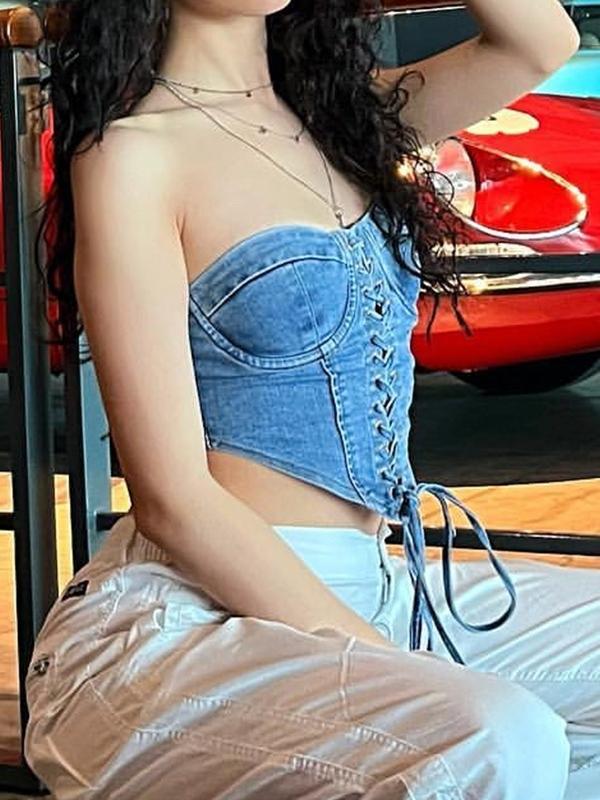 Crossover Tie Up Corset Bandeau Top