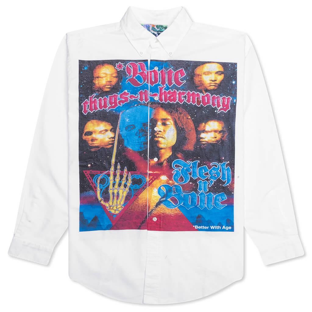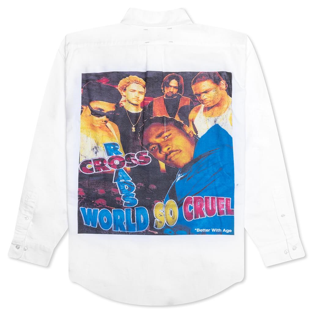 The Crossroads Button Down in White is crafted from cotton and features printed graphics on the front and back. With a curved hem, standard collar, and buttoned cuffs, this shirt combines vintage charm with modern style. Each piece is uniquely sourced and hand-picked by BWA from vintage collections, meaning colors and details may vary. Product photos serve as examples, as each garment is one-of-a-kind and may display signs of age, such as stains, blemishes, or wear. Additionally, each shirt has been measured and resized to account for size variance due to age. THIS PRODUCT DOES NOT QUALIFY FOR DISCOUNTS OR SPECIAL PROMOTIONS, ALL SALES ARE FINAL. 100% Cotton Printed graphics on the front and back Curved hem with standard collar Buttoned cuffs on vintage shirts This garment may display stains, blemishes, wear, or general signs of age. This garment has been measured and resized to account for size variance due to age. Style No: BWABDCR-MUL-5