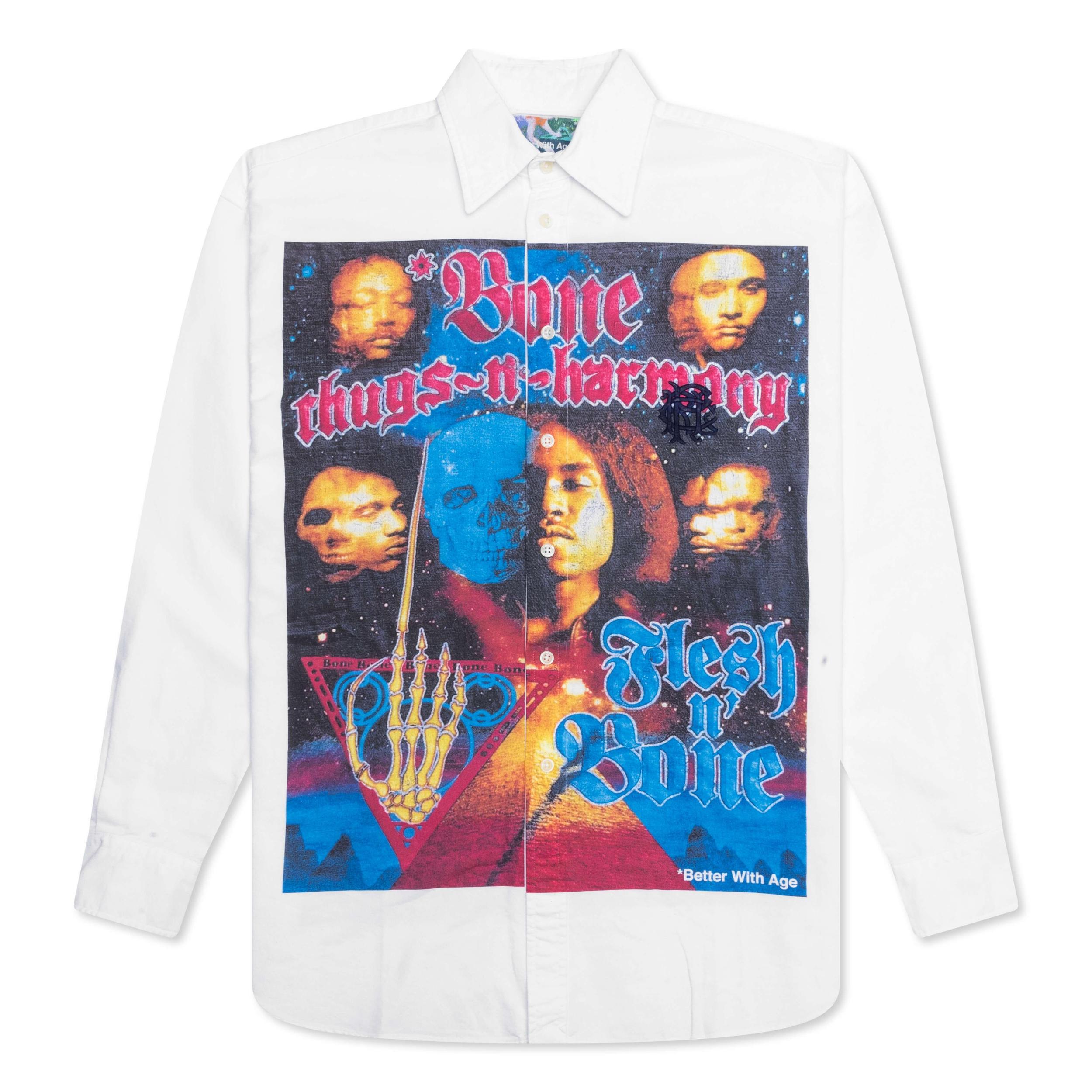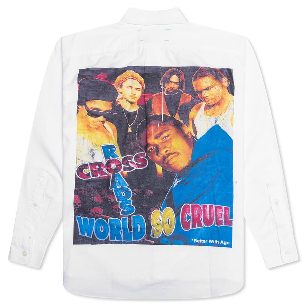 The Crossroads Button Down in White is crafted from cotton and features printed graphics on the front and back. With a curved hem, standard collar, and buttoned cuffs, this shirt combines vintage charm with modern style. Each piece is uniquely sourced and hand-picked by BWA from vintage collections, meaning colors and details may vary. Product photos serve as examples, as each garment is one-of-a-kind and may display signs of age, such as stains, blemishes, or wear. Additionally, each shirt has been measured and resized to account for size variance due to age. THIS PRODUCT DOES NOT QUALIFY FOR DISCOUNTS OR SPECIAL PROMOTIONS, ALL SALES ARE FINAL. 100% Cotton Printed graphics on the front and back Curved hem with standard collar Buttoned cuffs on vintage shirts This garment may display stains, blemishes, wear, or general signs of age. This garment has been measured and resized to account for size variance due to age. Style No: BWABDCR-MUL-3