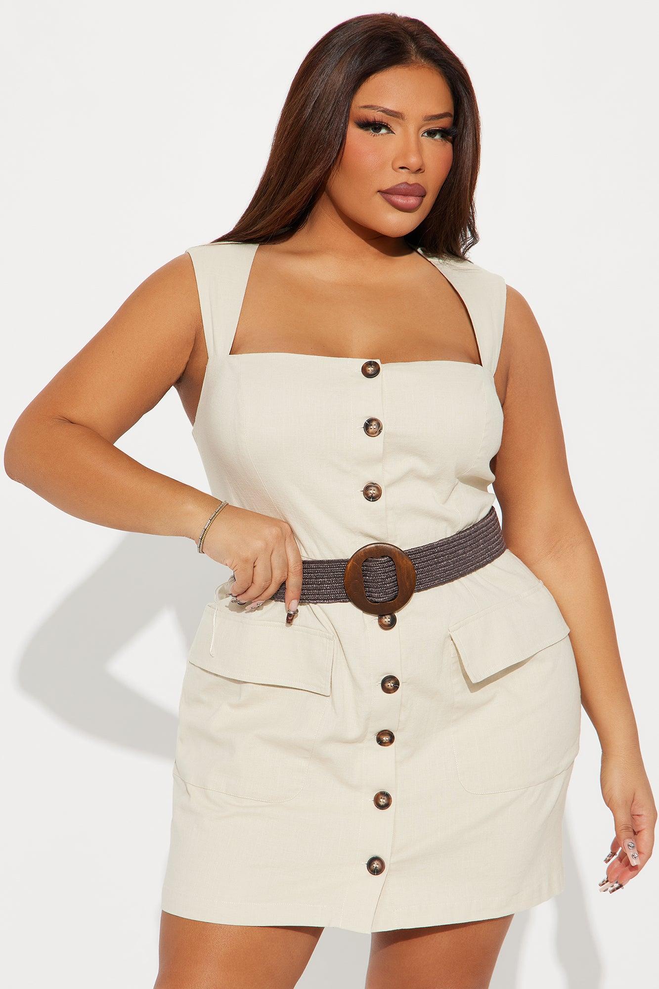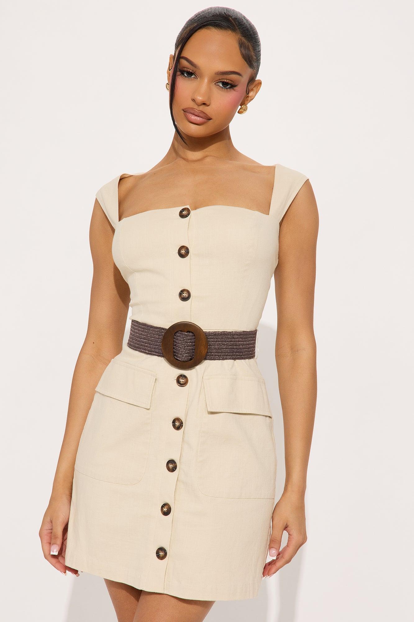 Cruise Attire Belted Linen Mini Dress - Taupe