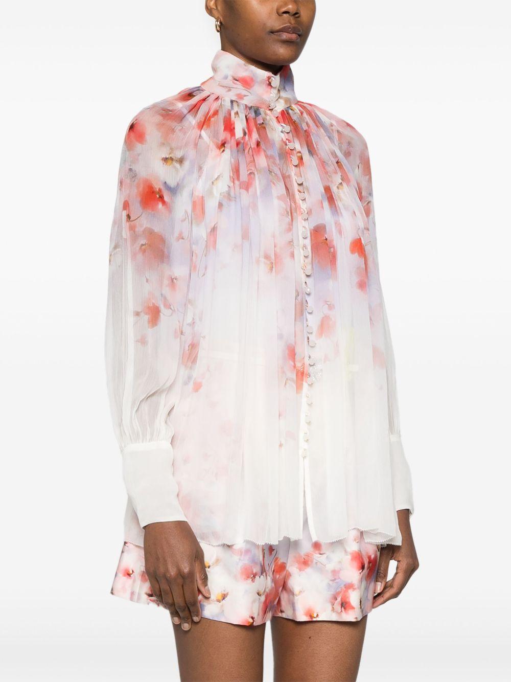 ZIMMERMANN Crush smock blouse | Purple | white | front button fastening | high neck | cuff zips | all-over floral print | Viscose | Blouses | Tops | Clothing | Women