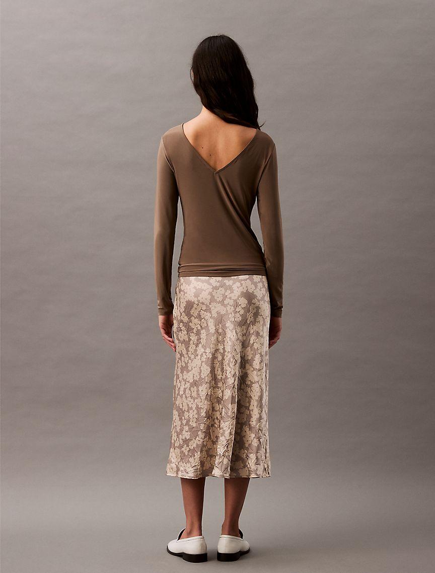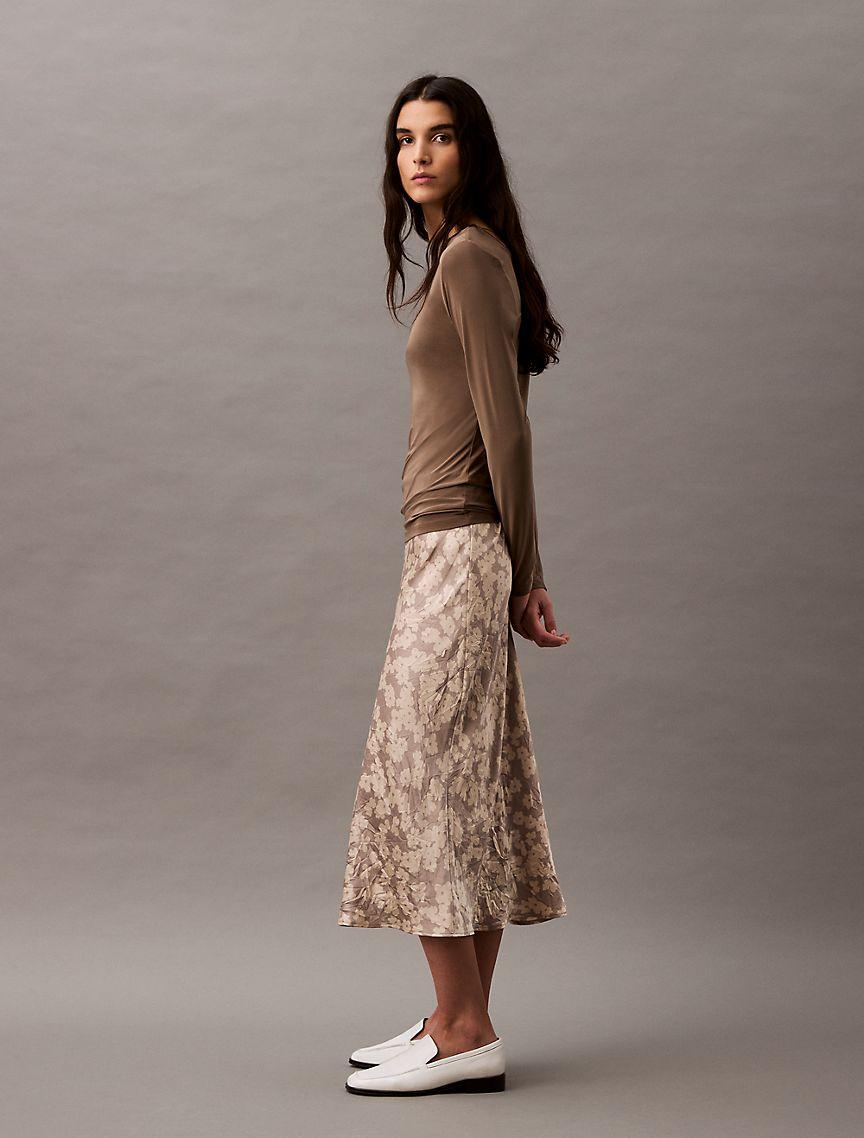 Crushed Satin Print Midi Skirt
