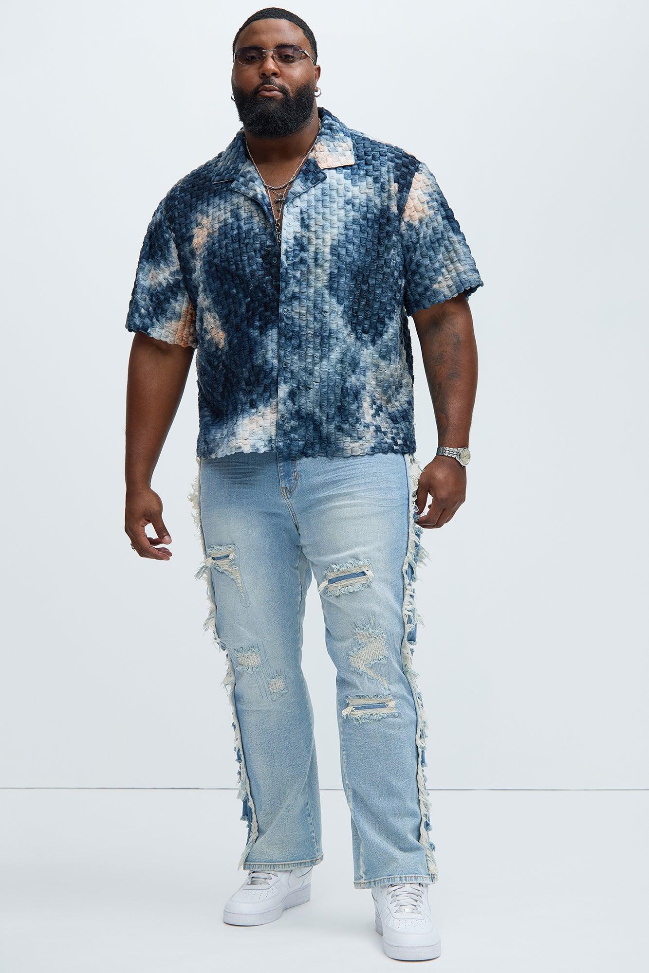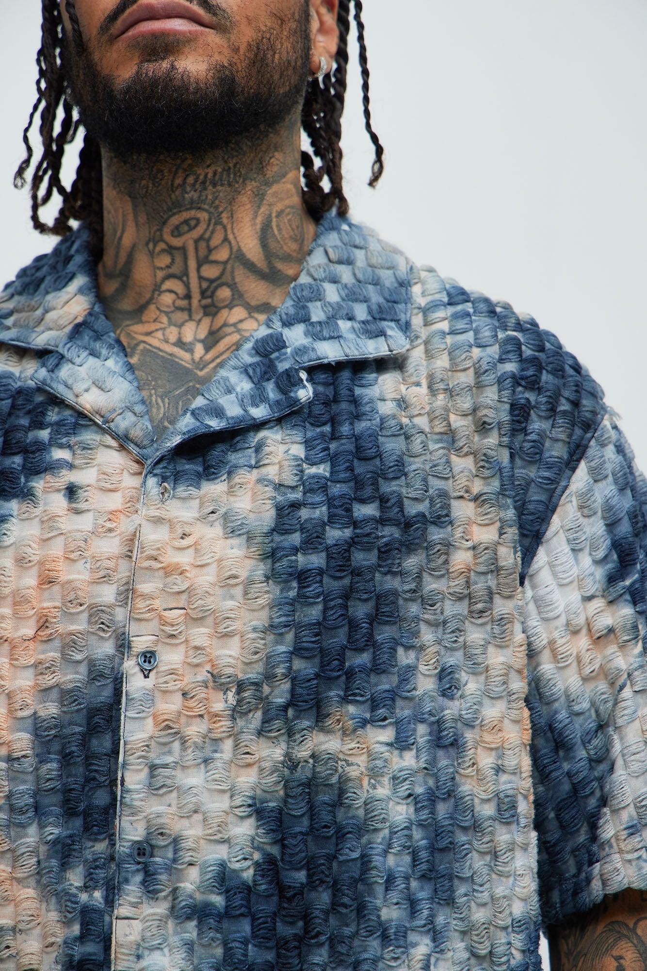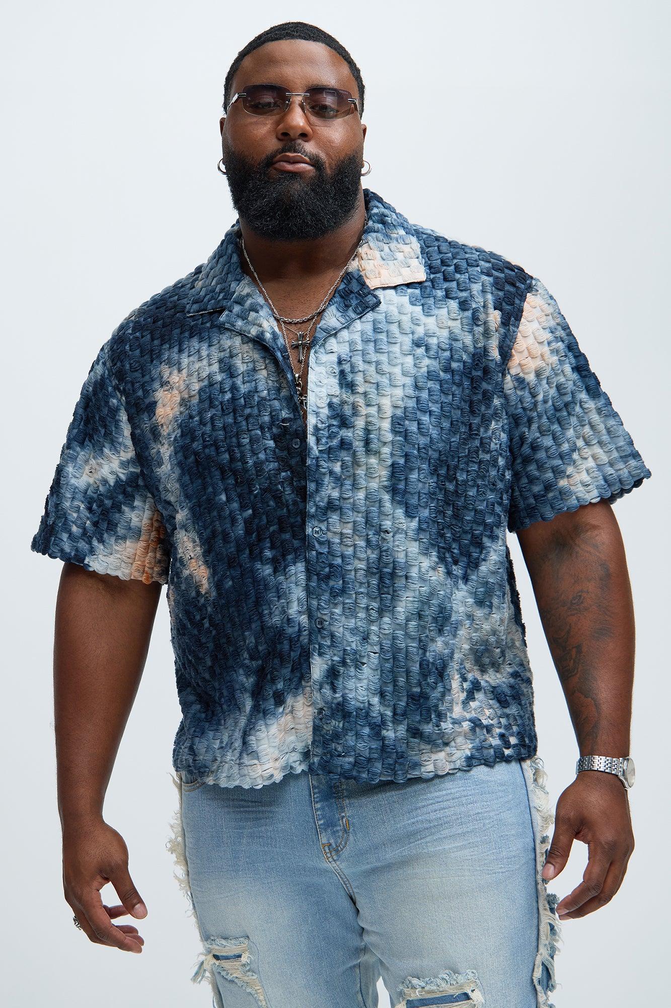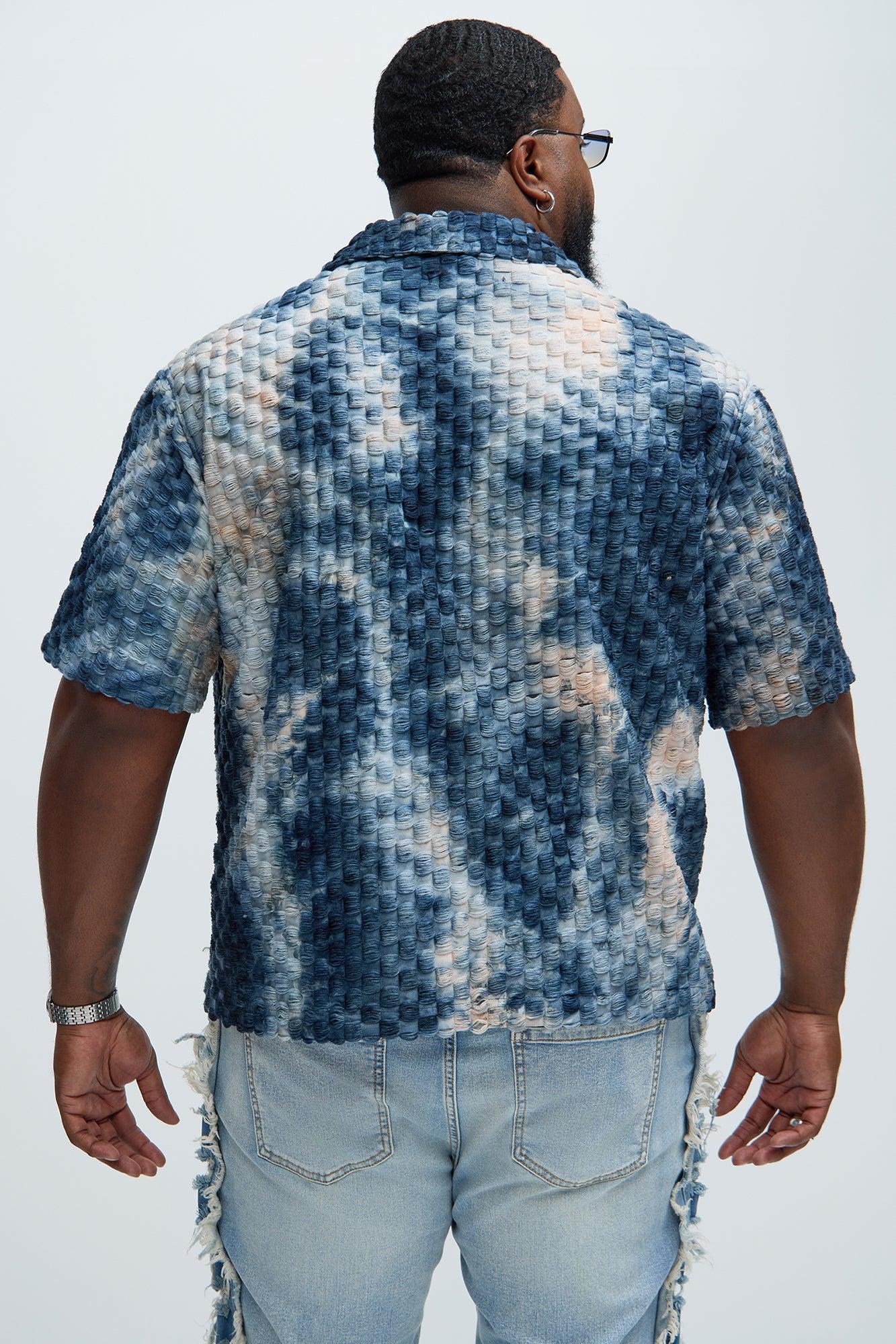 Available In Blue/combo. Fold Down Collar Front Button Closure Short Sleeve Disclaimer: Due To The Specialized Wash. Each Garment Is Unique. Shell:100% Polyester Imported California Proposition 65WARNING: Cancer and Reproductive Harm - www.P65Warnings.ca.gov.