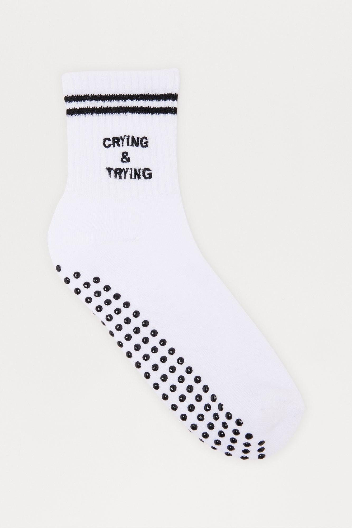 Available In White/Black. Crew Socks Verbiage Detail Non Slip Grip Detail 98% Polyester 2% Spandex Imported California Proposition 65WARNING: Cancer and Reproductive Harm - www.P65Warnings.ca.gov.