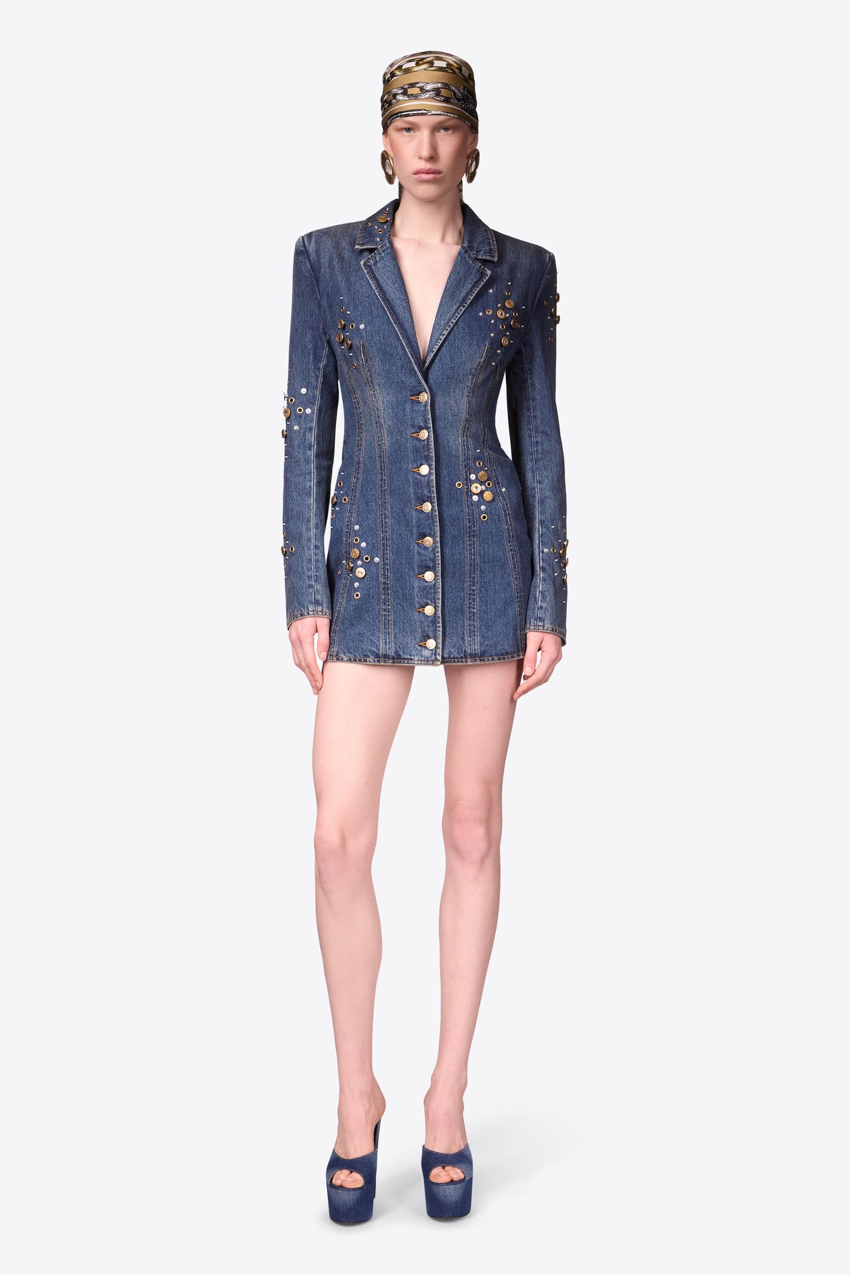 Crystal Button Studded Blazer Dress