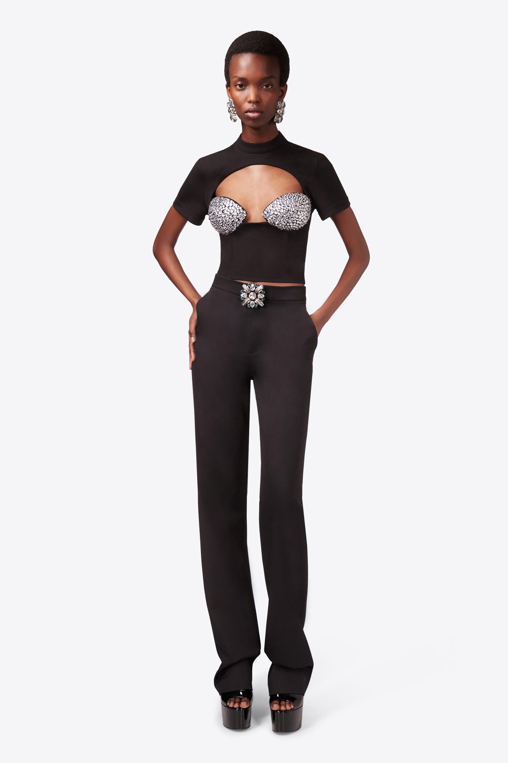 Crystal Embellished Raglan Bustier Cup T-Shirt